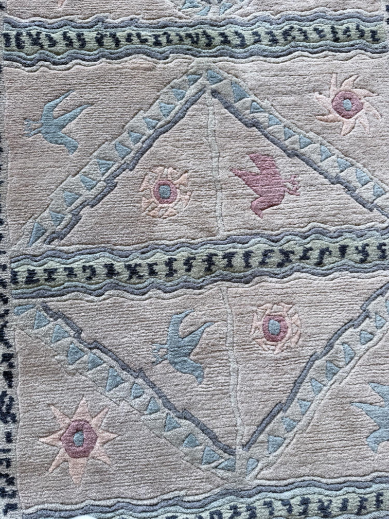 Lot # 52 - Handwoven Wool Rug with Geometric and Avian Motifs – 70" Long