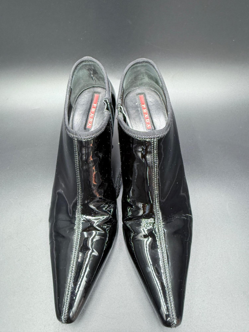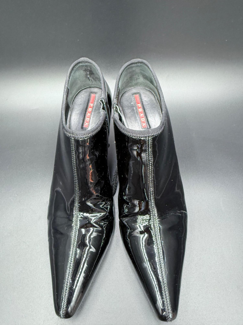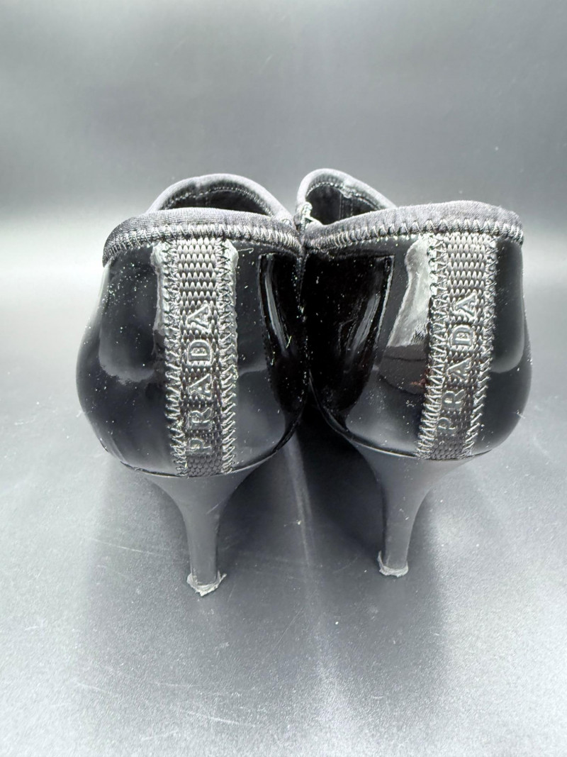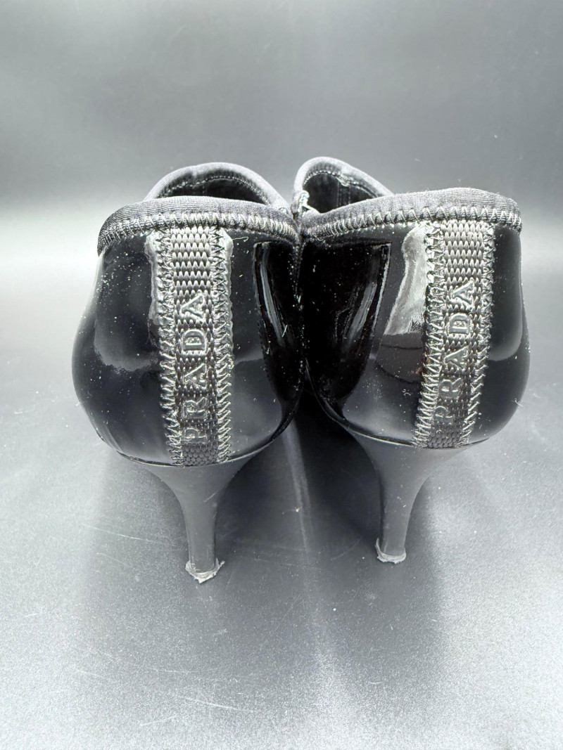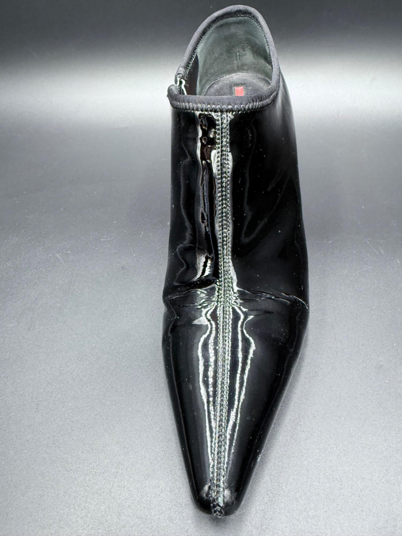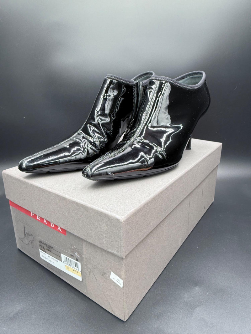 Lot # 13 - Prada Vernice Nero Kitten Heel Zip Booties – Size 38