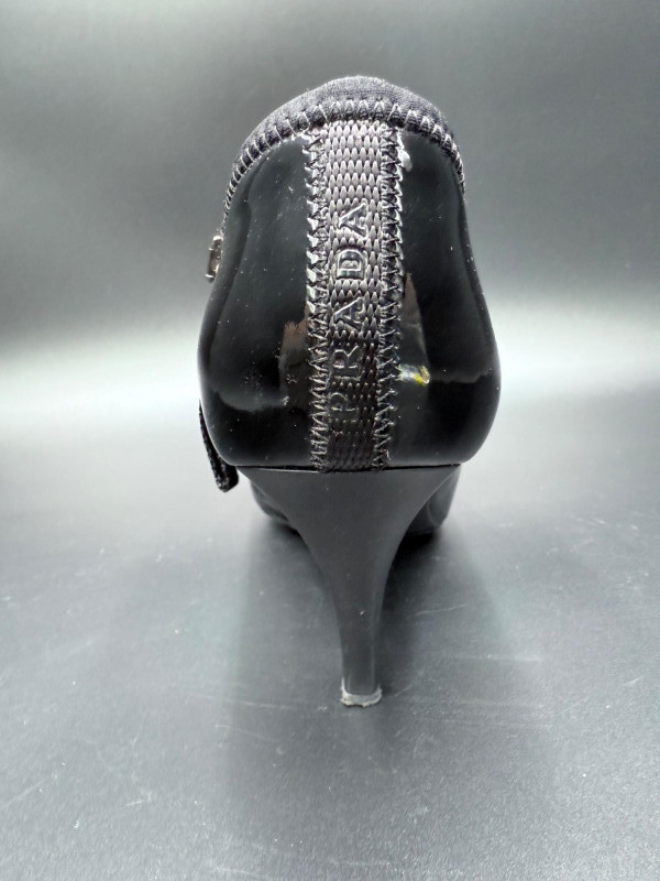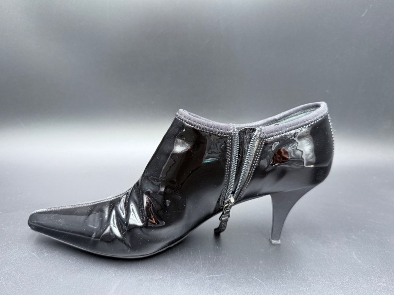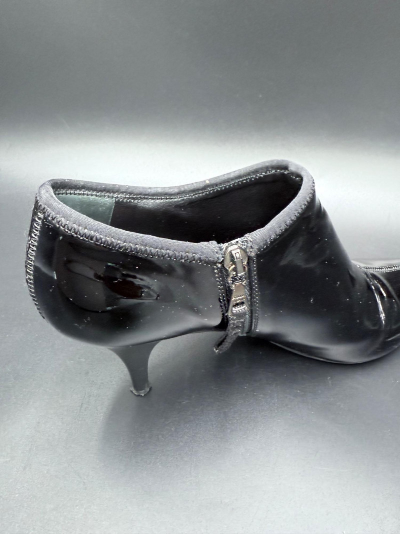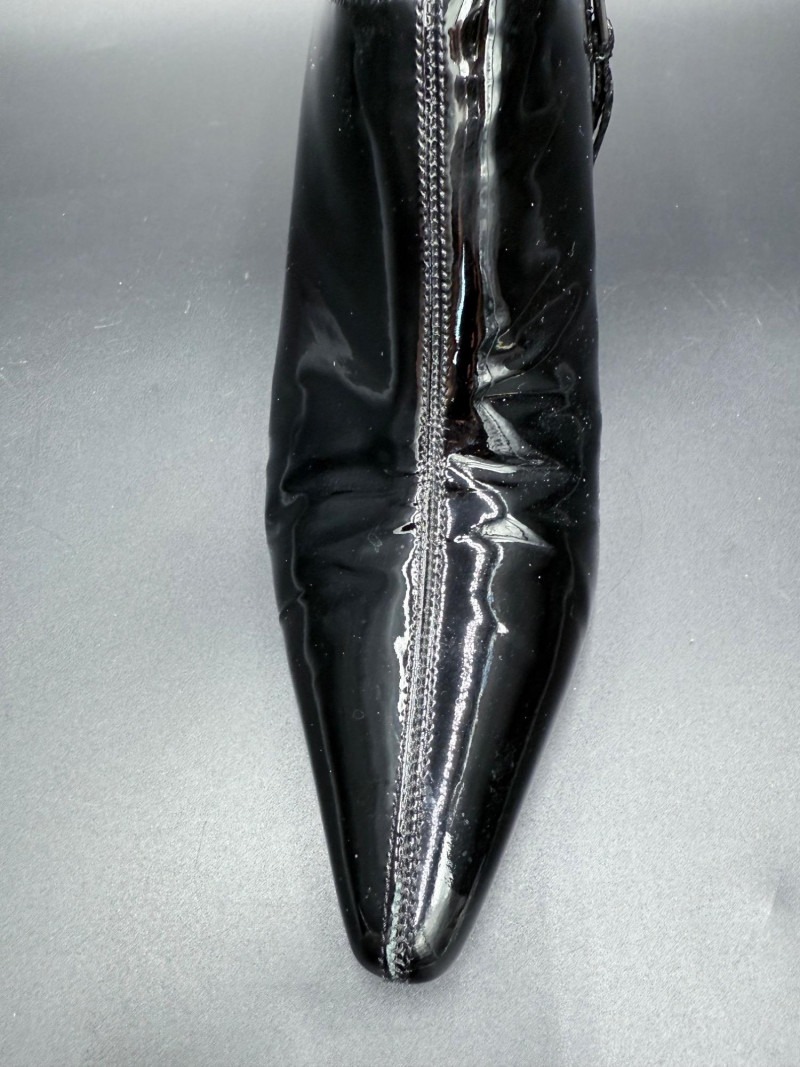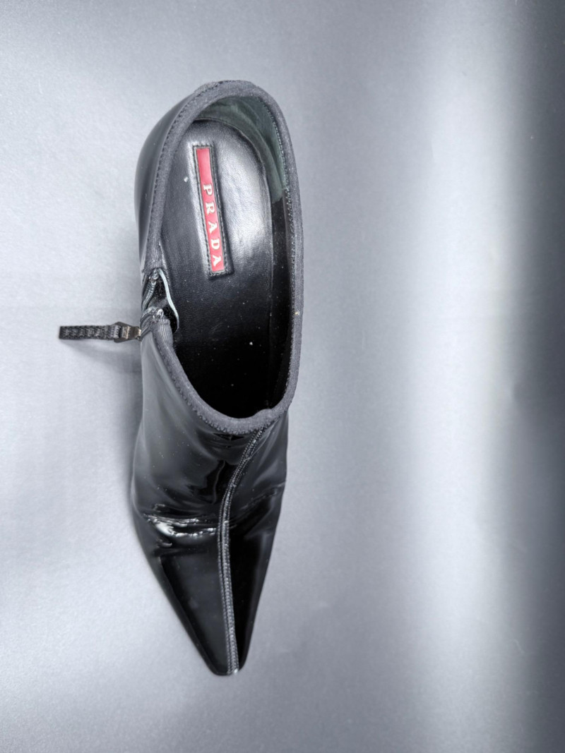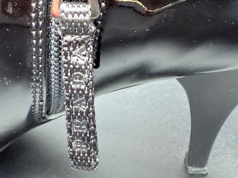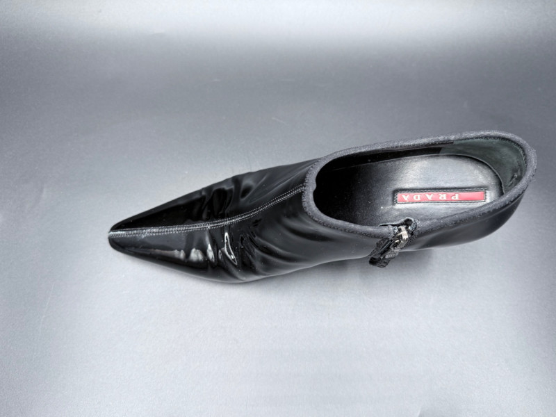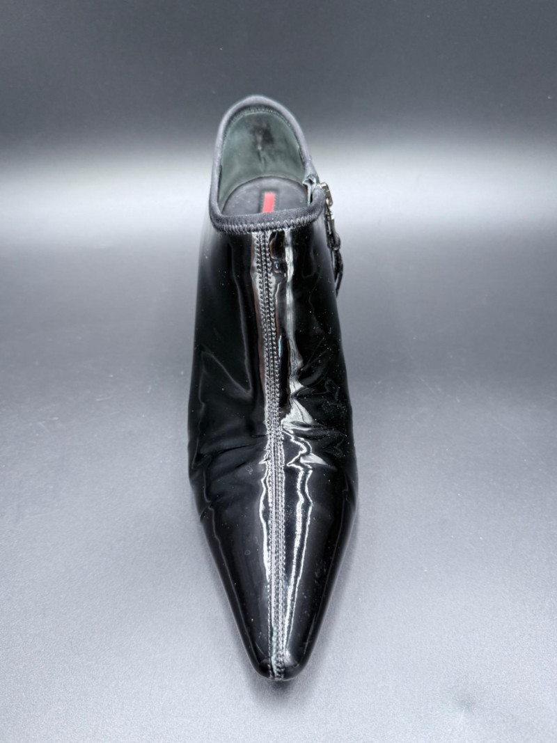 Lot # 13 - Prada Vernice Nero Kitten Heel Zip Booties – Size 38