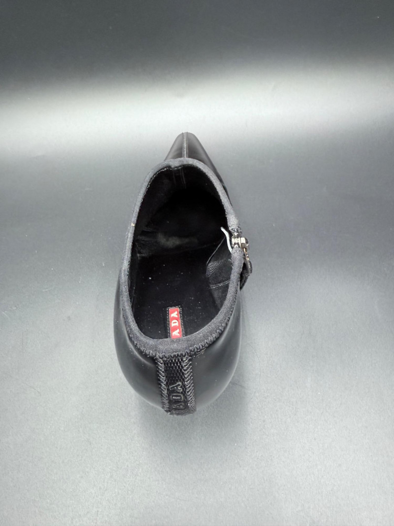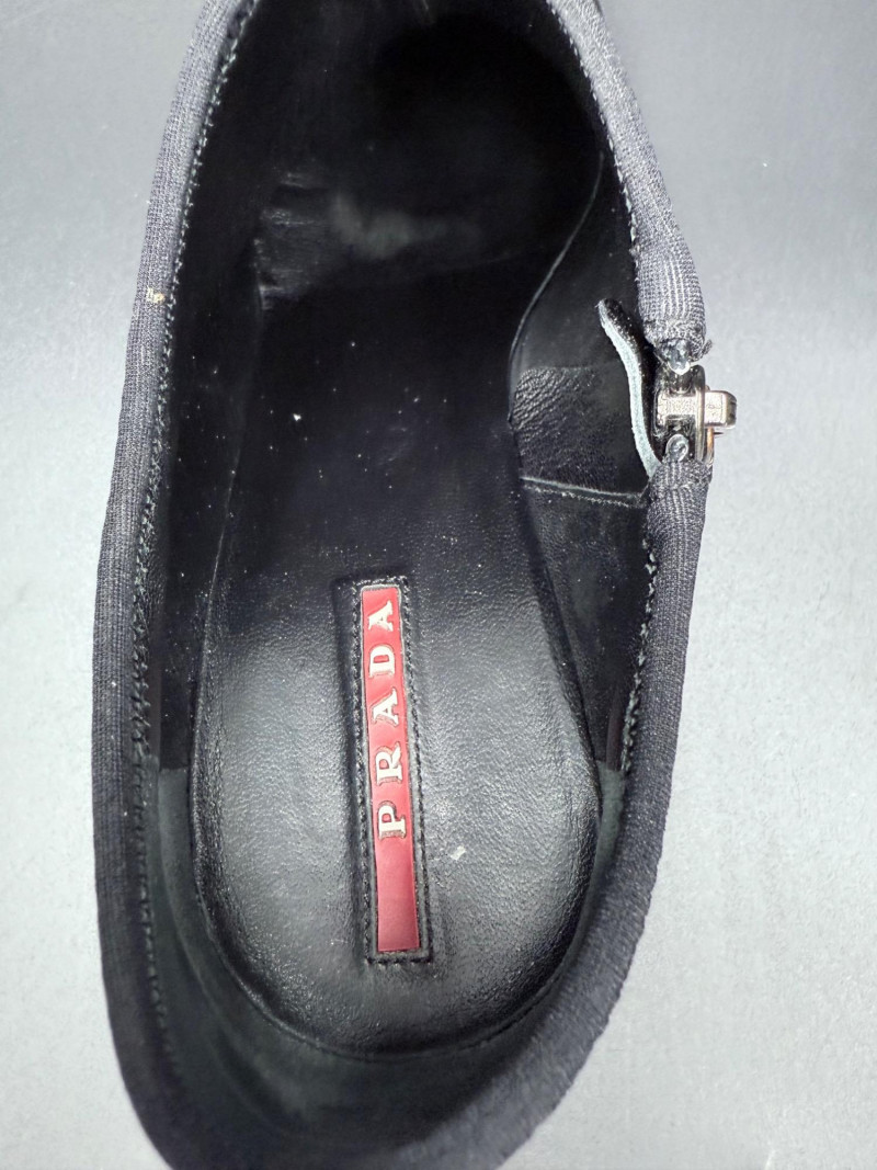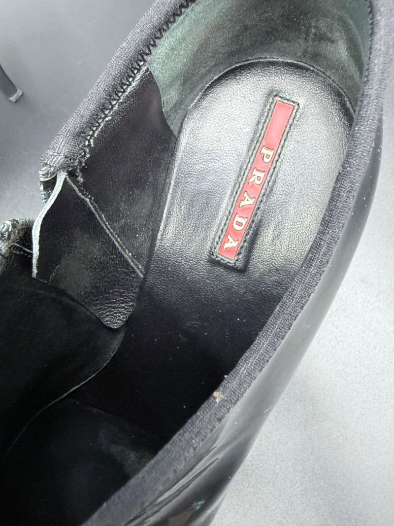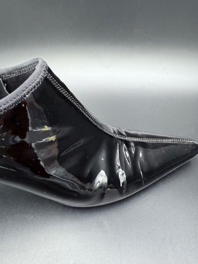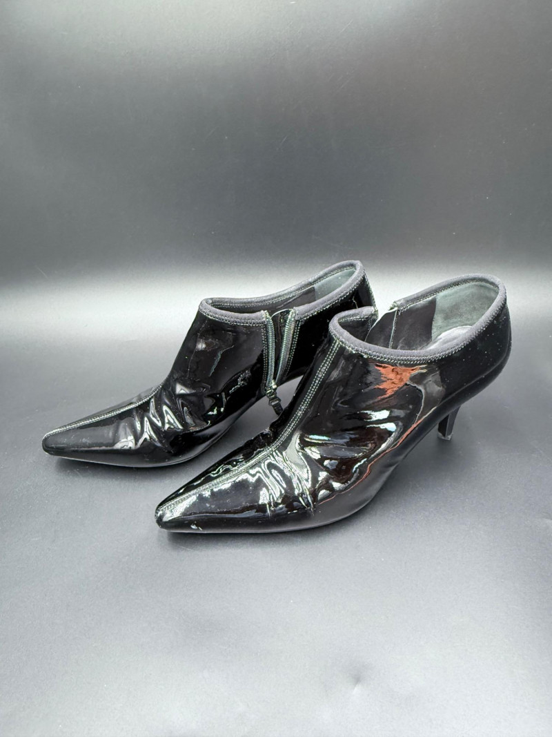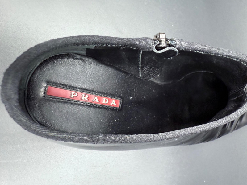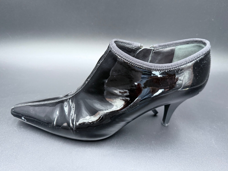 Lot # 13 - Prada Vernice Nero Kitten Heel Zip Booties – Size 38
