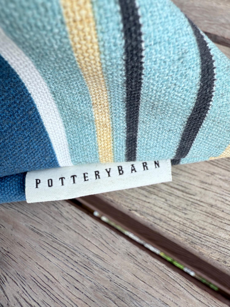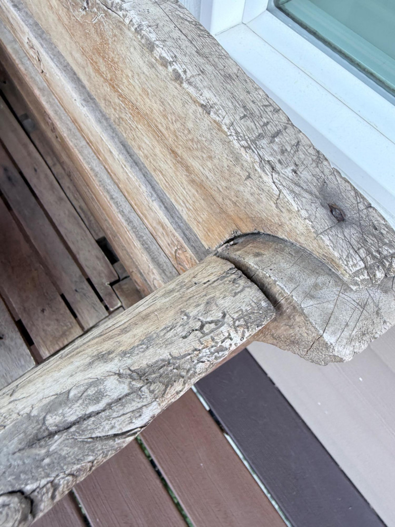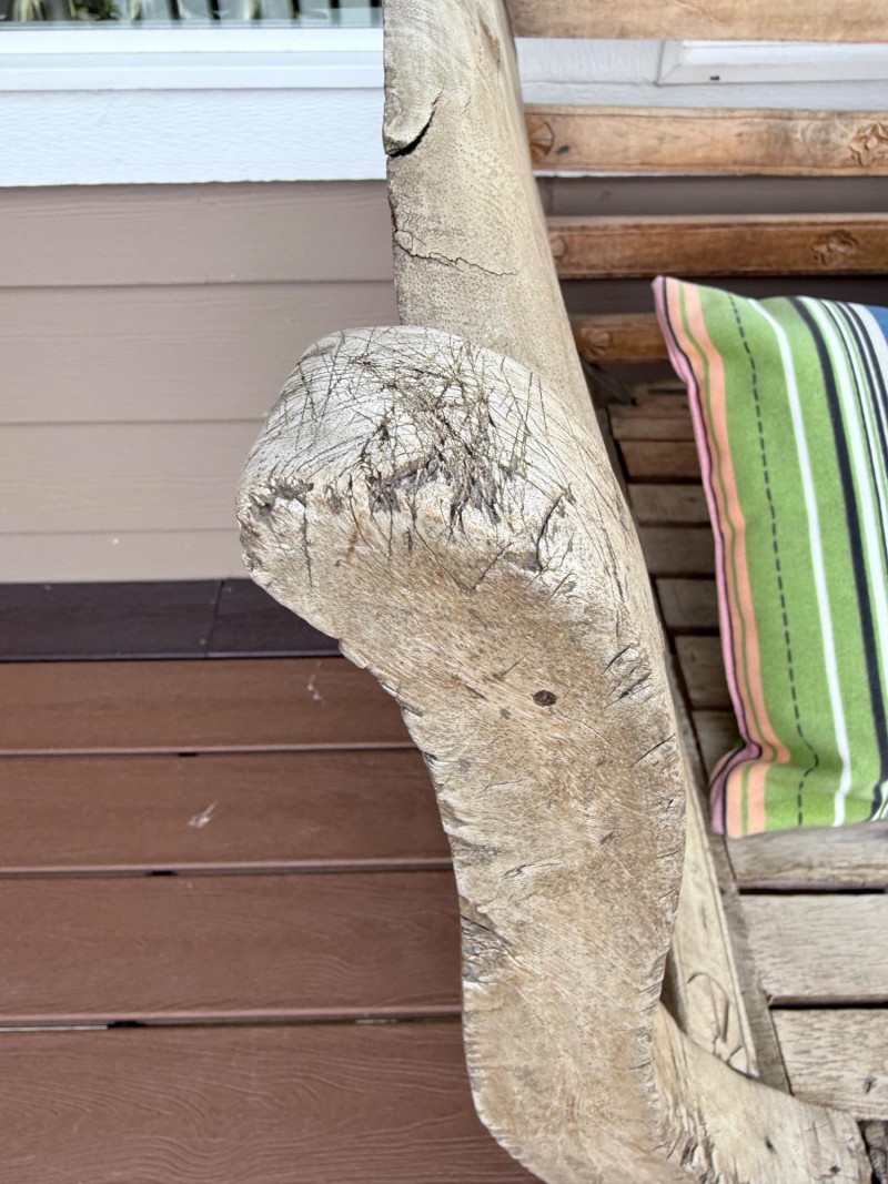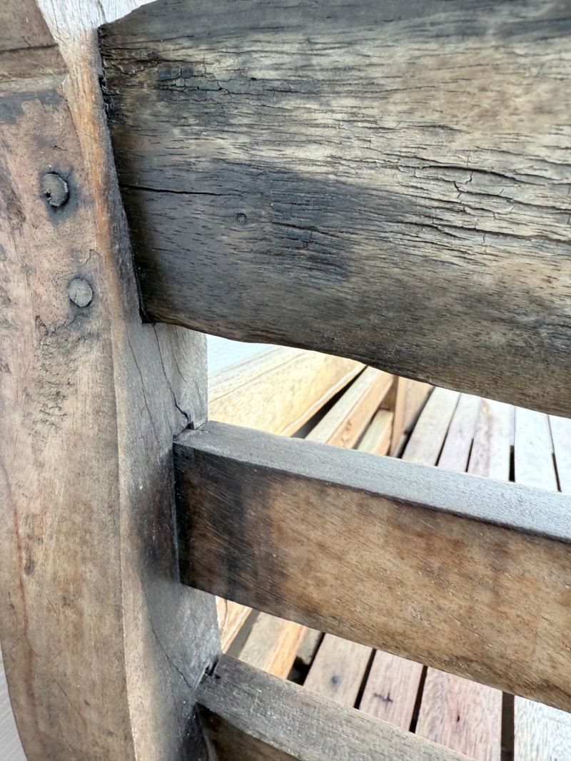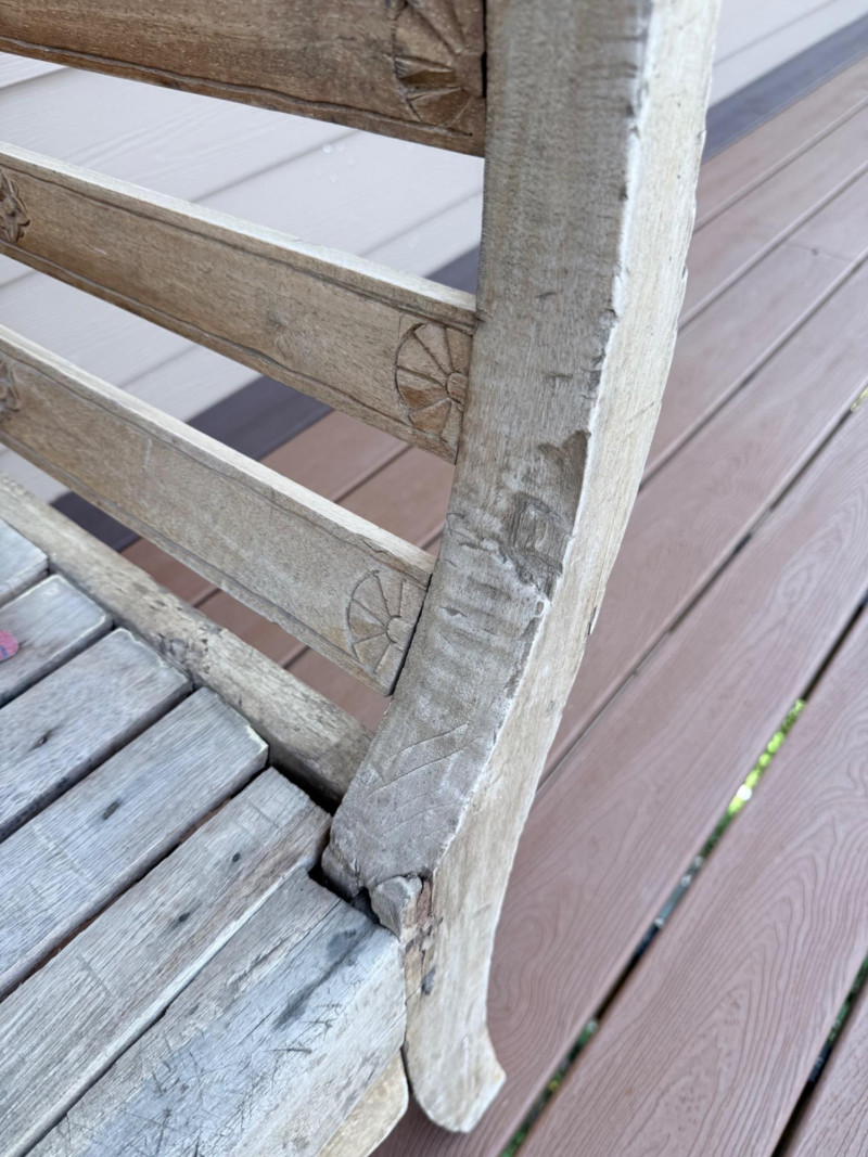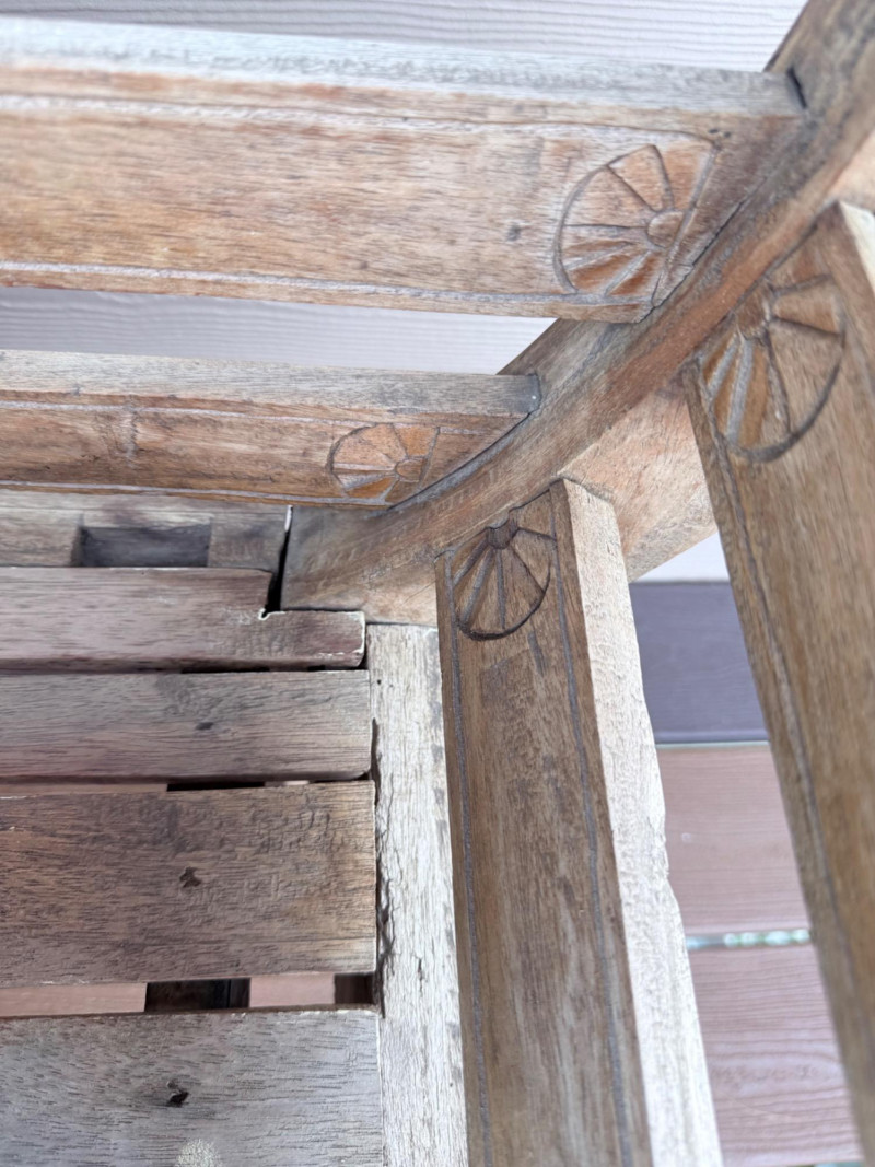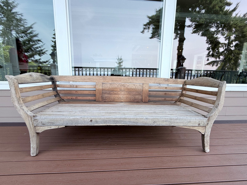 Lot # 83 - Carved Wood Outdoor Slatted Bench w/ Pottery Barn