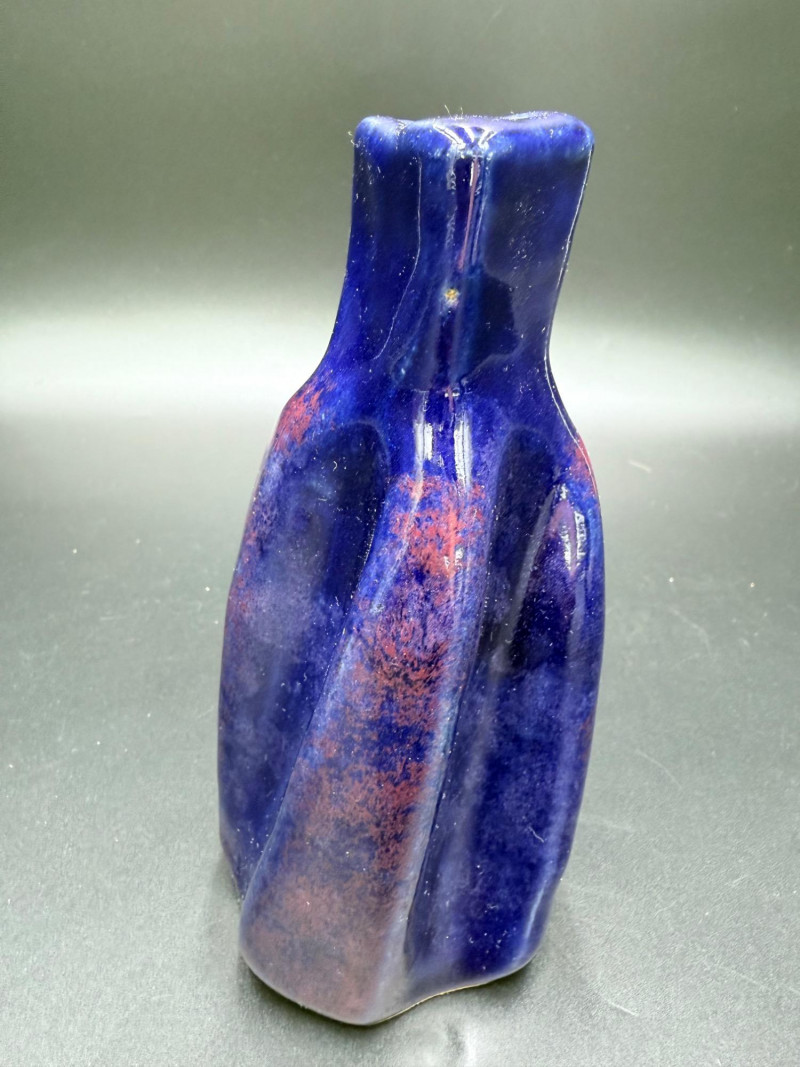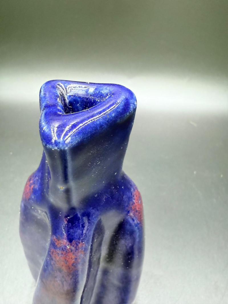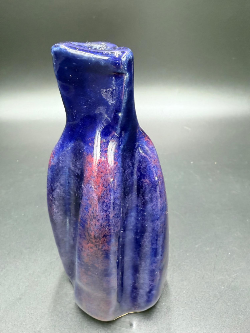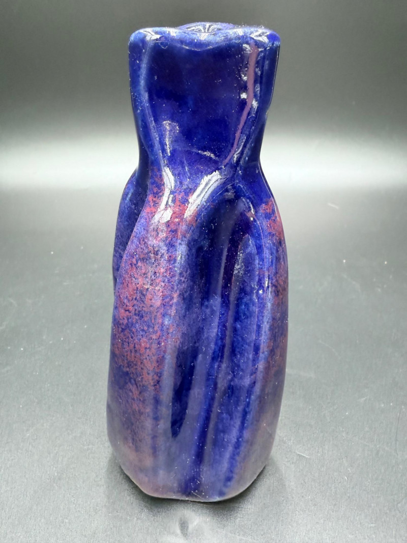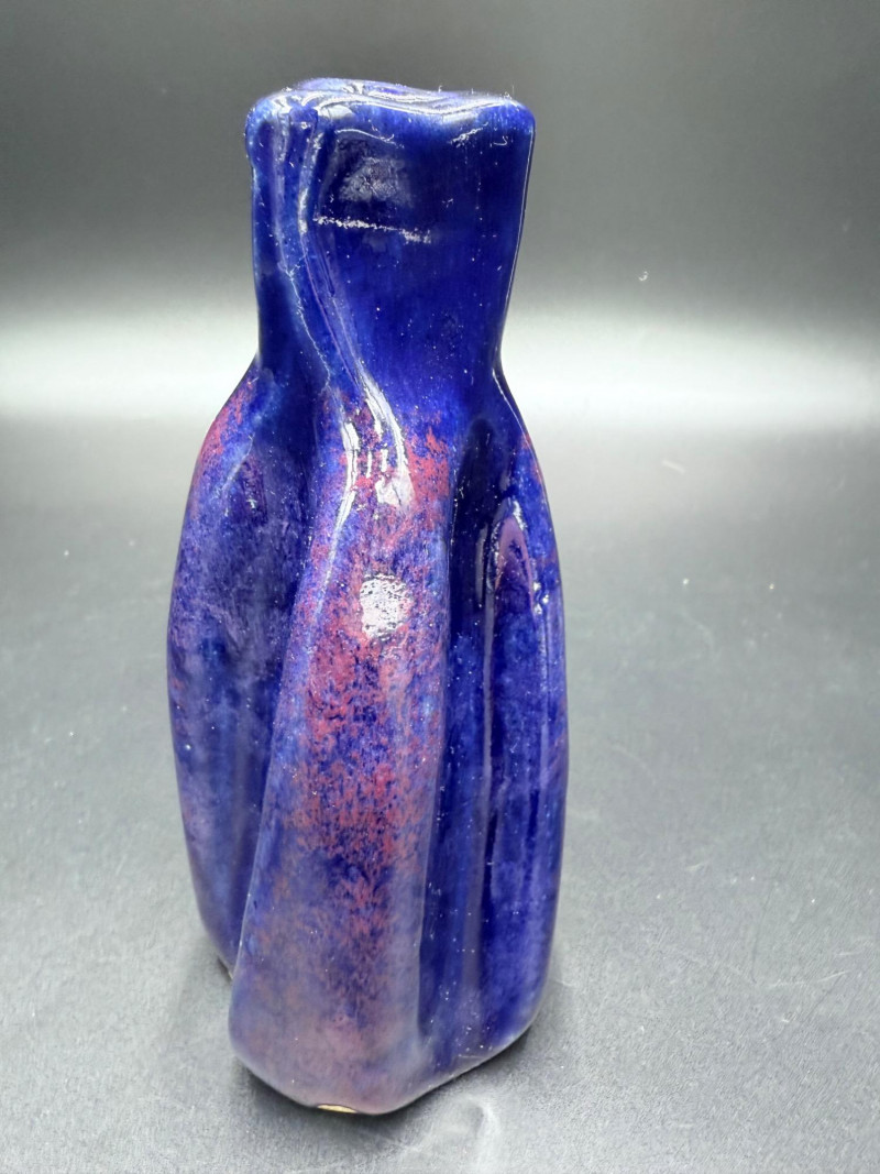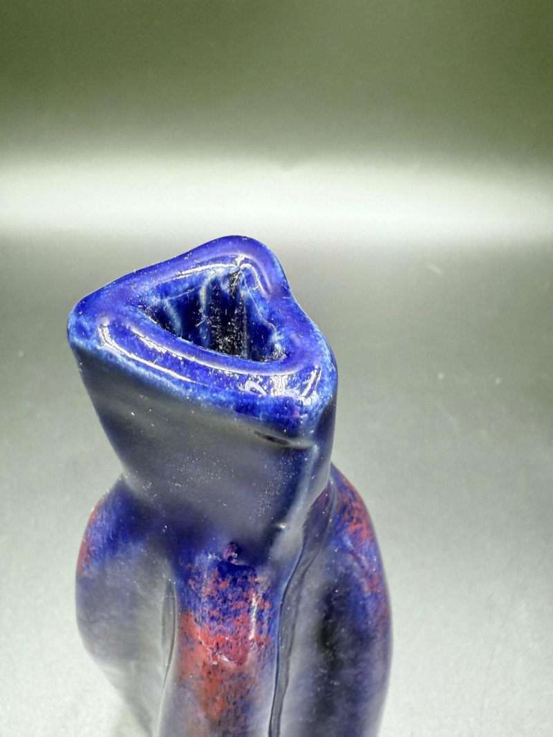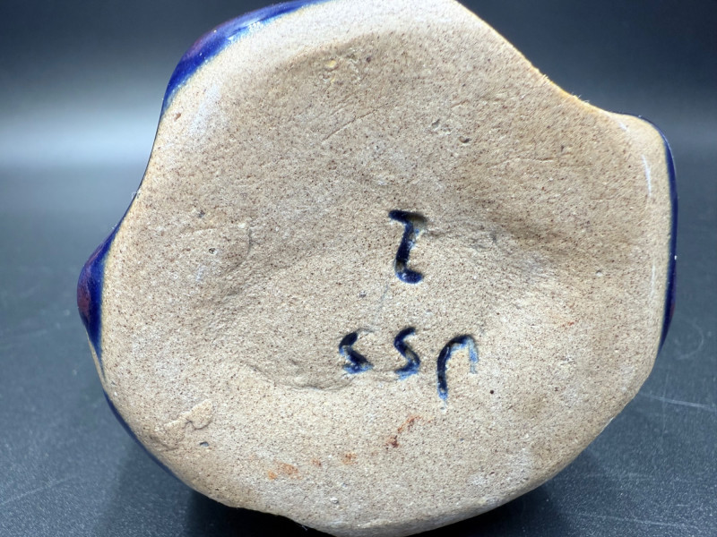 Tapered form with angular shaping and mottled surface treatment. Marked “JSS” on the underside.