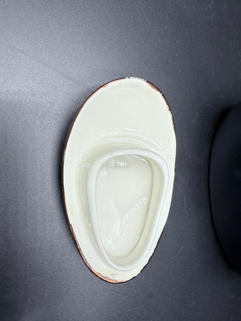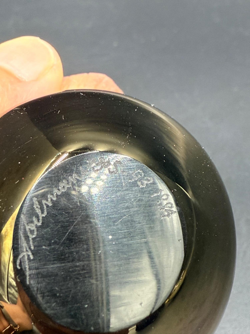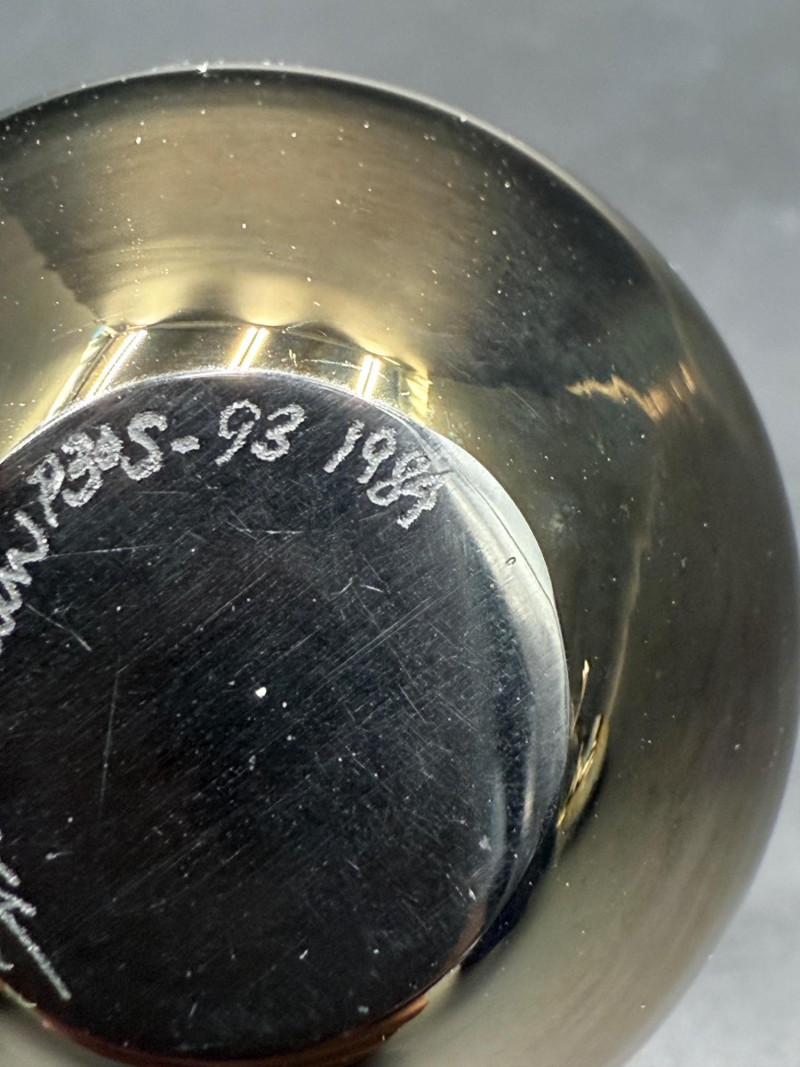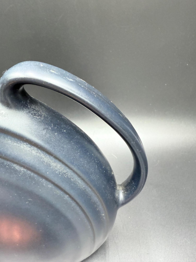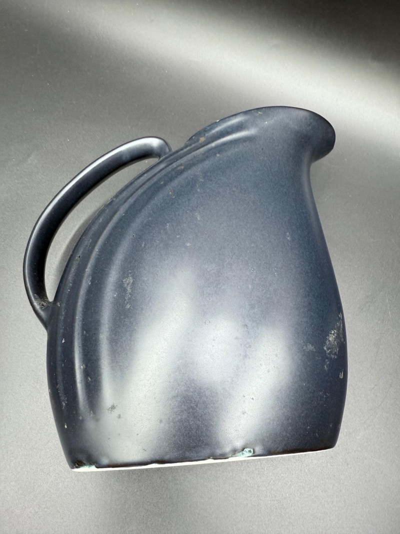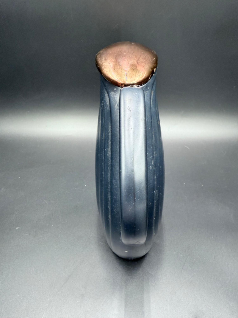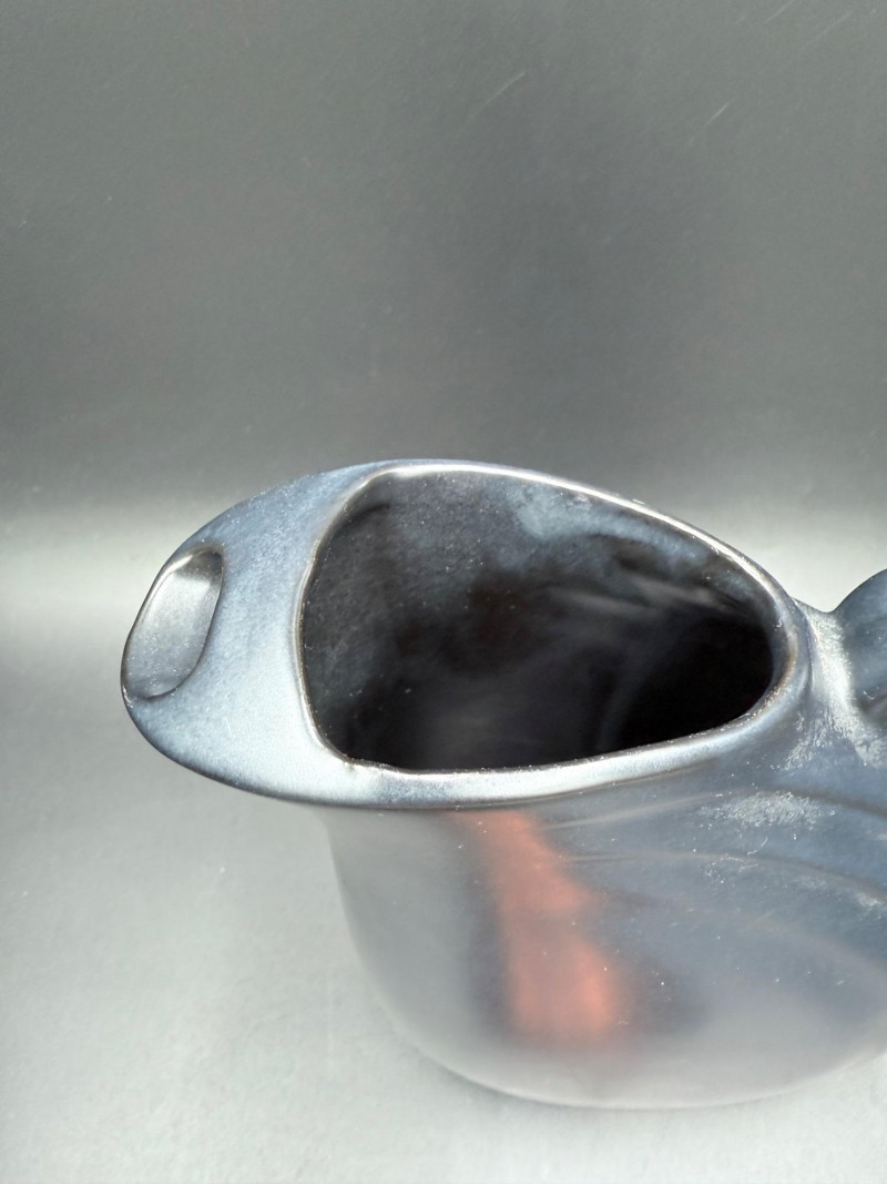 Tapered form with angular shaping and mottled surface treatment. Marked “JSS” on the underside.