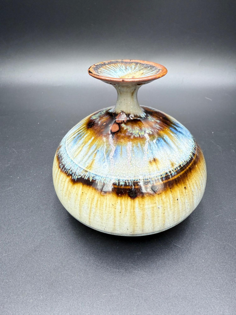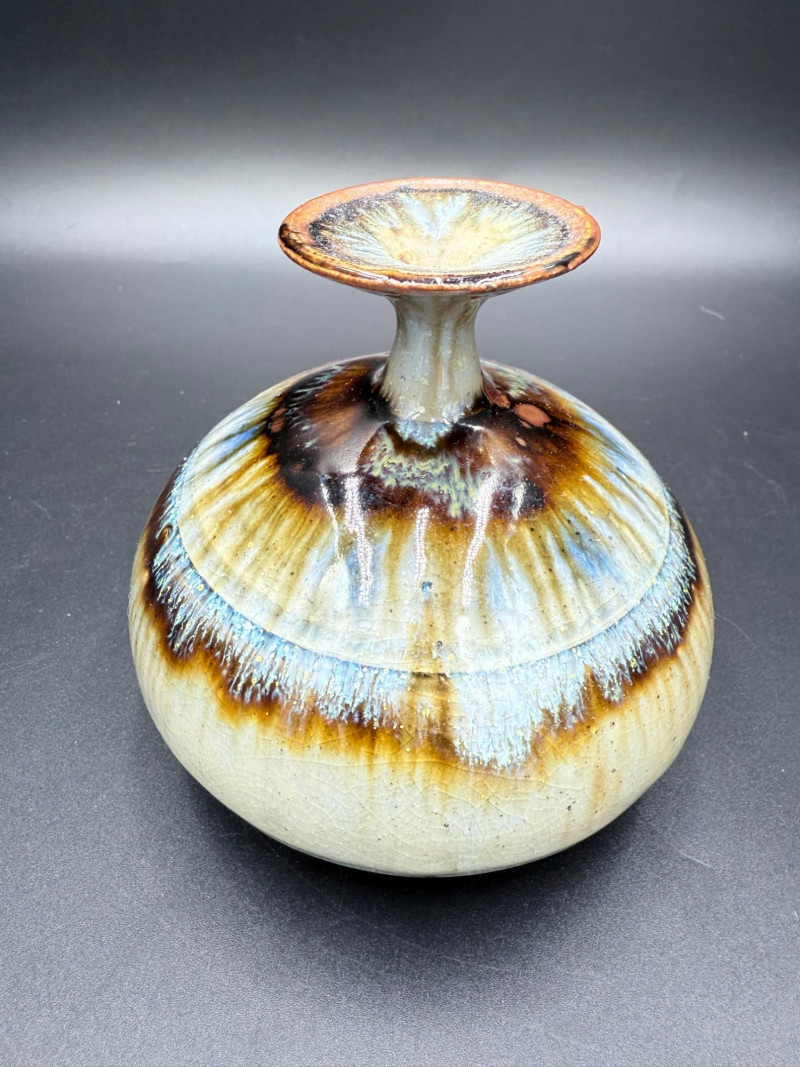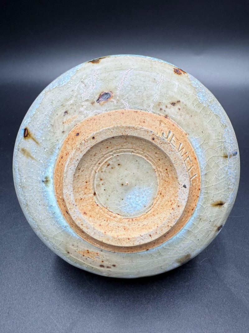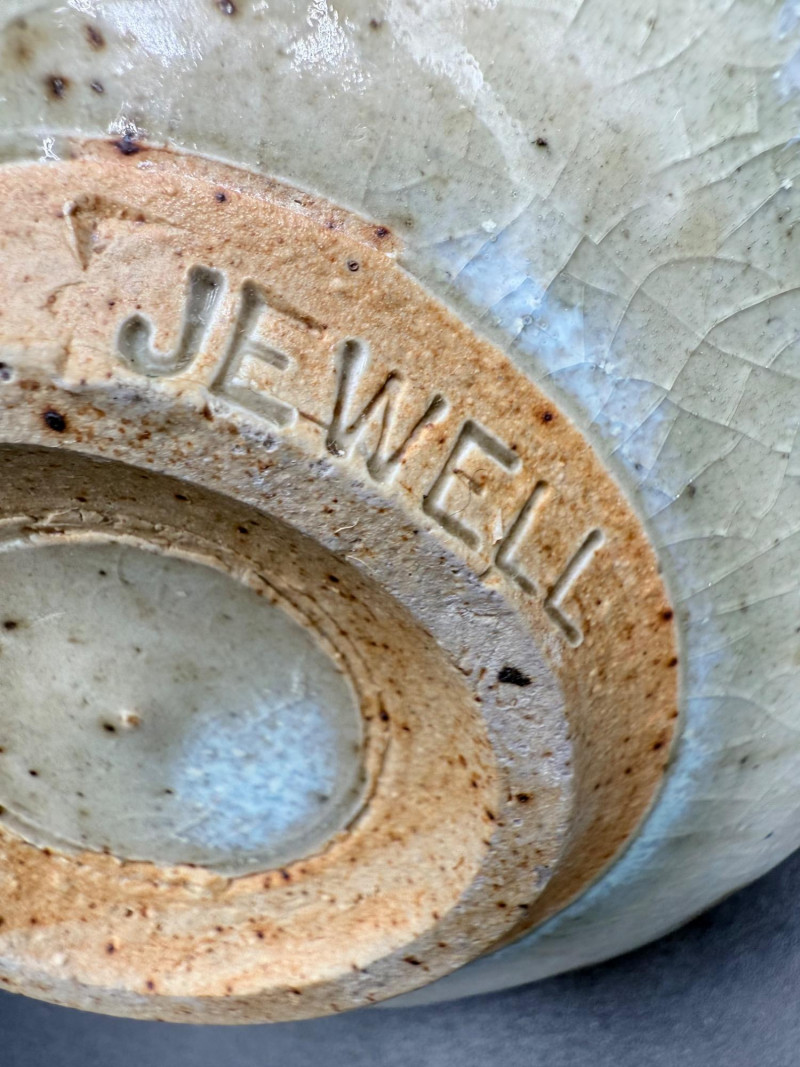 Rounded form with flared mouth and layered glaze finish. Marked “JEWELL” on the base.