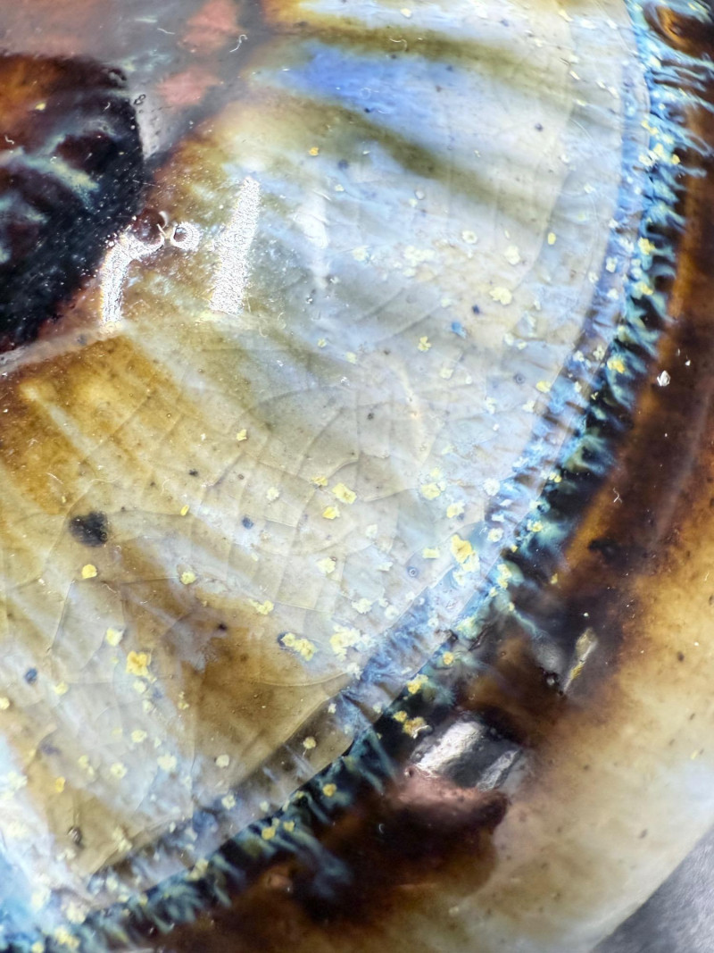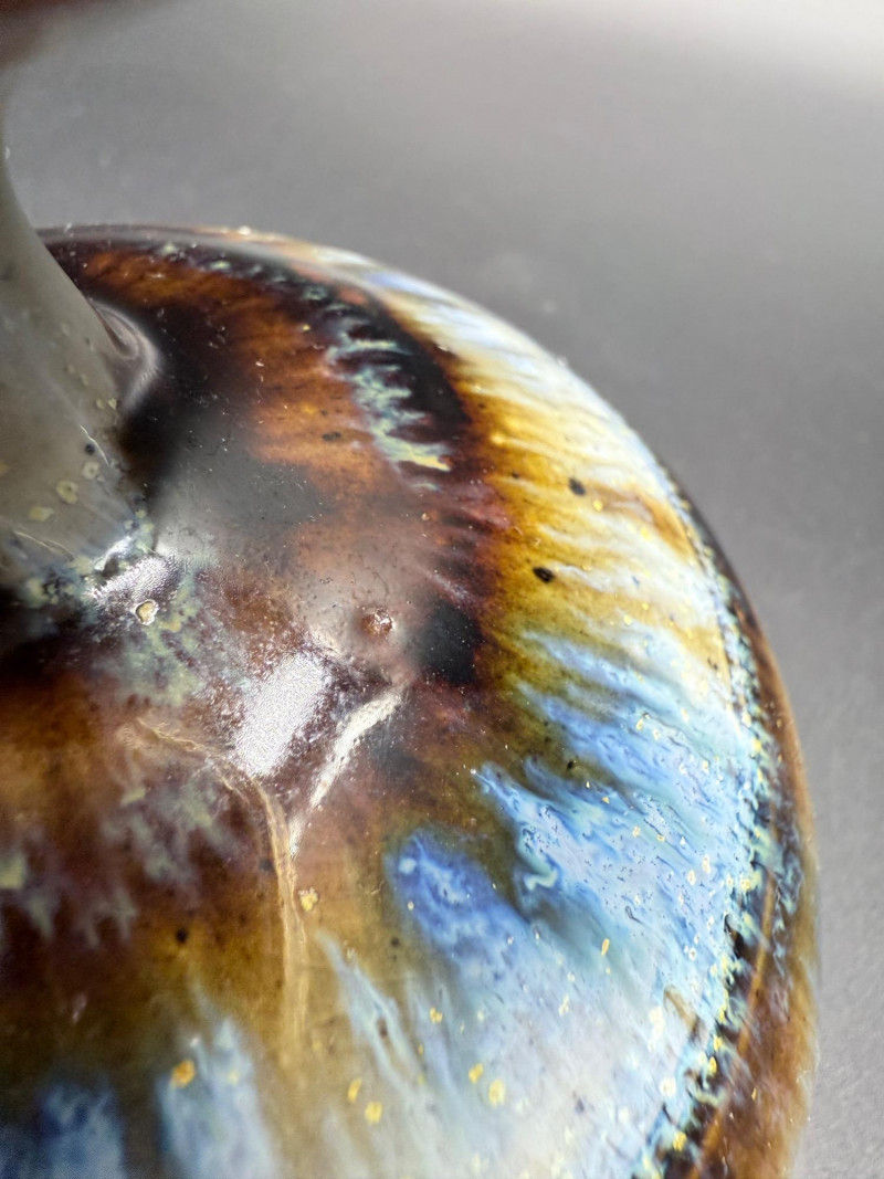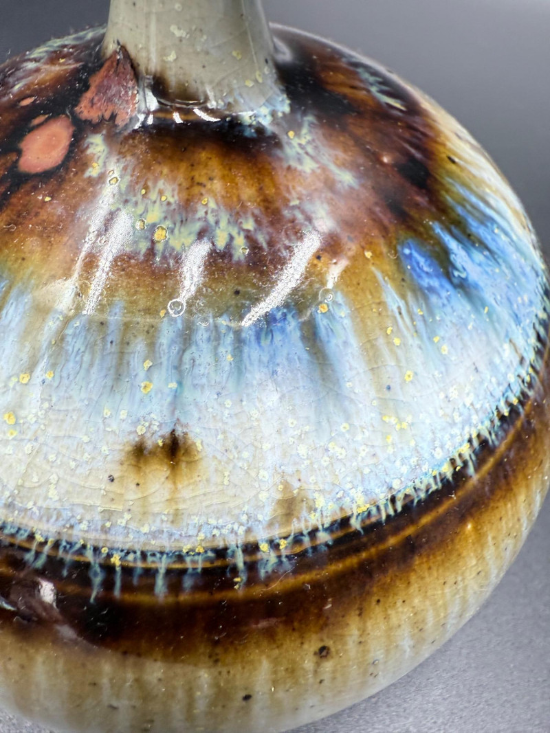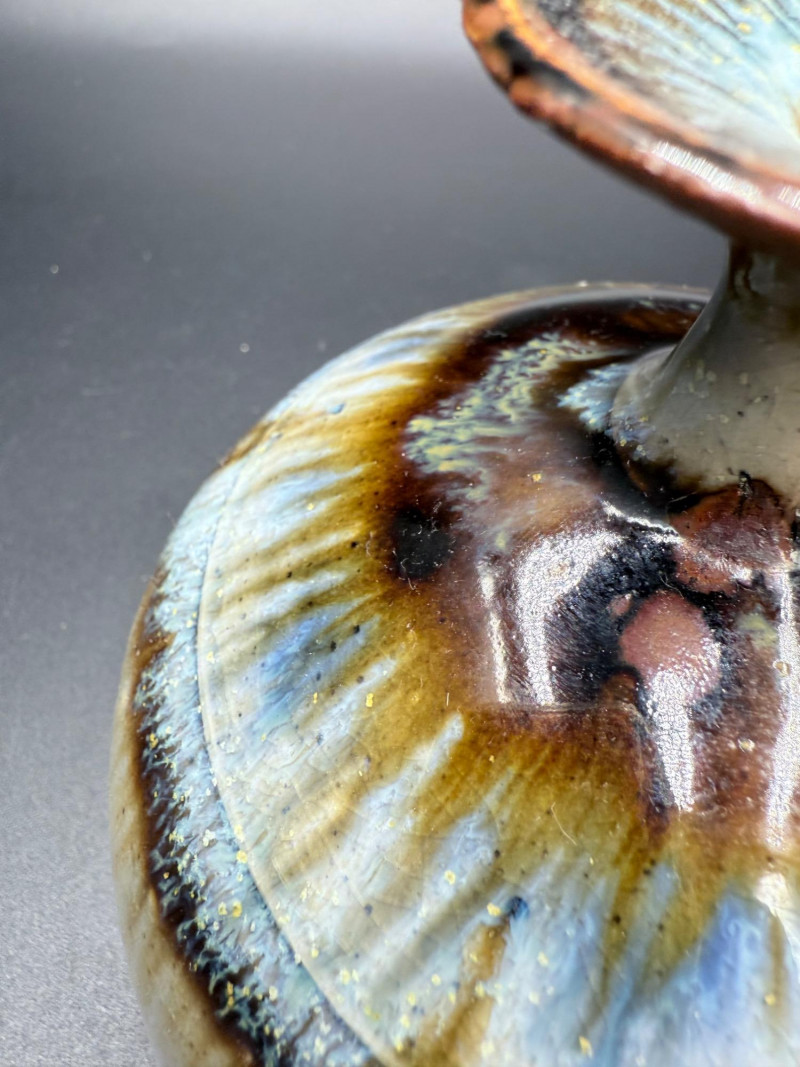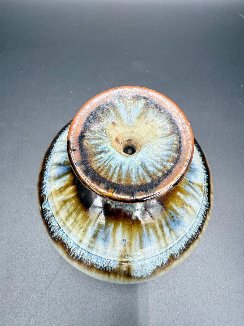Rounded form with flared mouth and layered glaze finish. Marked “JEWELL” on the base.