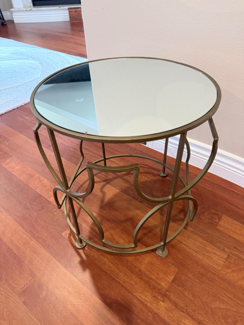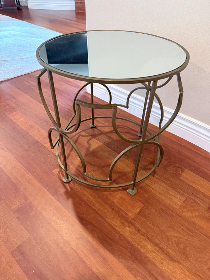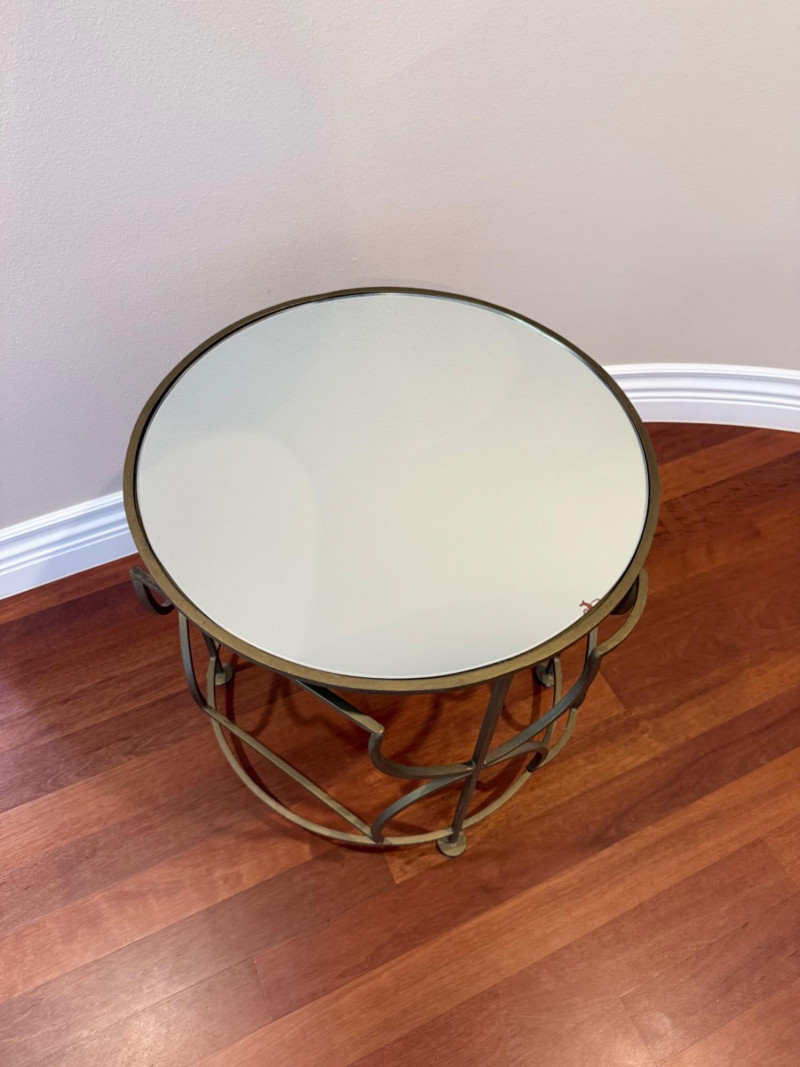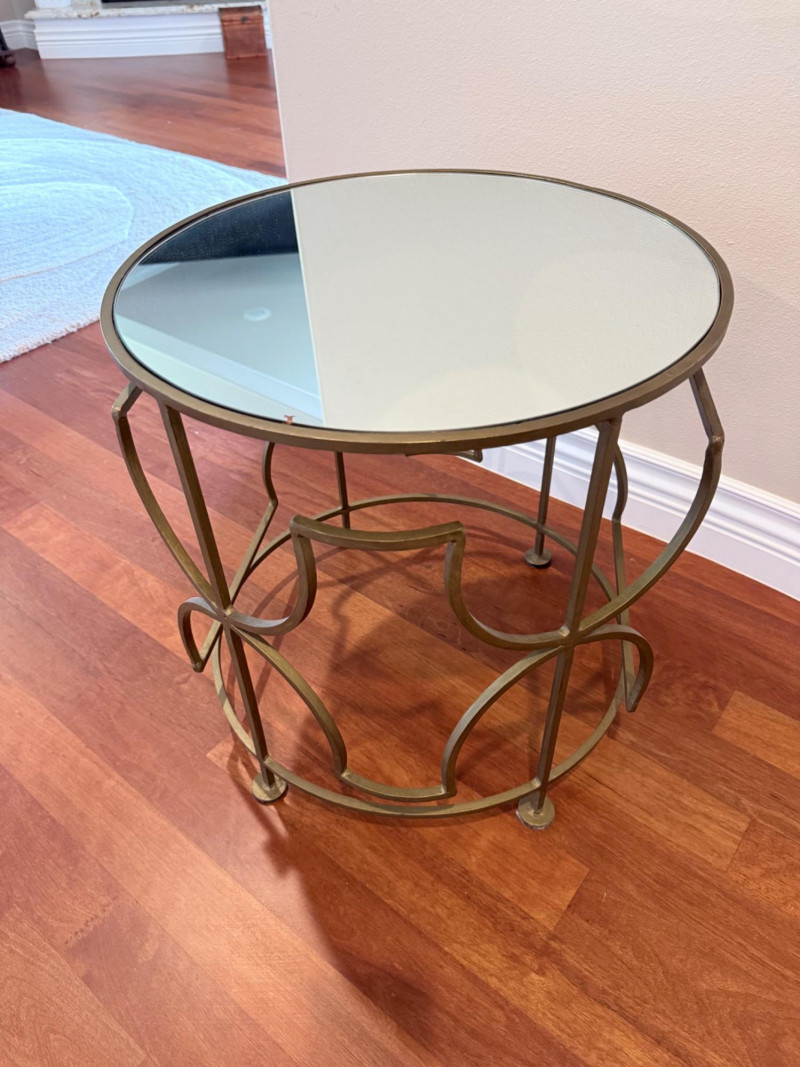 Lot # 94 - Round Gold-Tone Metal Side Table with Mirrored Top