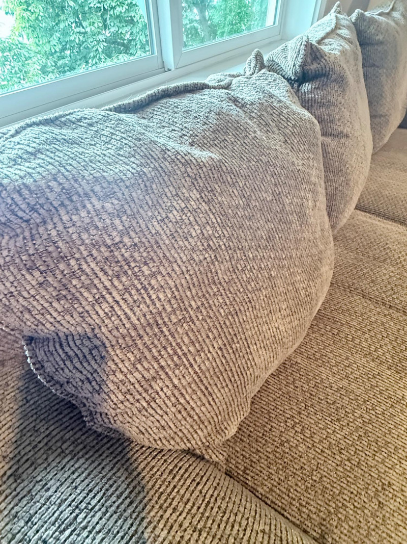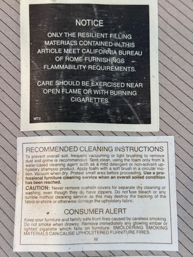Care Instructions: Vacuum or lightly brush to remove soil and dust. Spot clean using foam from a mild water-based cleaning agent. Do not remove cushion covers for dry cleaning or washing. Avoid bleach and tumble dryers.