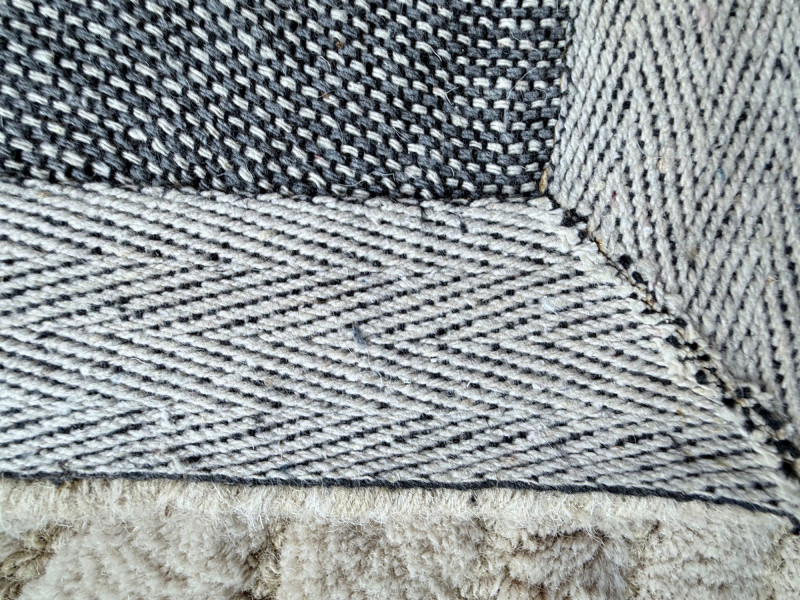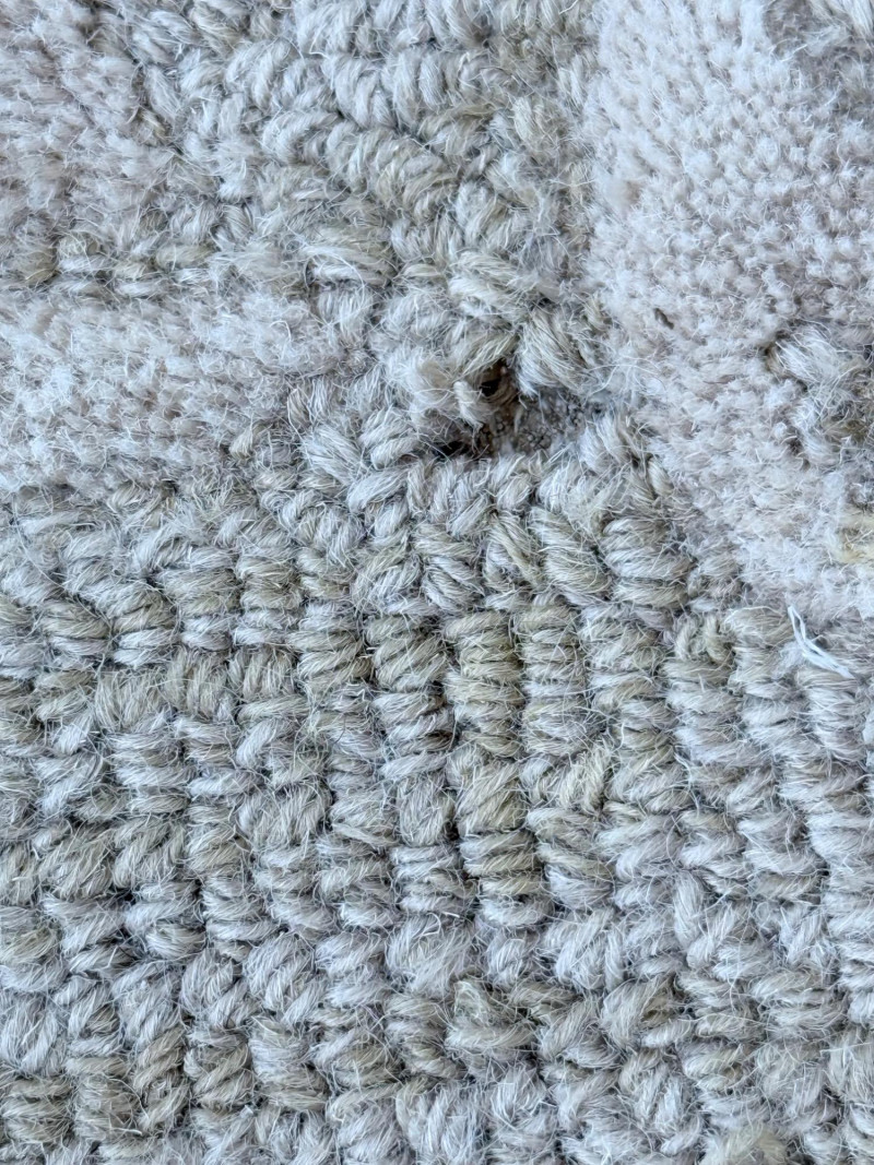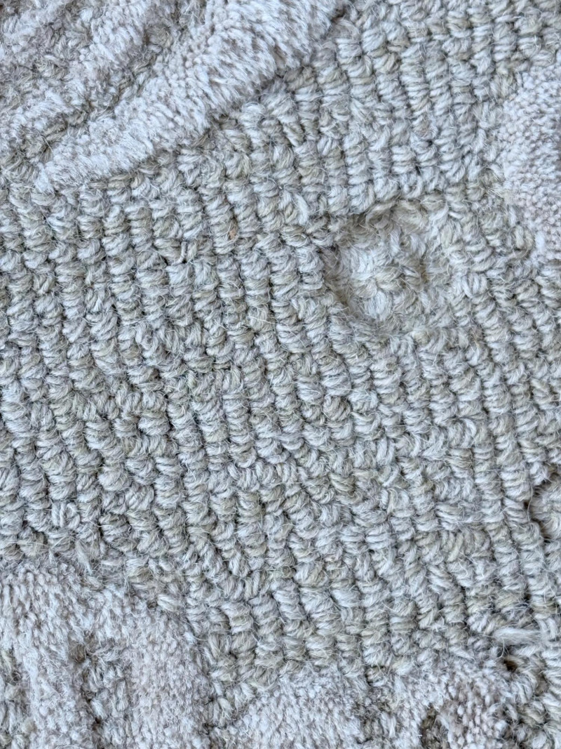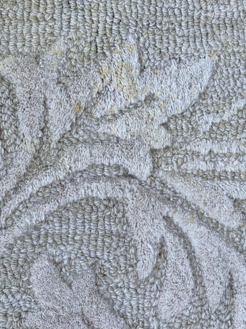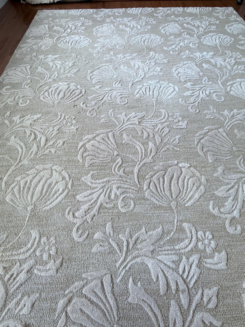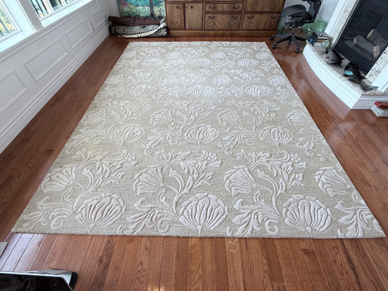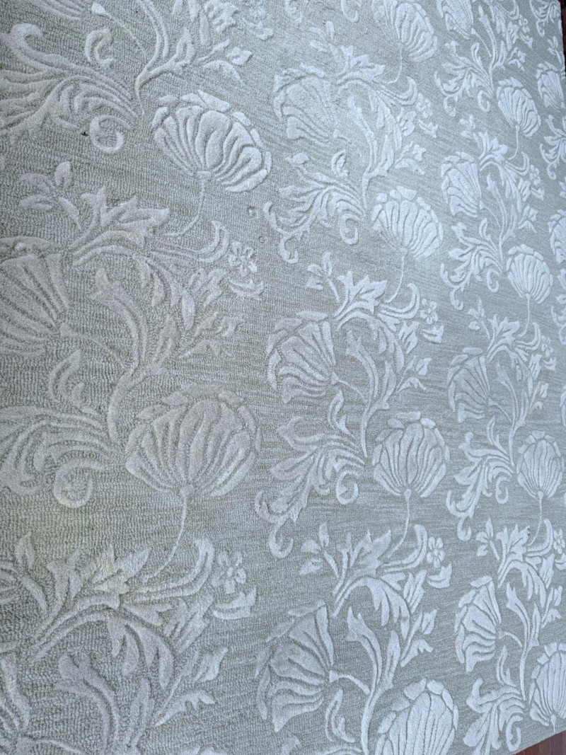 Bashian Verona Wool Rug – 8.6' x 11.6' Handmade rug woven in India with a 100% wool pile. Features a raised floral pattern over a looped base. The surface shows a mix of cut and loop textures. Reverse side is finished with a stitched edge and manufacturer’s label. Dimensions: 8.6' W x 11.6' L