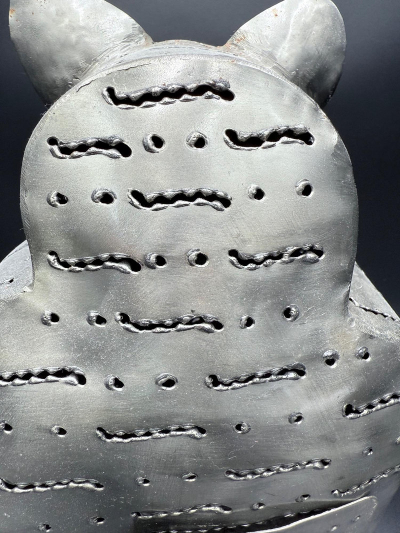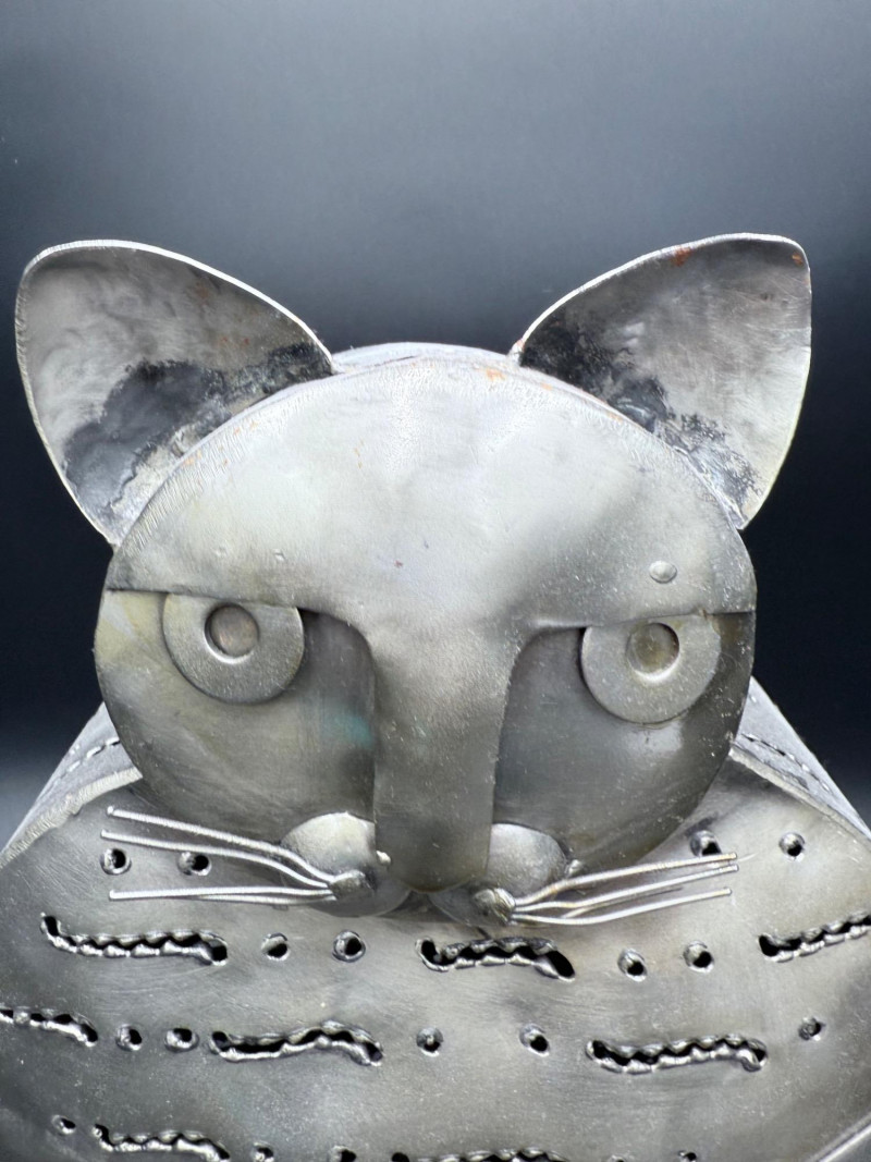 Lot # 133 - Metal Cat Tea light Holder and Hand-carved Cat by James Haddon