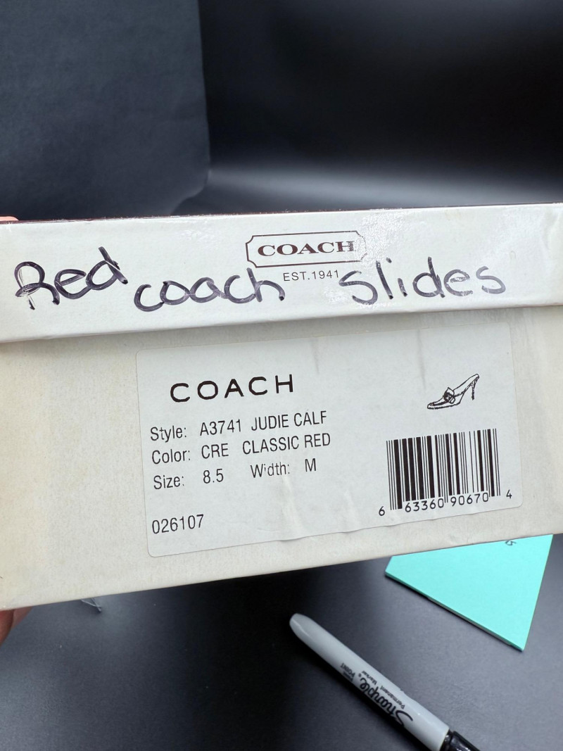 Lot # 23 - Coach Classic Red Leather Slides – Size 8.5