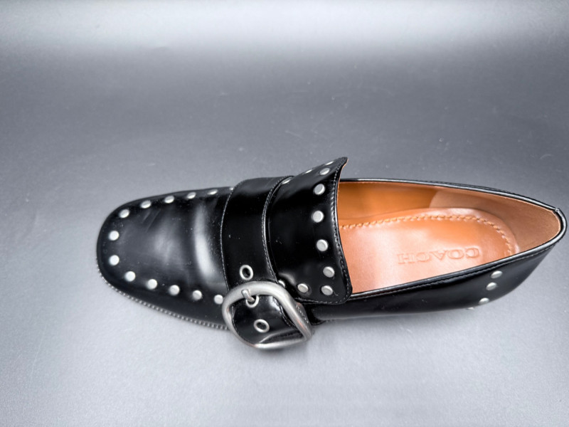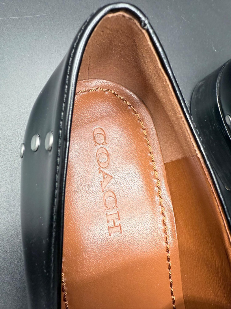 Lot # 34 - Coach Black Leather Studded Loafers – Size 8.5