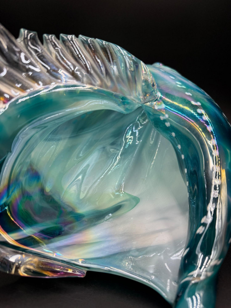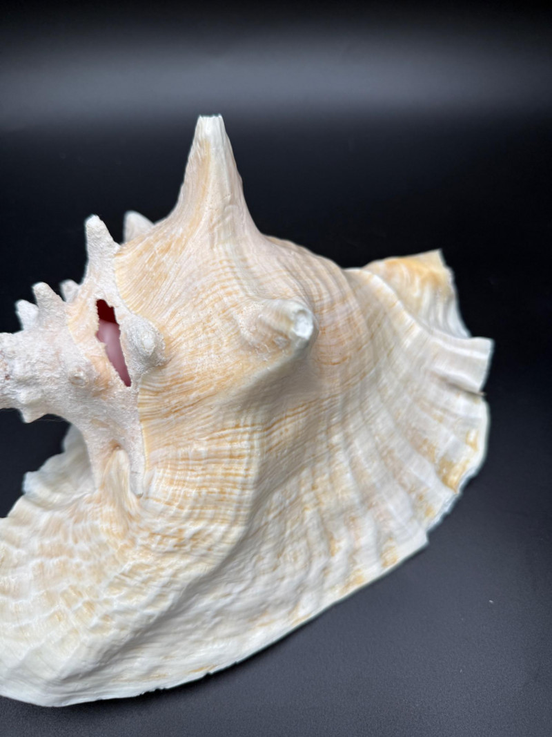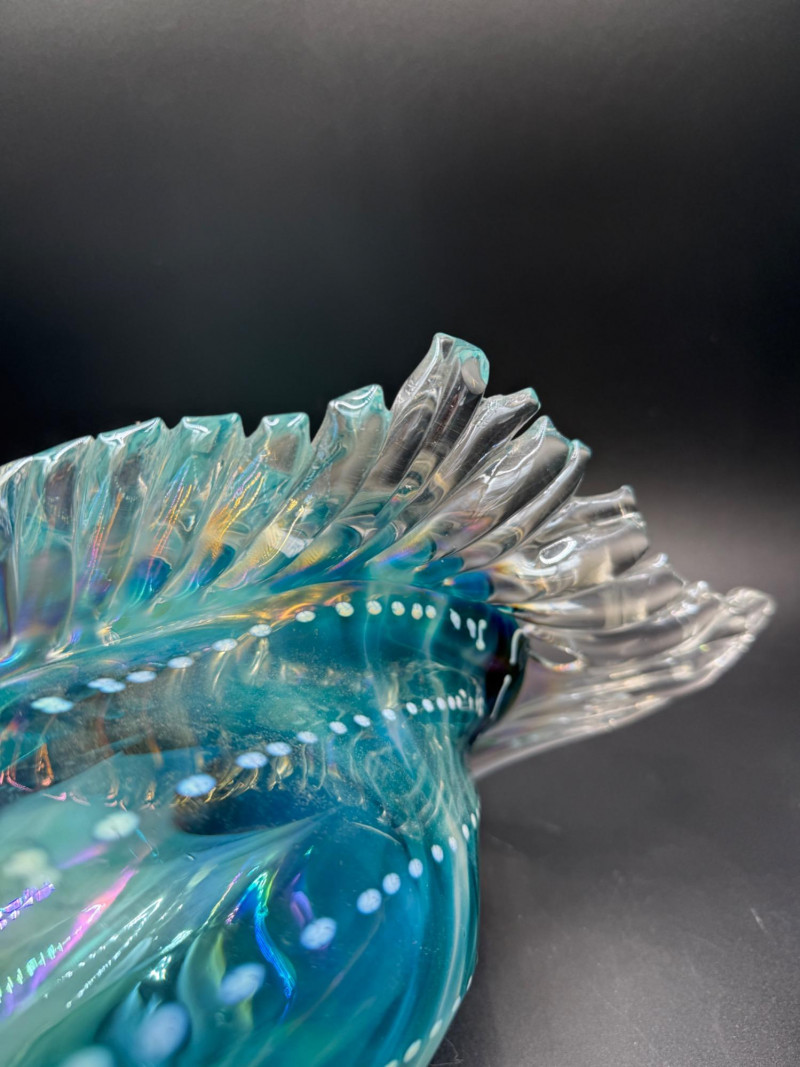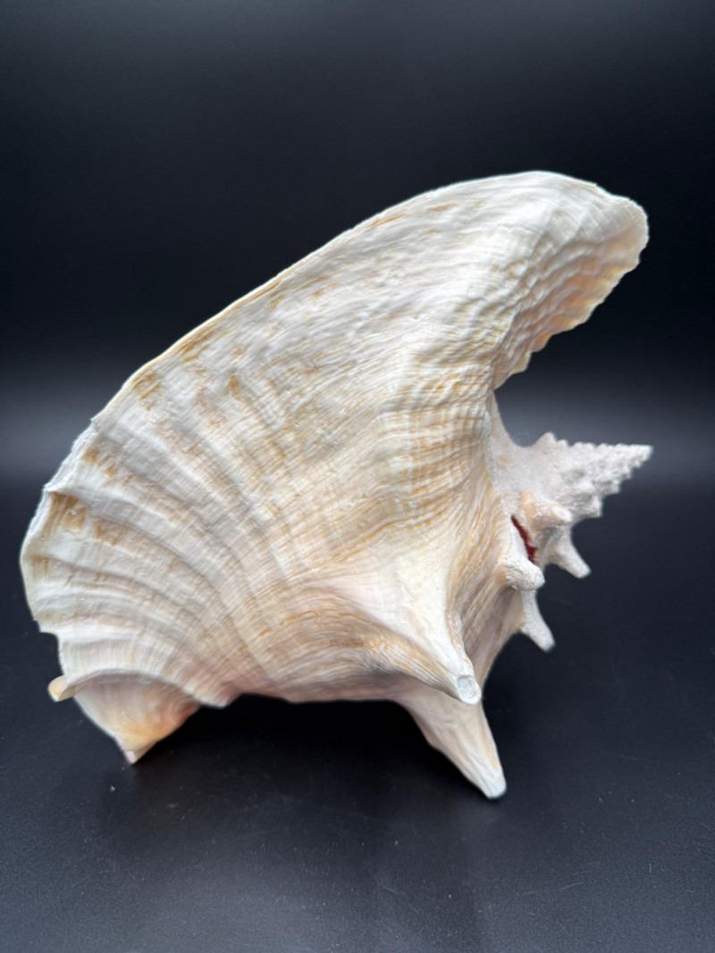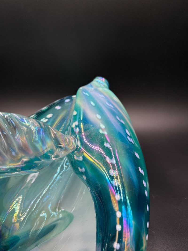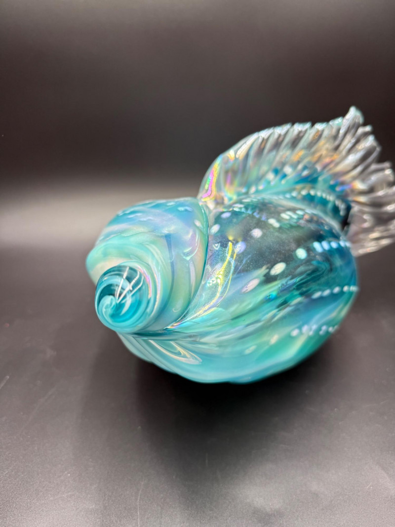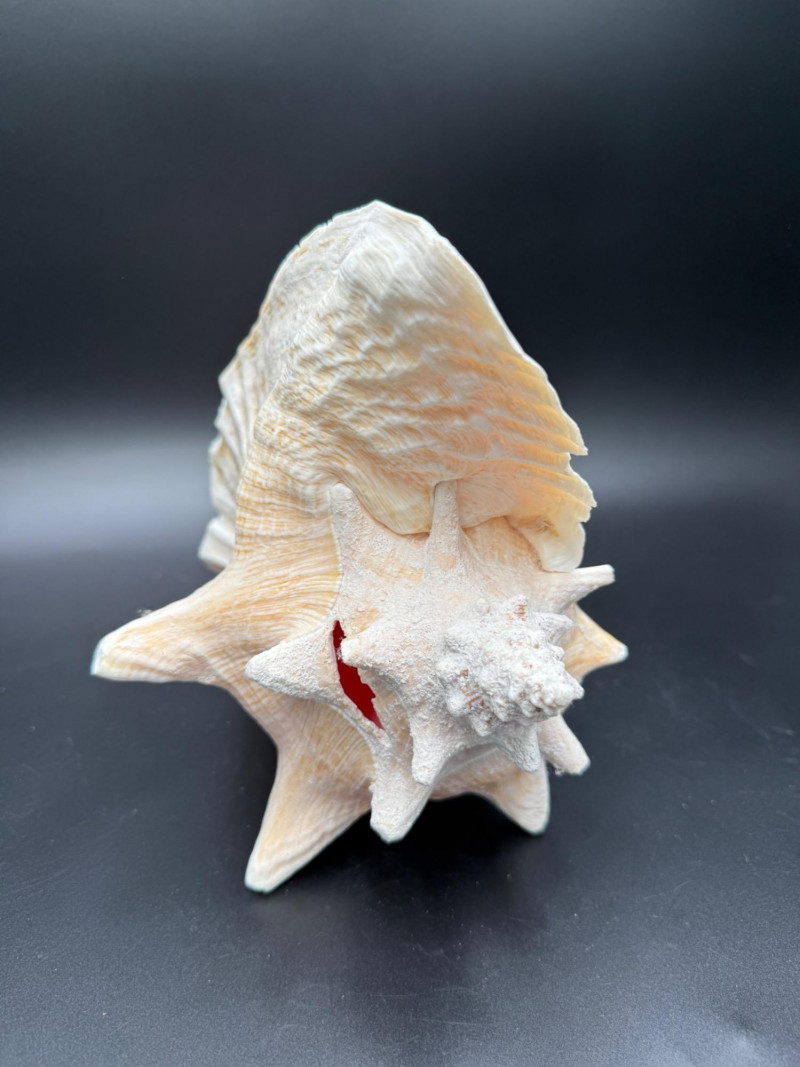 Large Art Glass Conch Sculpture & Natural Conch Shell – Decorative Coastal Décor Pair Beautiful 2-piece lot perfect for coastal or nautical décor enthusiasts. Large Art Glass Conch Sculpture – A stunning, hand-crafted glass shell in swirling aqua and teal tones with clear, ribbed accents and subtle iridescence. A striking statement piece with a refined, ocean-inspired design. Approx. 16" L x 8" W x 8" H Natural Conch Shell – A classic ocean treasure with soft pink and coral interior tones, showing organic form and natural beauty. Approx. 10" L x 7" W x 6" H The art glass sculpture is especially eye-catching under light, showing off vibrant color shifts and clear textured edges reminiscent of fine Murano-style glass. Highlights: Includes 2 decorative pieces: art glass conch and natural conch shell Art glass conch has rich color, clear accents, and iridescent sheen Natural shell with pink interior tones for authentic coastal charm Condition: