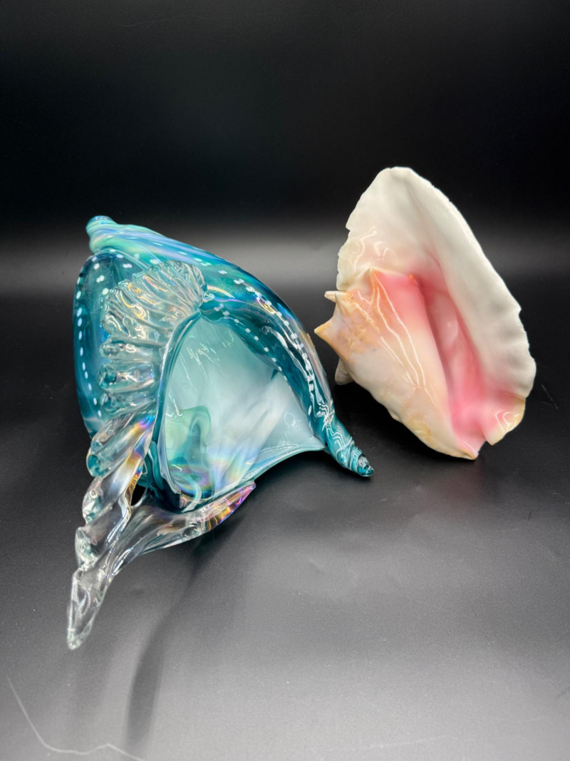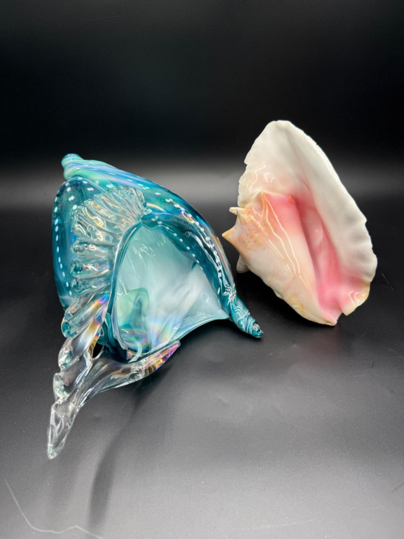 Lot # 100 - Large Art Glass Conch Sculpture & Natural Conch Shell