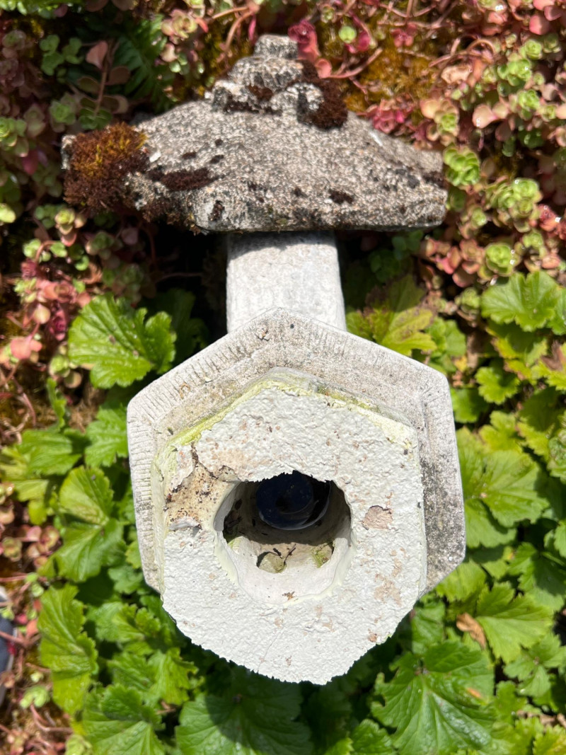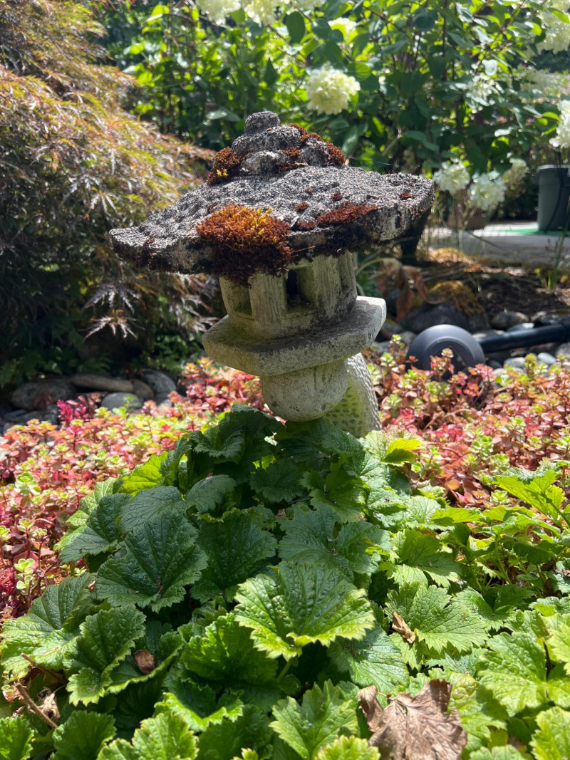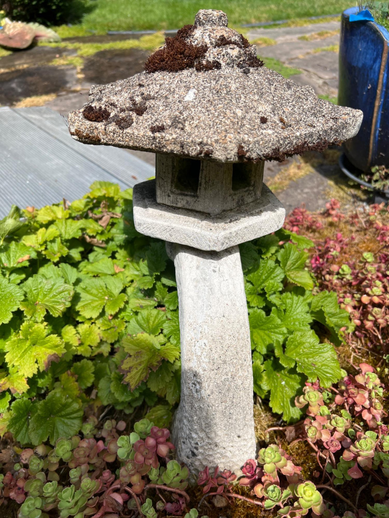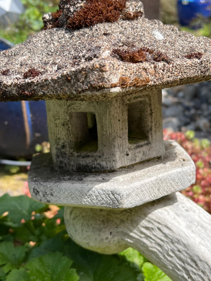 Authentic cement garden lantern inspired by Japanese architecture. Ideal for creating peaceful outdoor vignettes, blending stone tradition with meditative style. Top removes to insert candle or battery-powered lighting feature. Friendly Reminder: This auction will start closing at 6:30pm on Tuesday, August 12th