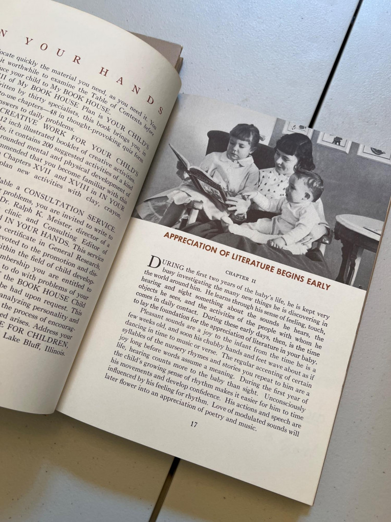 This set of parent/child books offer a rich collection of early- to mid-20th century educational volumes designed to inspire and guide young minds: My Book House Includes Volumes 2 through 12 (Volume 1 missing) Classic anthology edited by Olive Beaupré Miller Stories, poems, historical narratives, and illustrations Beloved by educators and collectors for its multicultural storytelling and child development themes Your Child’s World (2 Volumes) Published by The Book House for Children Offers psychological insight and developmental guidance for parents In Your Hands Companion volume to “Your Child’s World” Focuses on nurturing character and intellect in young children All volumes are in good readable condition with expected age toning and wear. A foundational addition for homeschoolers, collectors of antique children’s books, or vintage book enthusiasts. Friendly Reminder: This auction will start closing at 6:30pm on Tuesday, August 12th