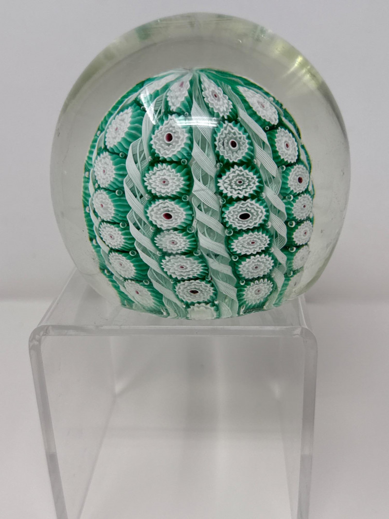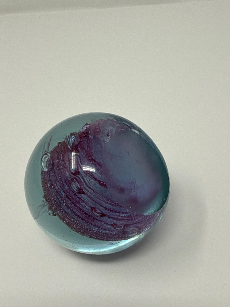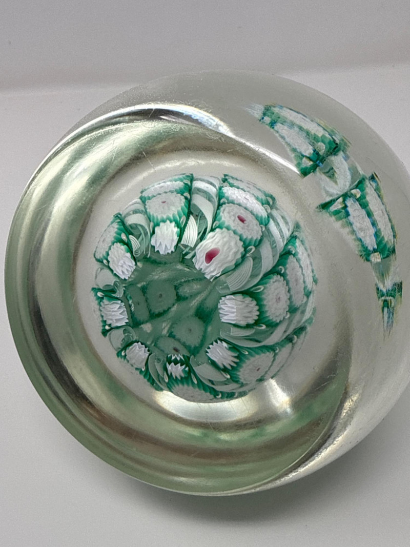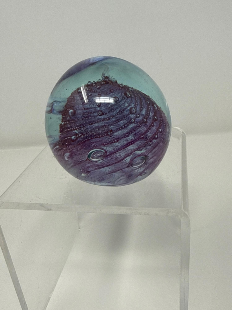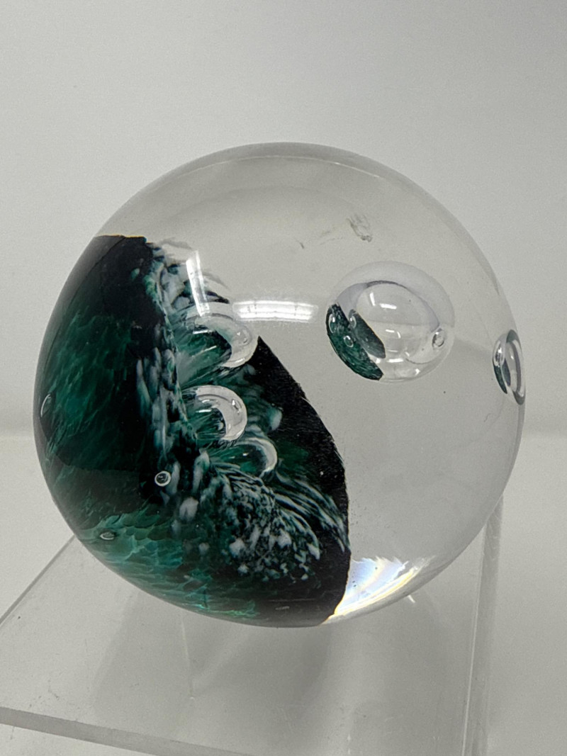 Collection of Art Glass Paperweights Assorted collection of decorative art glass paperweights in various colors and patterns, including millefiori-style canes, controlled bubbles, and swirled inclusions. The group features both clear and colored bases with intricate internal designs. Sizes range from approximately 2 1/2" to 4" in diameter. Measurements: Largest: approx. 4” x 4” Smallest: approx. 2.5” x 2.5”