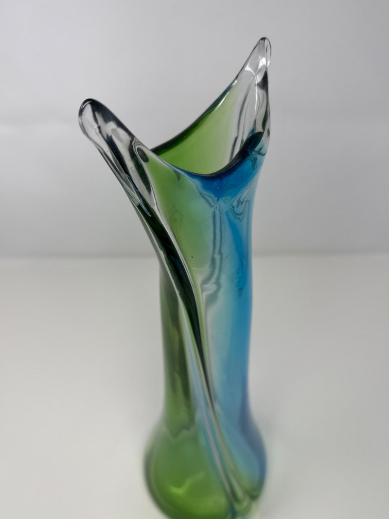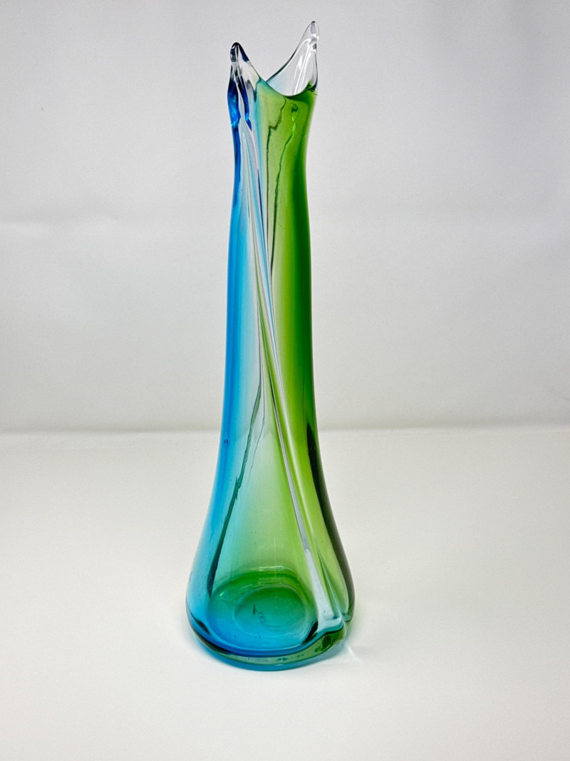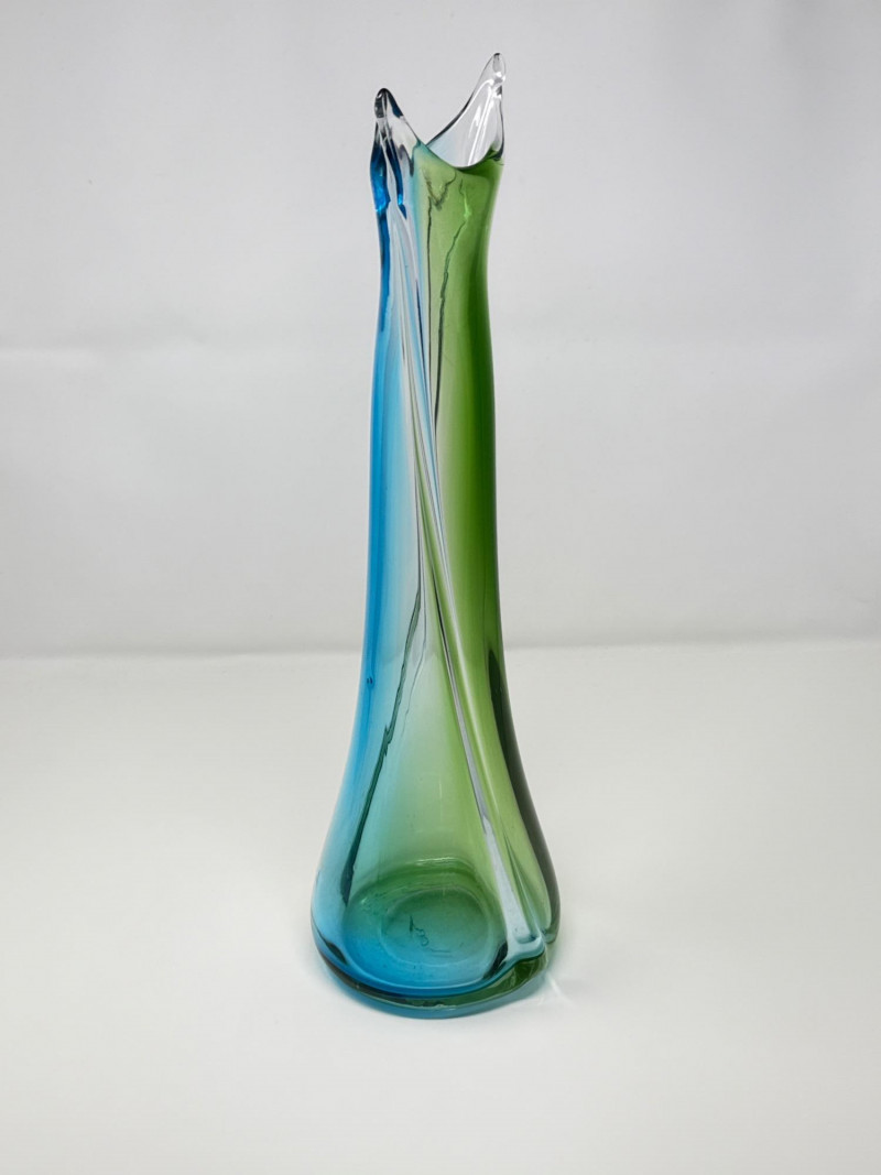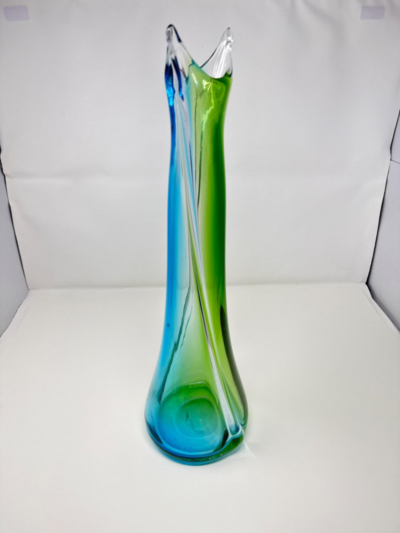 Lot # 15 - Vintage Stretched Glass Vase in Blue, Green, and Clear – 19" Tall