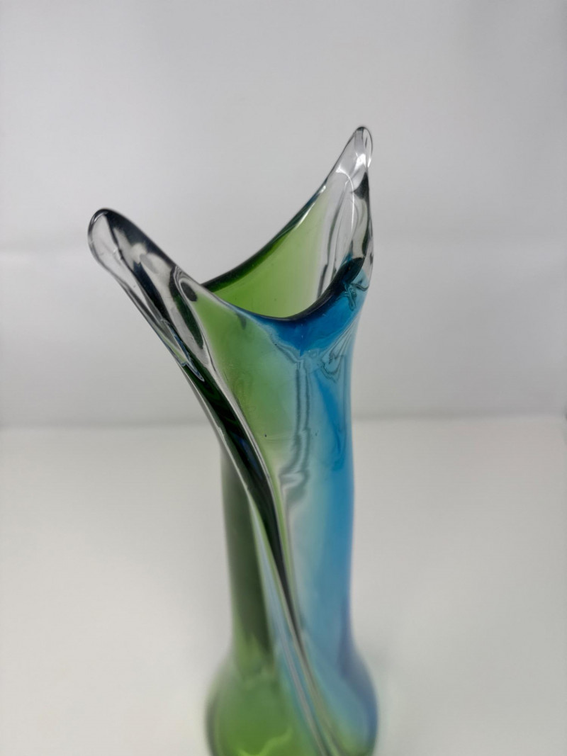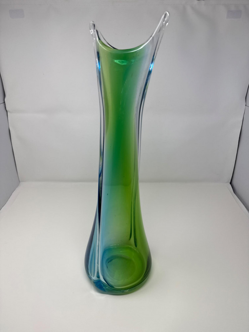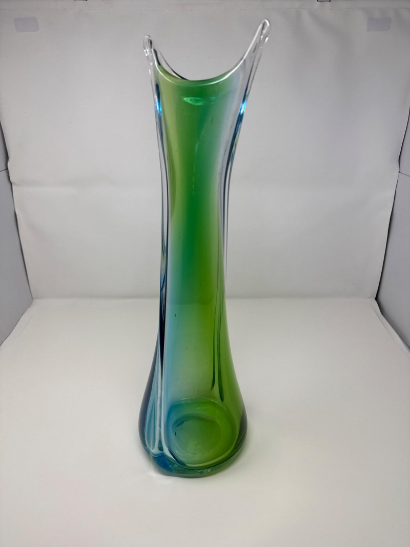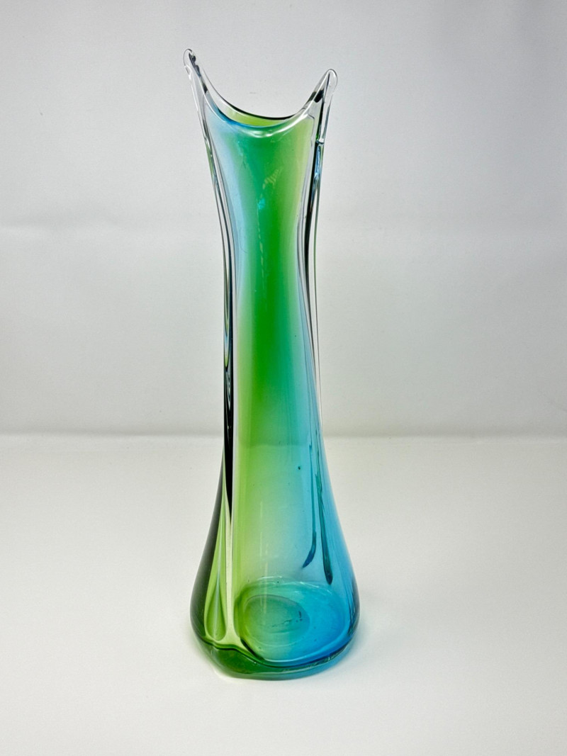 Lot # 15 - Vintage Stretched Glass Vase in Blue, Green, and Clear – 19" Tall