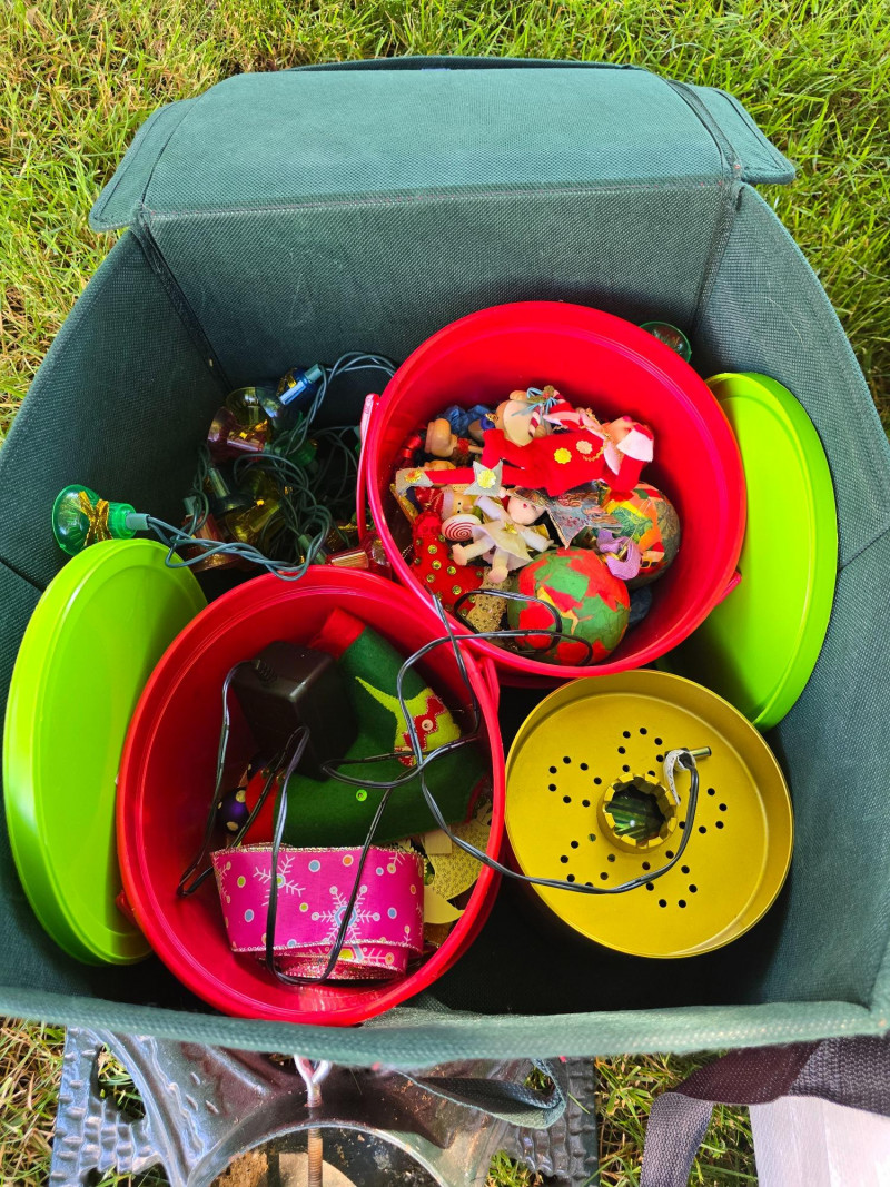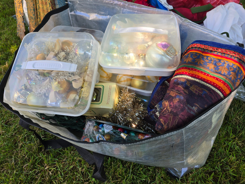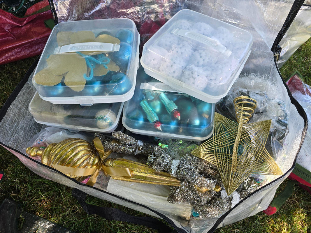 Lot # 43 - Christmas Lot #3 – Carved Angel, Wise Men, Ornaments & Tree Stand
