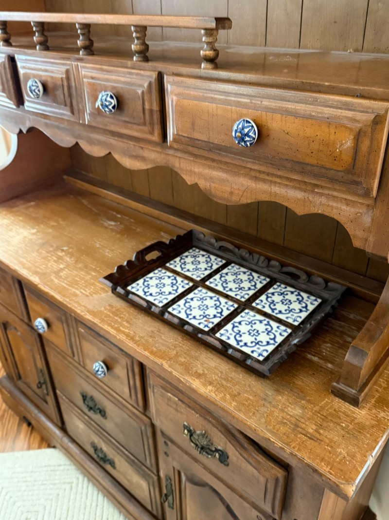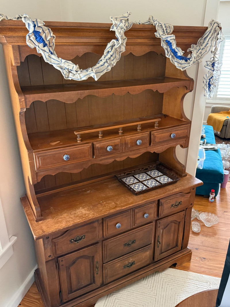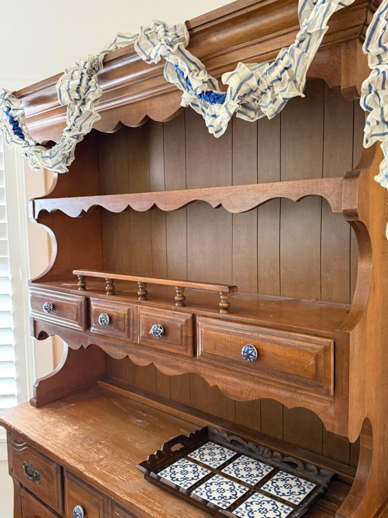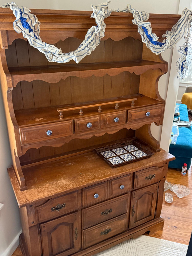 Lot # 69 - Vintage Wood Dining Hutch with Upper Shelf Storage