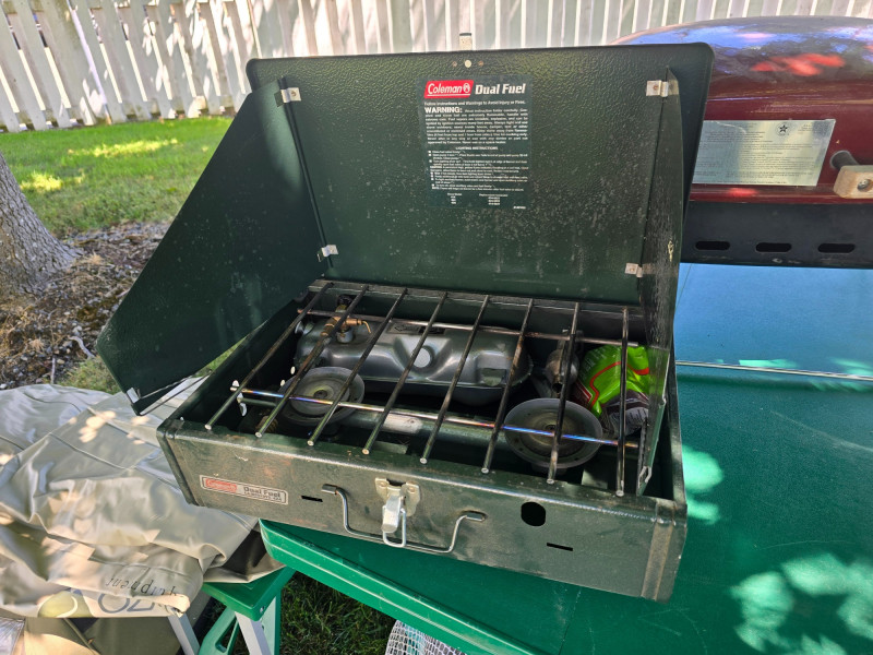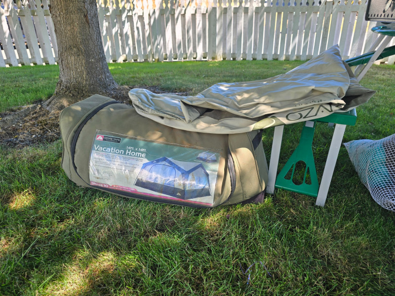 Camping Lot #1 A camping bundle with essential gear for group or family outdoor trips. Great for setting up a full campsite with cooking, sleeping, and lighting equipment. Includes: Sunbeam Gas Grill – Portable tabletop model Coleman Dual Fuel Camp Stove – Supports white gas and unleaded gasoline Ozark Trail 14' x 14' Vacation Home Tent – Sleeps up to 10, with optional room dividers Compact Two-Person Tent – Spare tent with mesh cover Ozark Trail Twin Inflatable Mattress – For added sleeping comfort Two GE LED Lanterns – Battery-operated, ideal for campsite lighting And more!