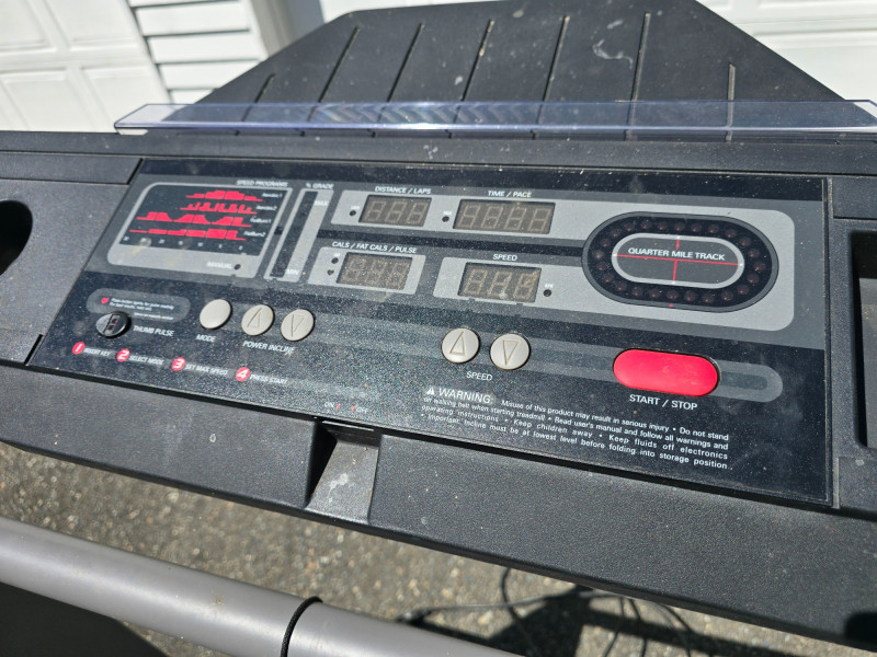 ProForm 625 EX Performance Treadmill – Wide Deck Folding Unit ProForm 625 EX wide deck performance treadmill. Features include speed and distance tracking, calories burned, and lap monitoring via digital console. Programmable settings for workout customization. Safety key and power switch included. Foldable design allows for vertical storage to save space.