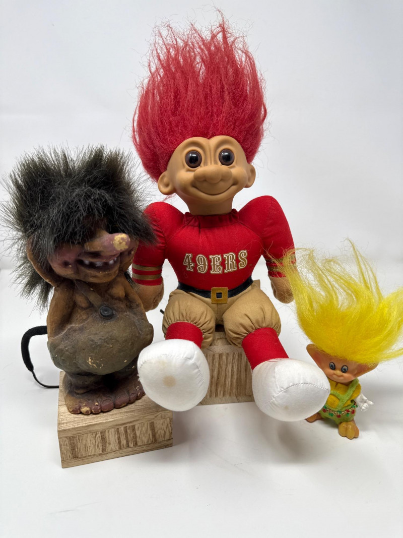 Note: Norway troll has a dented nose with a mark, the 49ers troll has a light stain on one foot, and the small troll has a mark on the back.