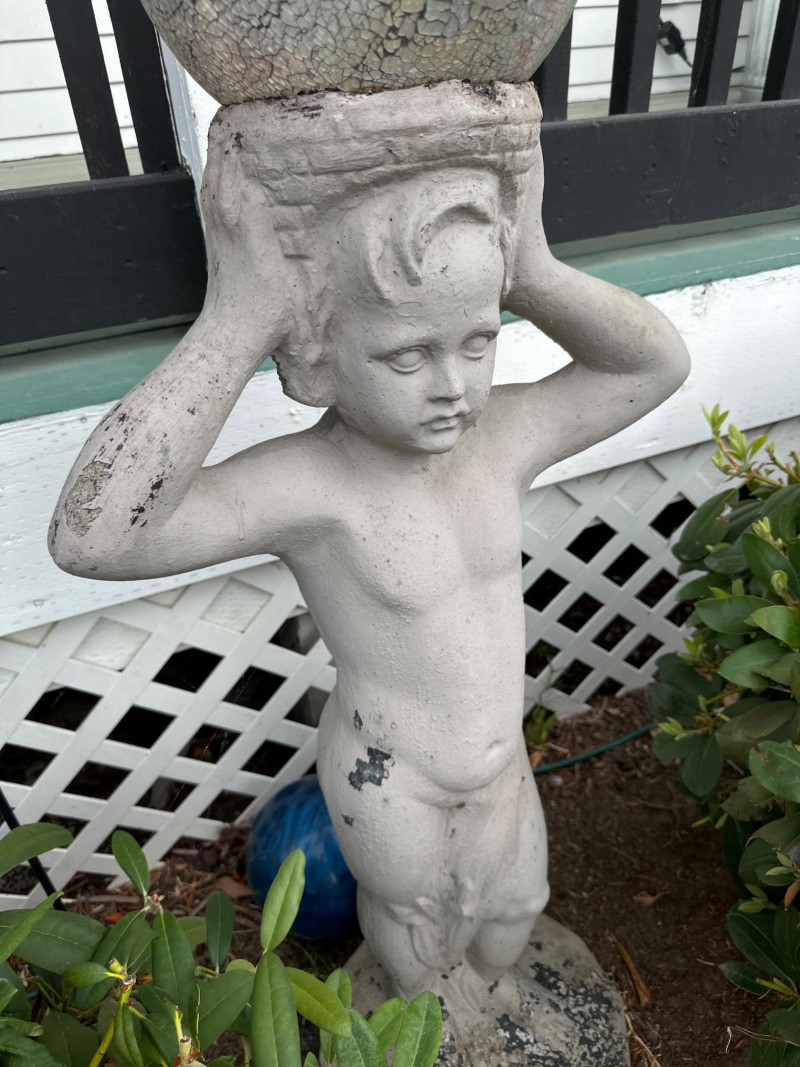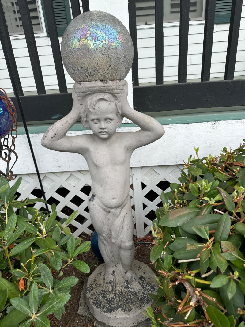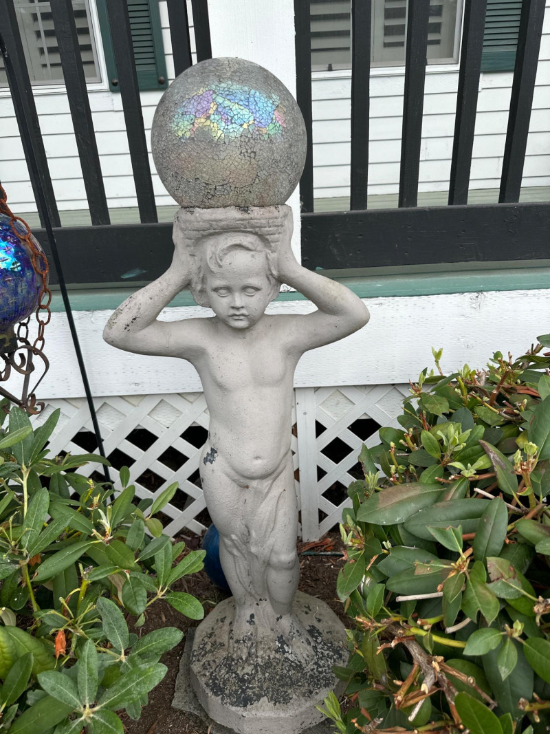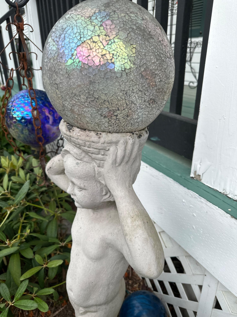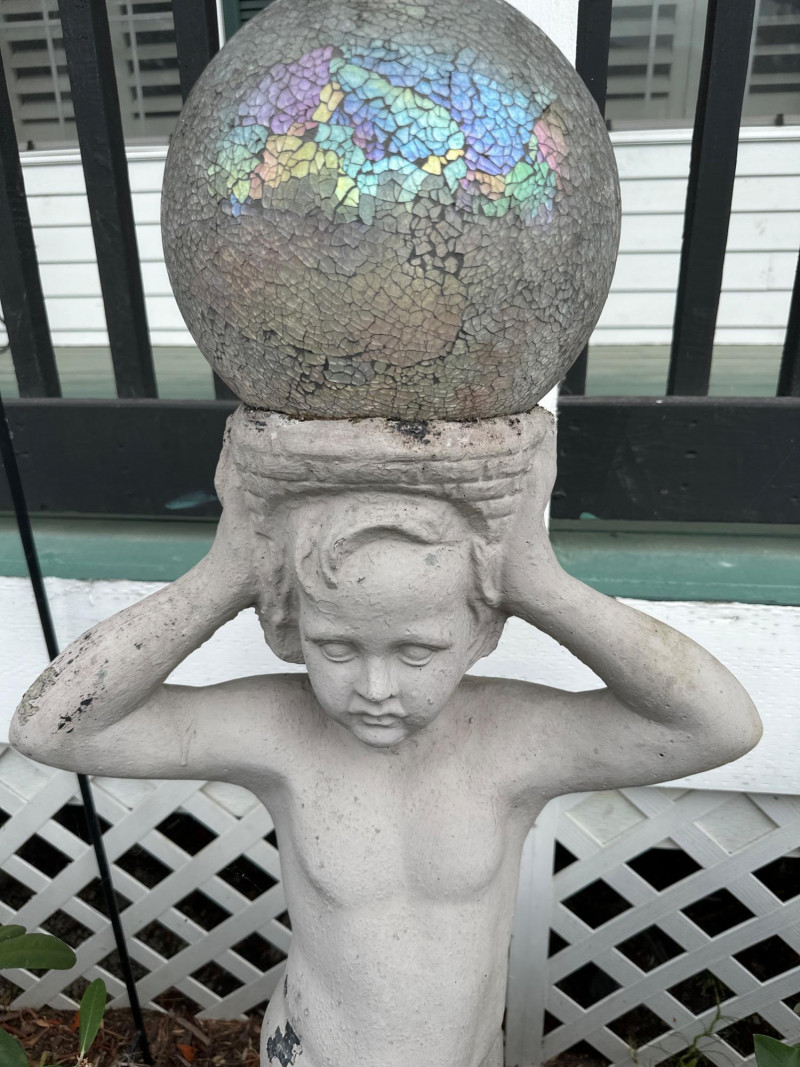 Lot # 106 - Athens Cement Statue with Iridescent Glass Ball