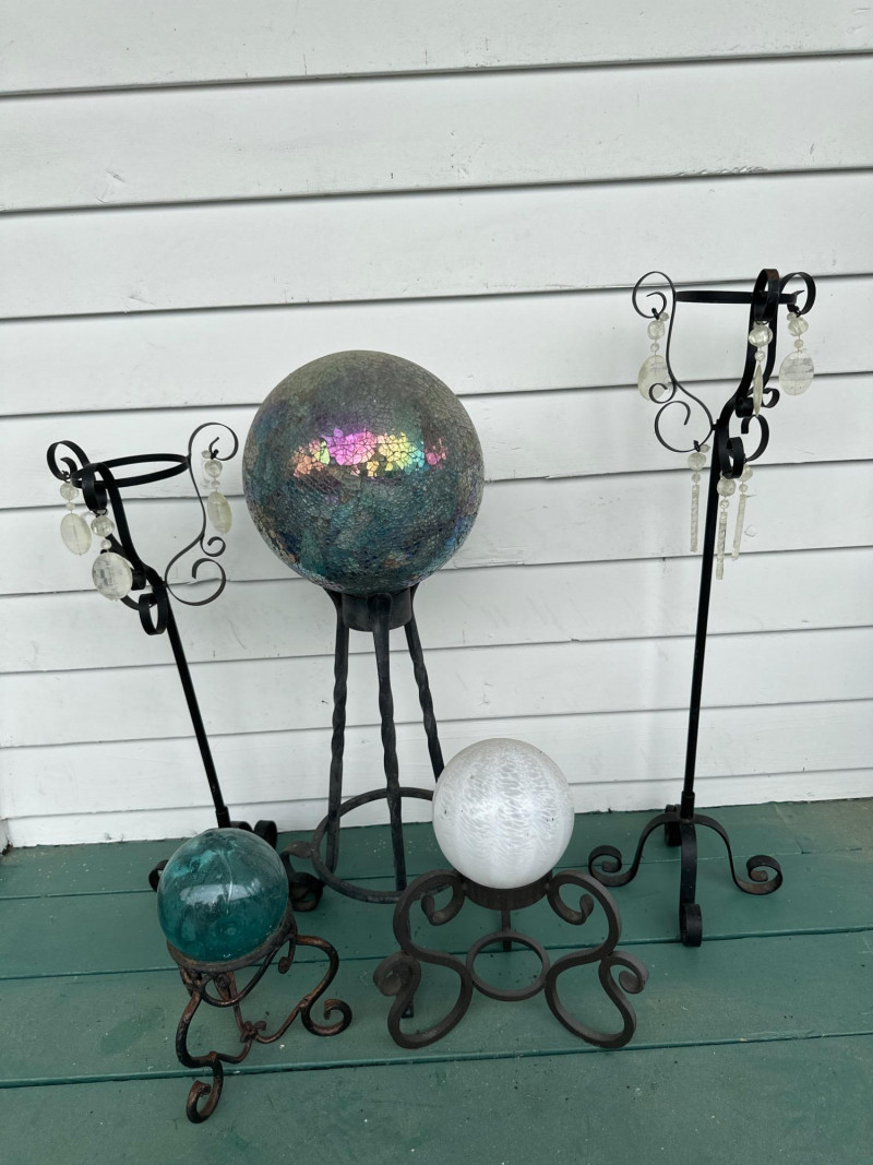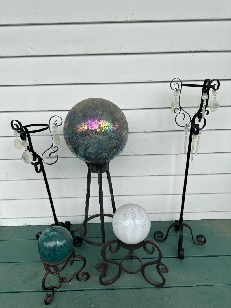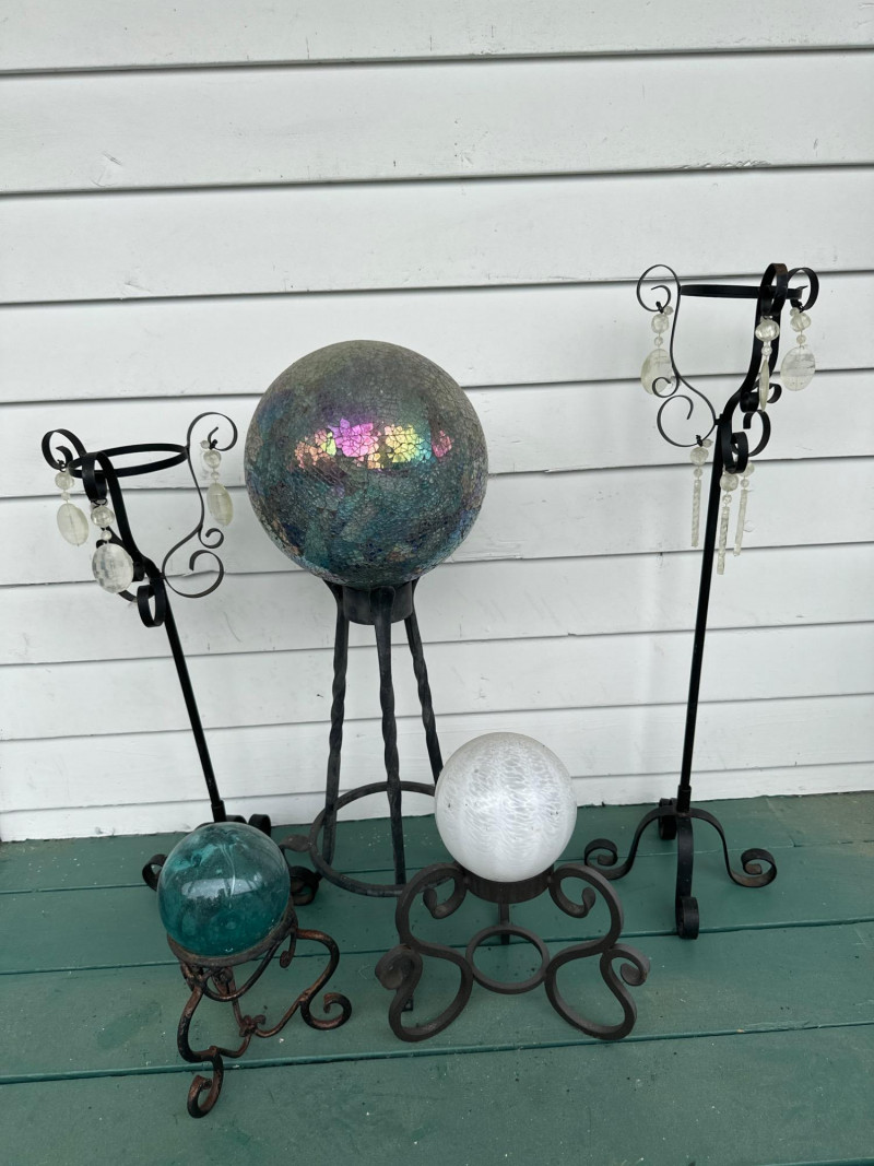 Lot # 114 - Assortment of Orbs and Wrought Iron Stands