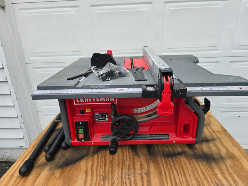 Craftsman 10" Table Saw – Model CMXETAX69434502 Craftsman 10-inch table saw with corded electric power. Includes the appropriate wrenches, power cord, adjustable legs, and original manual. Model: CMXETAX69434502 Blade adjustment wrenches Power cord Adjustable legs Instruction manual