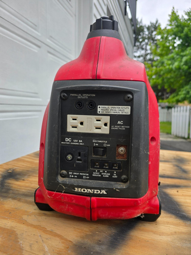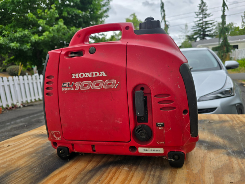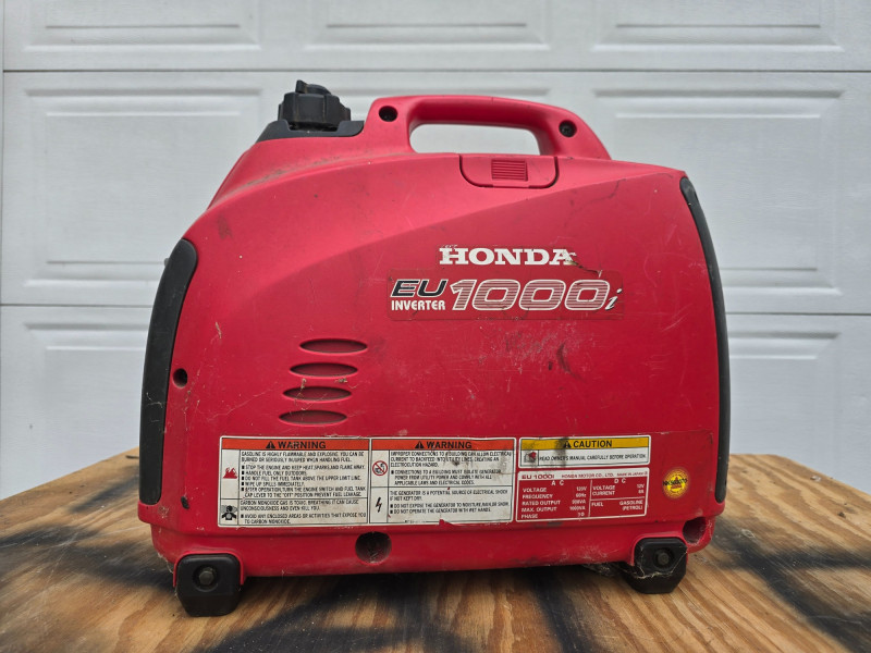 Honda EU1000i Inverter Generator Honda EU1000i gas-powered inverter generator with a maximum output of 1000 VA and a rated output of 900 VA at 120V. This unit has seen light residential use and remains in good working condition. The fuel tank is clean with no signs of gumming or residue.