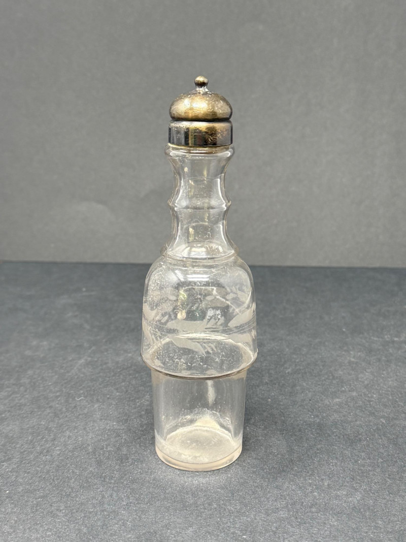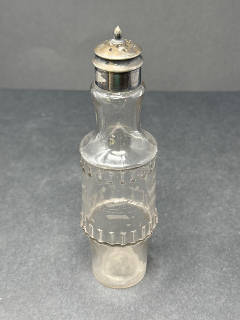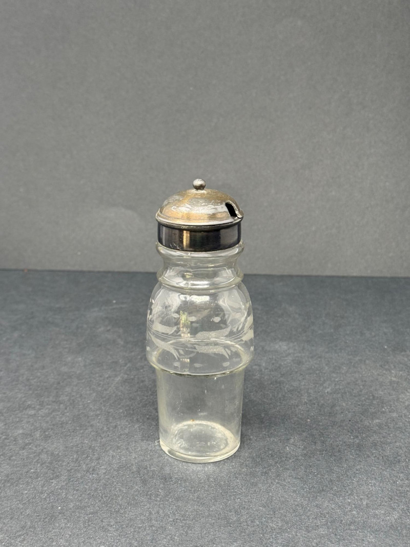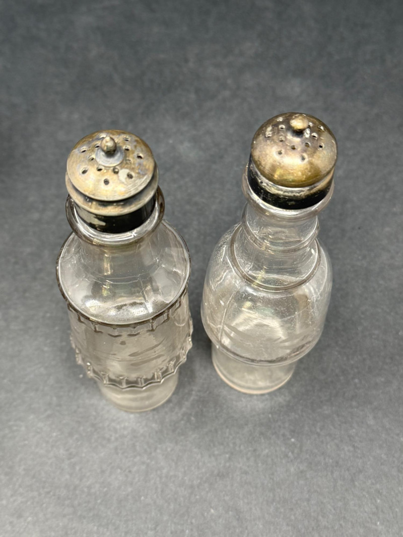 Lot # 158 - 1890s Antique Victorian Pewter Cruet Set – 5 Crystal Etched & Ridged