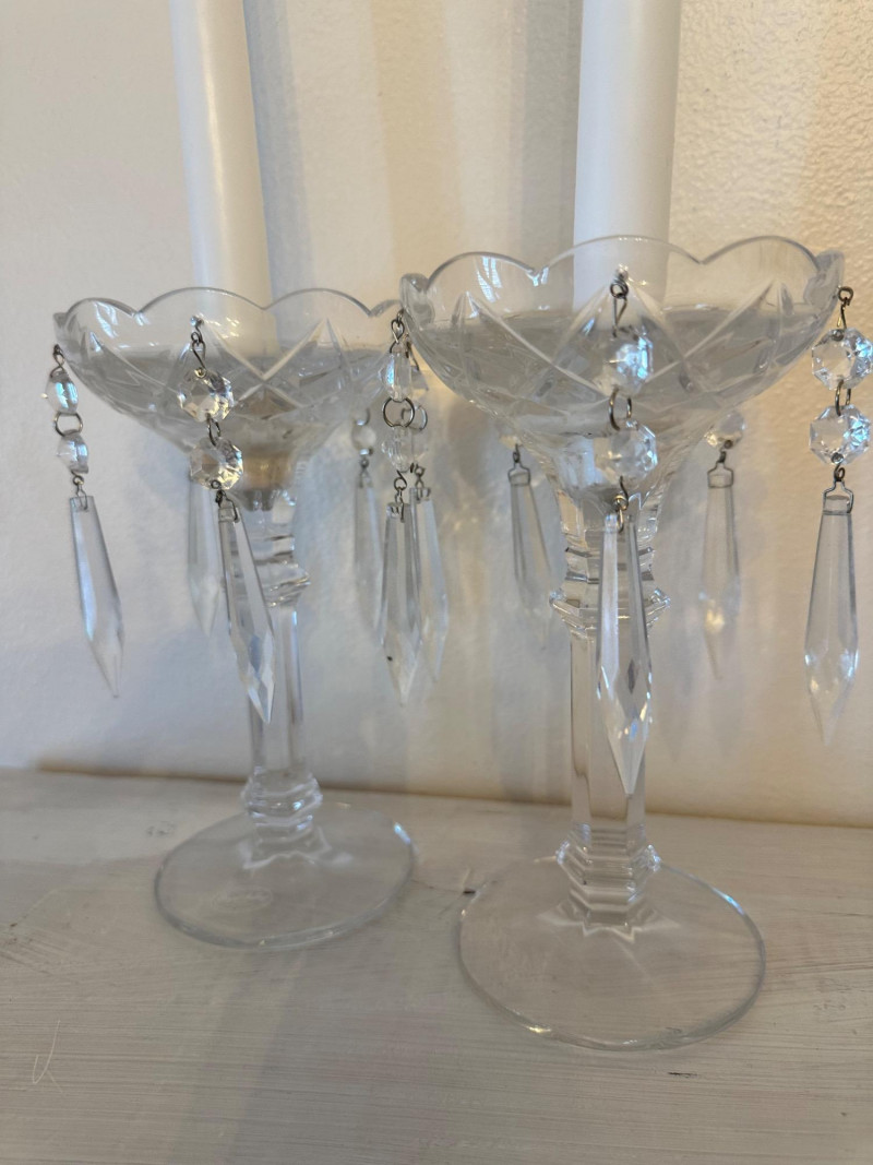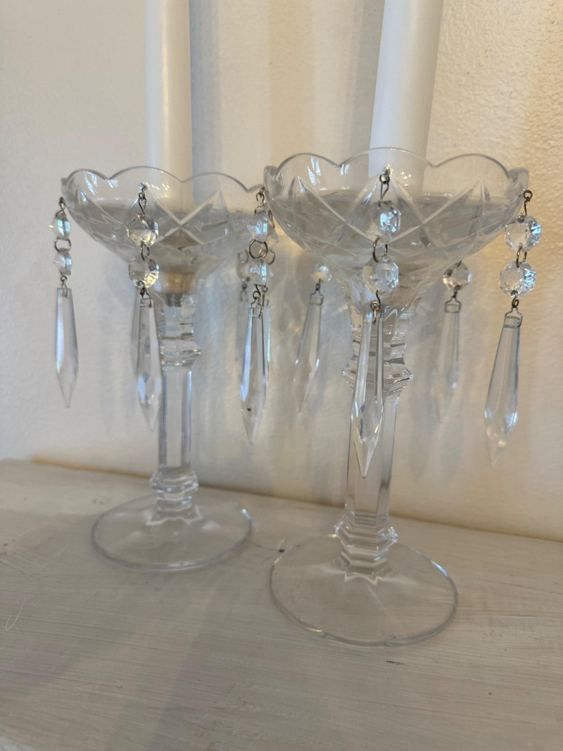 Lot # 182 - Floral Still Life, Glass Candlesticks with Crystal Prisms & Wall Shelf