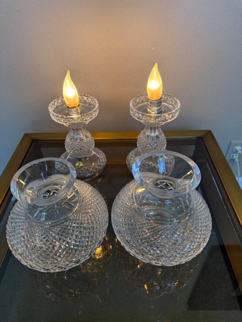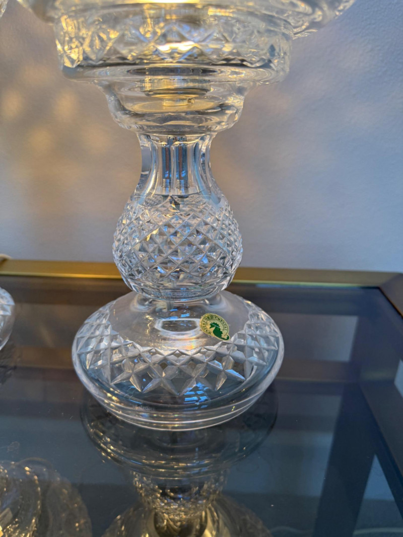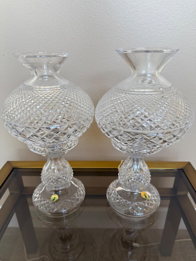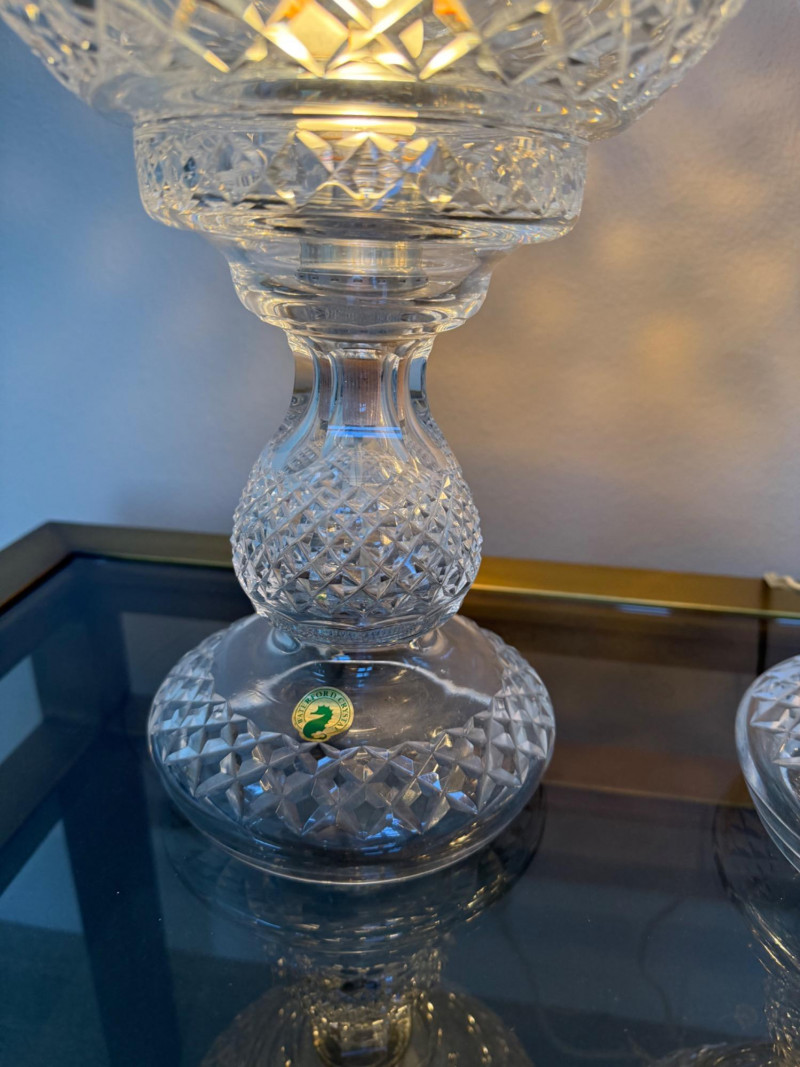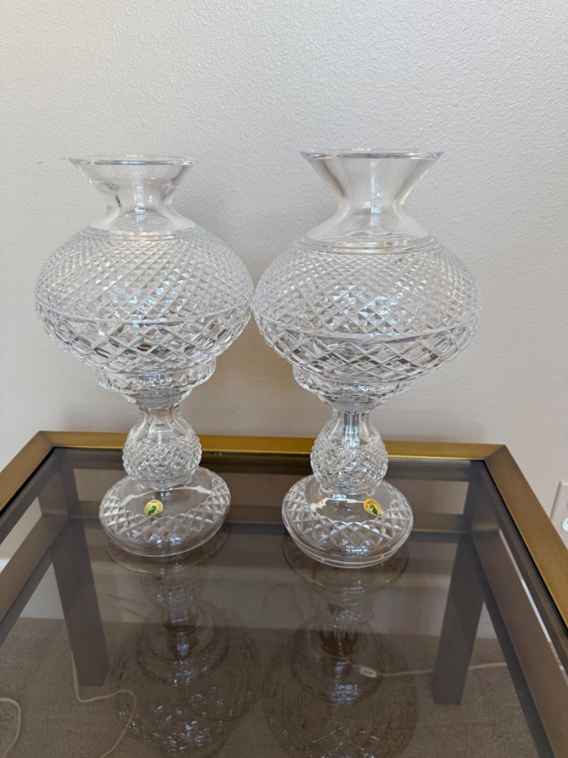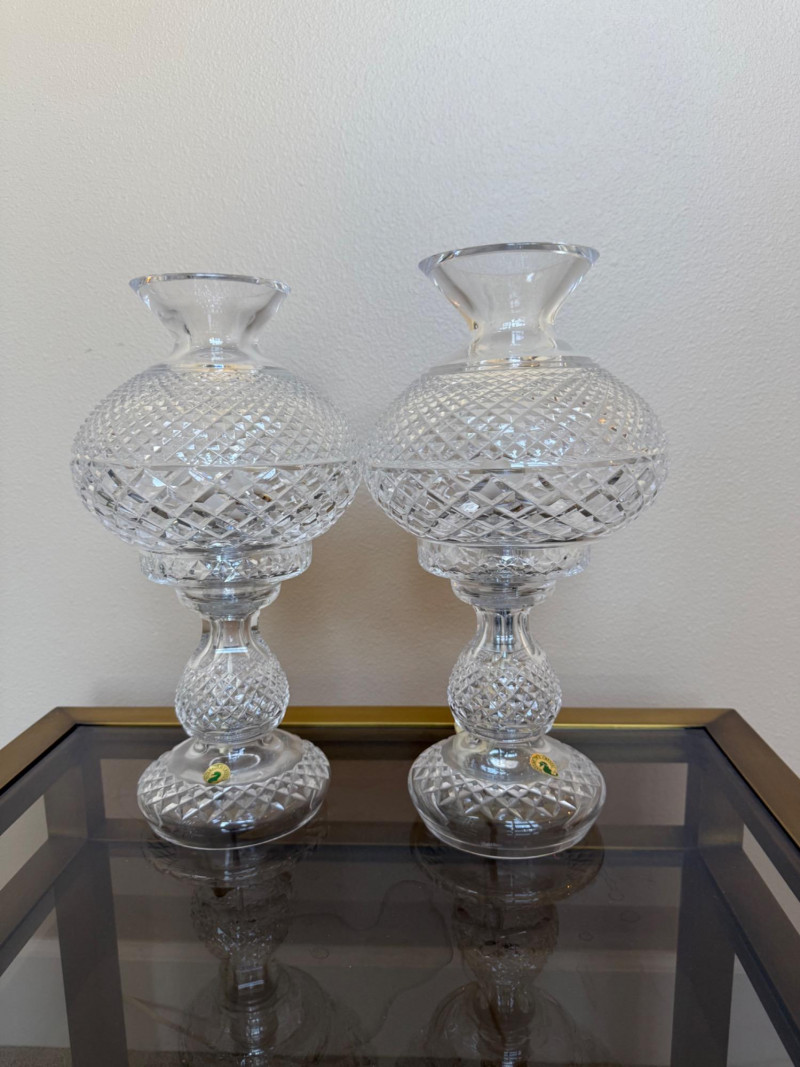 Lot # 121 - Waterford Inishmaan Crystal Hurricane Lamp Pair #1