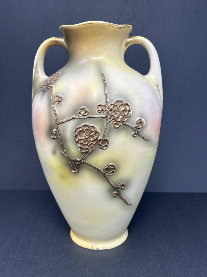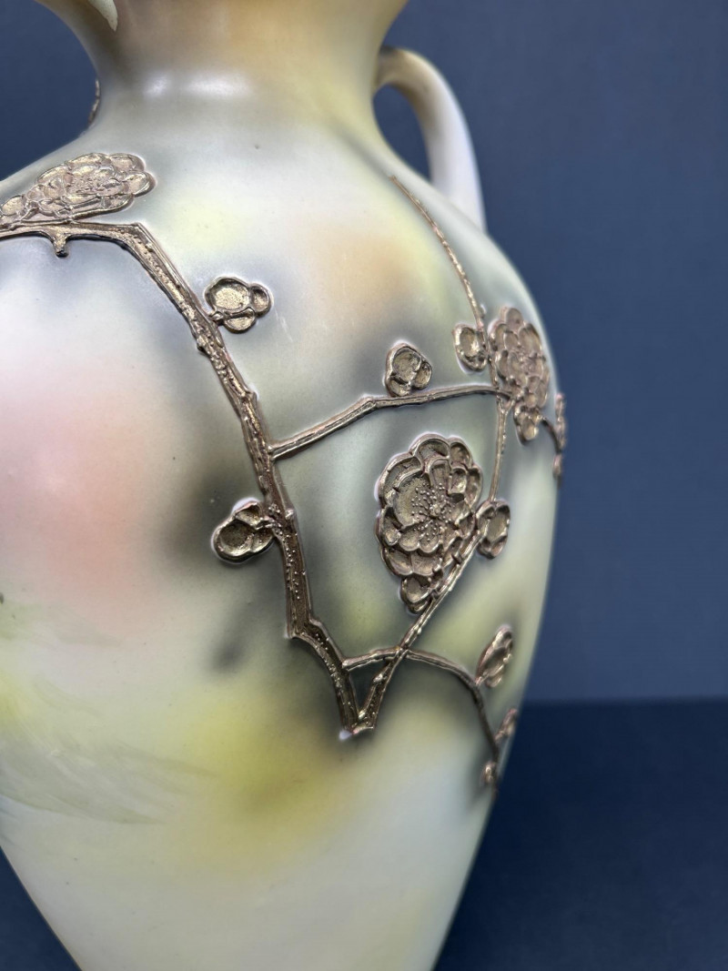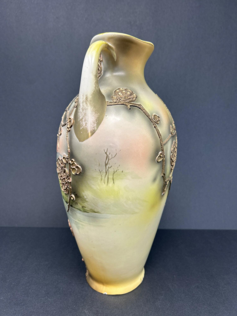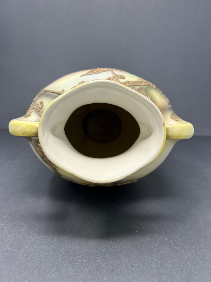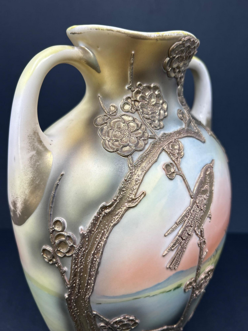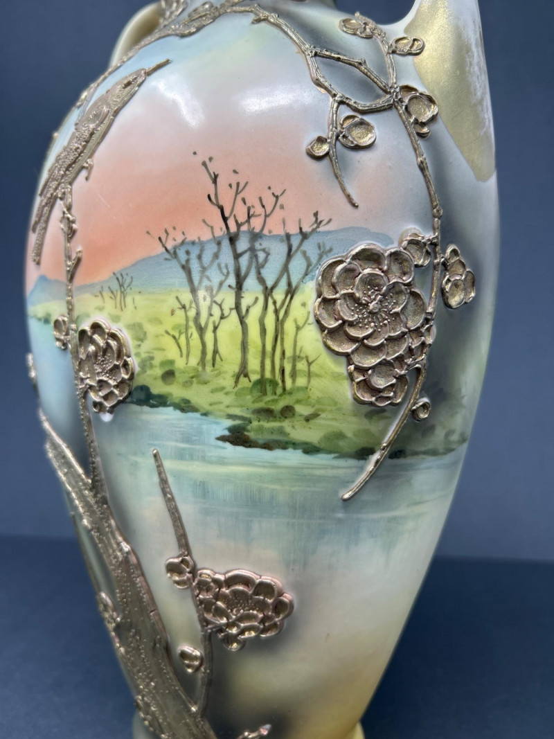 Lot # 27 - Nippon Double-Handled Scenic Vase with Raised Enamels
