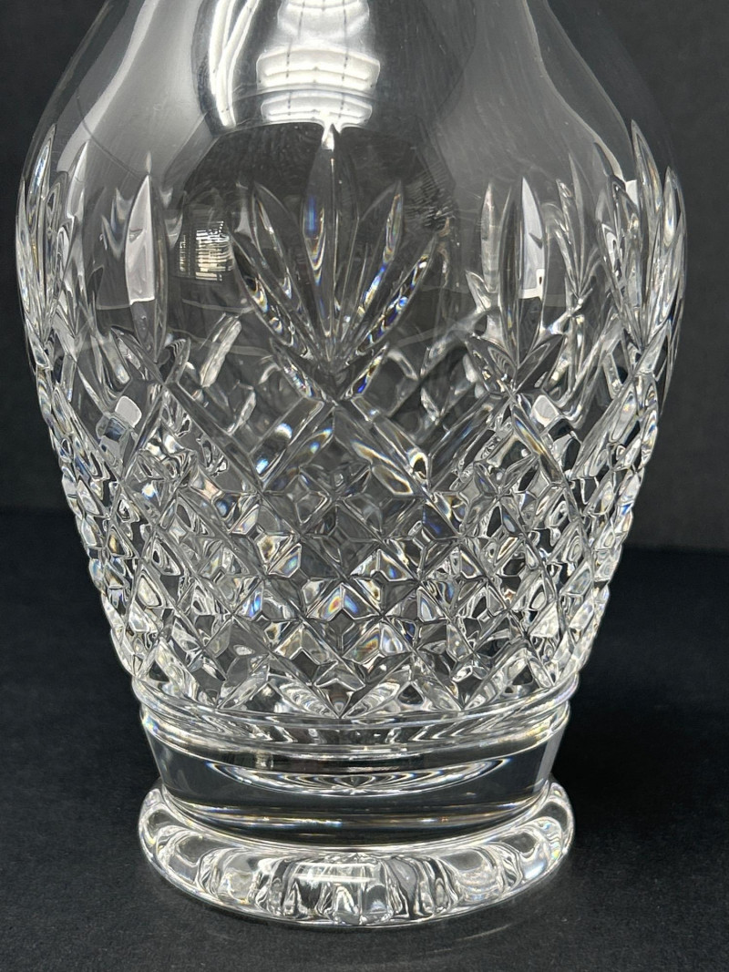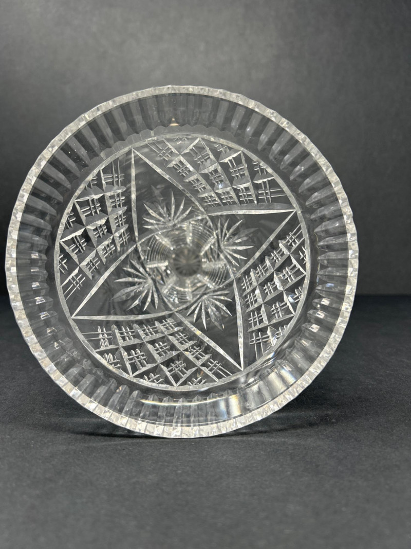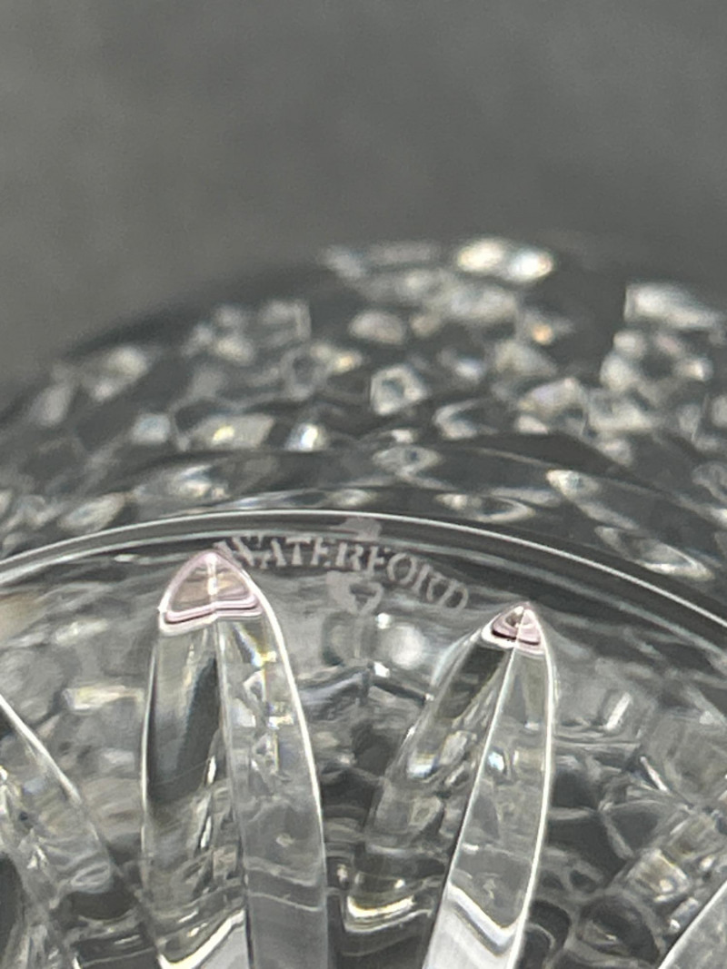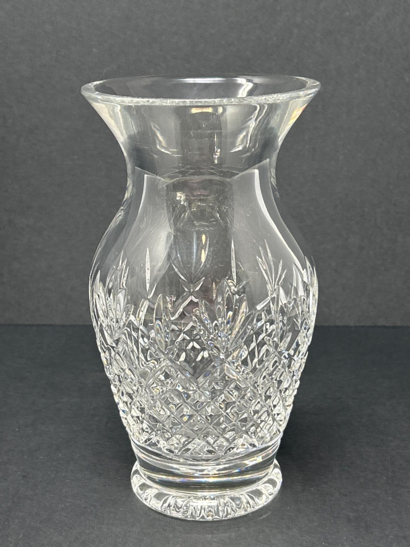 A dazzling pair of Waterford cut crystal vases, each showcasing the brand’s signature brilliance and precision. These pieces exemplify the timeless elegance of Irish crystal, with deeply cut patterns that catch and refract light beautifully. Contents: Flared vase(foreground): Features a wide, trumpet-shaped rim and a sturdy footed base. The body is adorned with Waterford’s classic diamond and starburst cuts, offering exceptional clarity and sparkle Curved vase (background): A more traditional silhouette with a gently rounded body and narrow neck. The surface is richly patterned with cross-hatched diamonds and vertical fluting Design:Intricate hand-cut motifs including diamonds, stars, and vertical panels; both vases exhibit Waterford’s hallmark craftsmanship Materials:Full-lead crystal, known for its weight, clarity, and brilliance Dimensions:Approx. 8" to 10" H (based on visual scale) Collectibility:Waterford crystal remains a benchmark of luxury glassware. These vases are ideal for formal display, floral arrangements, or gifting. Comparable pieces often retail for $100–$300 each depending on pattern and condition Historical Note:Founded in 1783, Waterford Crystal became renowned for its masterful cutting and clarity. These vases reflect the brand’s enduring legacy and appeal to collectors of fine European glass.