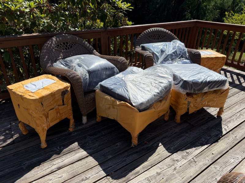 Lot # 22 - Plow and Hearth Wicker Chairs, Ottomans and Tables-NEW