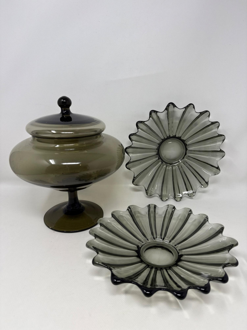 Lot # 38 - Mid Century Smoked Glass Compote and Plates