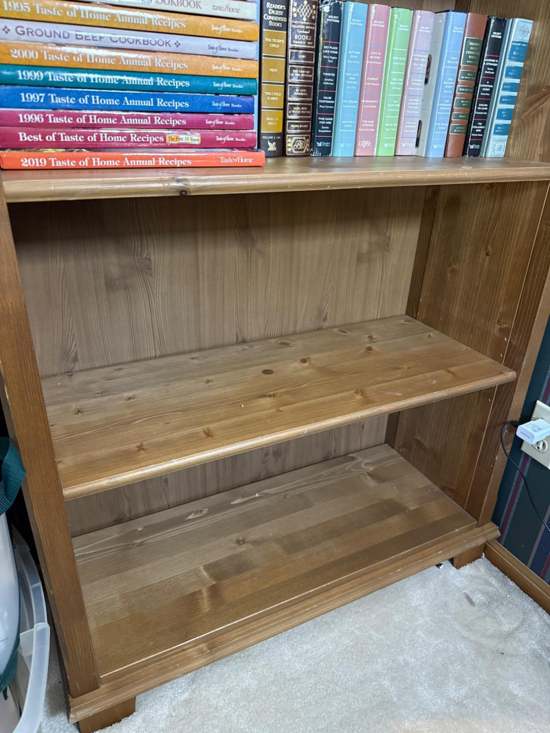 Length: 33.25 inches Width: 12.5 inches Height: 72.5 inches Depth: Not specified (though width may imply shelf depth) This tall and narrow profile makes it ideal for compact spaces while offering vertical storage. Filled with books: The bookcase comes pre-stocked, though the specific titles or genres are not listed. Wood construction: While the exact type of wood isn't specified, the listing confirms it's a wood bookcase, likely finished to match contemporary interiors. Appears to be solid wood and not laminate coatedDimensions