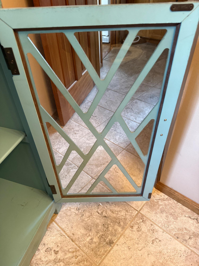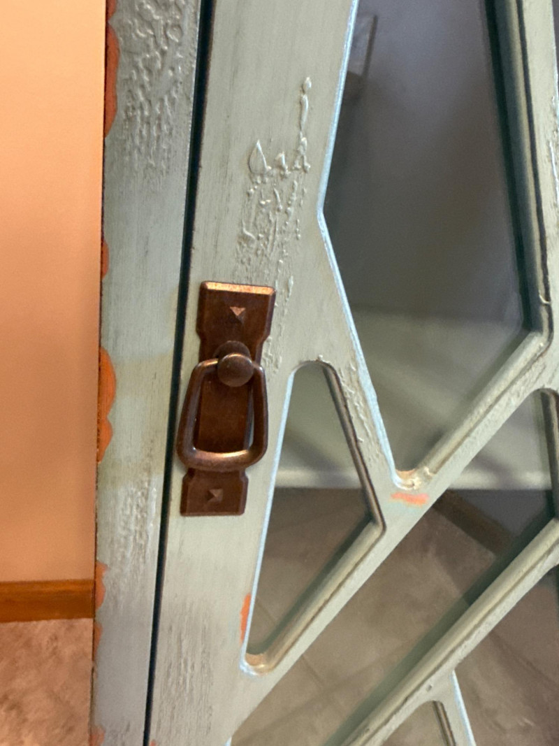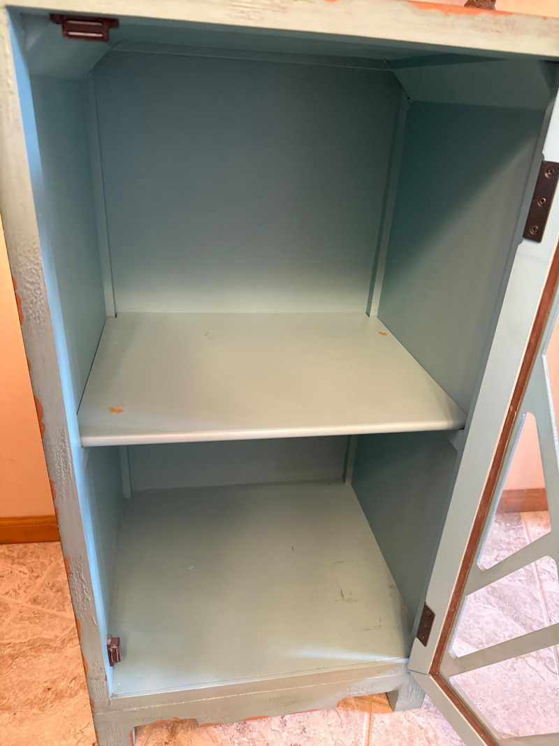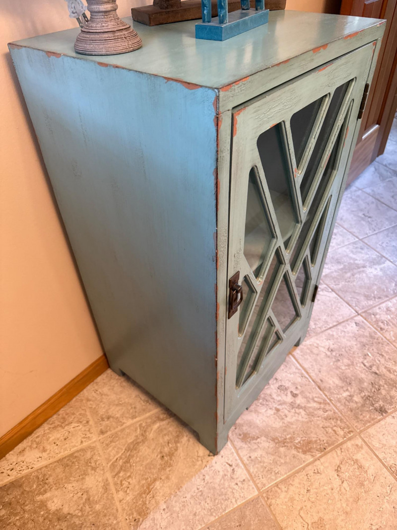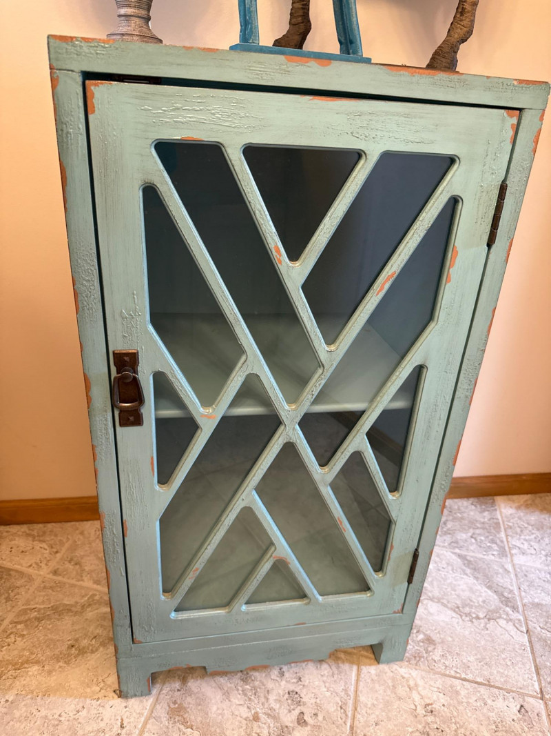 Lot # 69 - Teal Cabinet With Shabby Chic Flair and Decor Items