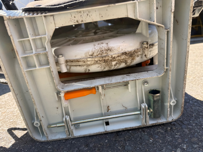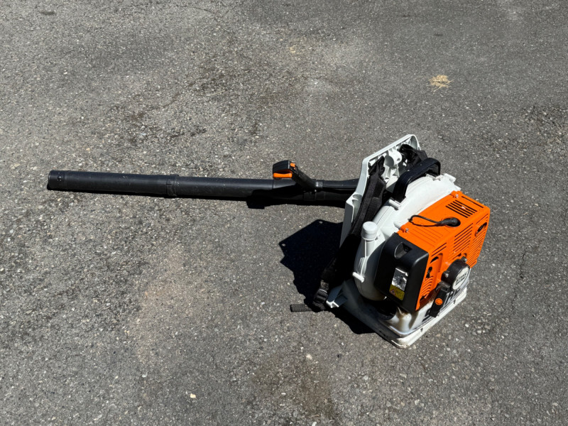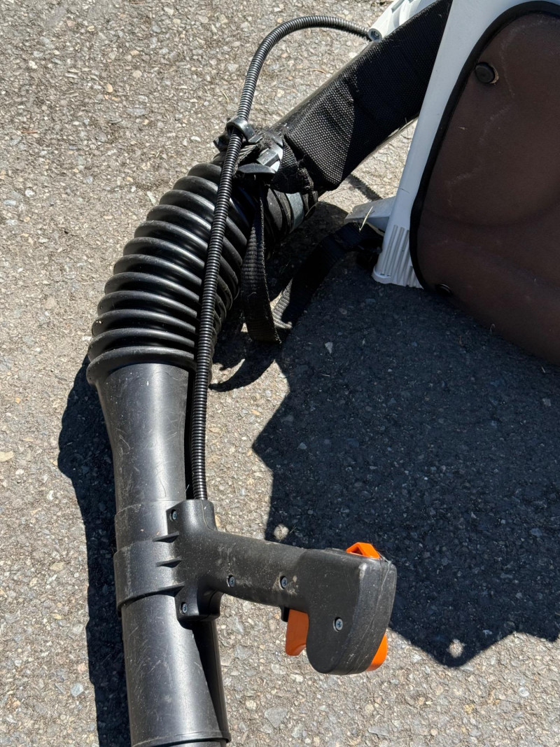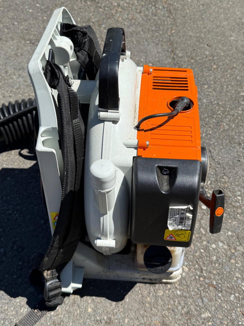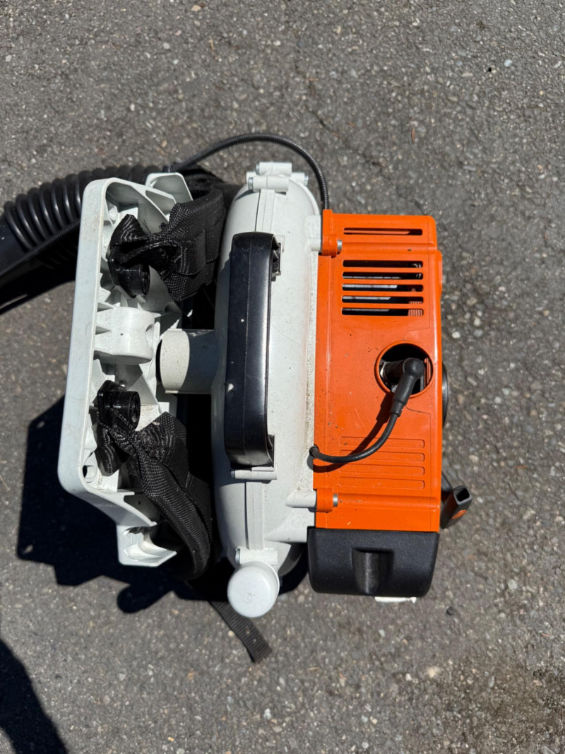 Make & Model: Manufacturer: Stihl Model: BR 380 Features & Components: Backpack-style design for ergonomic support and reduced operator fatigue High-powered gas engine for efficient leaf and debris clearing Durable plastic housing with integrated shoulder straps and padded backrest Throttle control handle with variable speed settings Air intake system designed for optimal airflow and cooling Fuel tank with secure cap and visible fill line Flexible blower tube with adjustable nozzle for directional control Condition: Appears to be in good used condition with typical signs of wear consistent with outdoor use No visible cracks or damage to housing or straps Functionality not fully tested due to-Lack of fuel Minor scuffs and surface residue from prior use All components present and securely attached