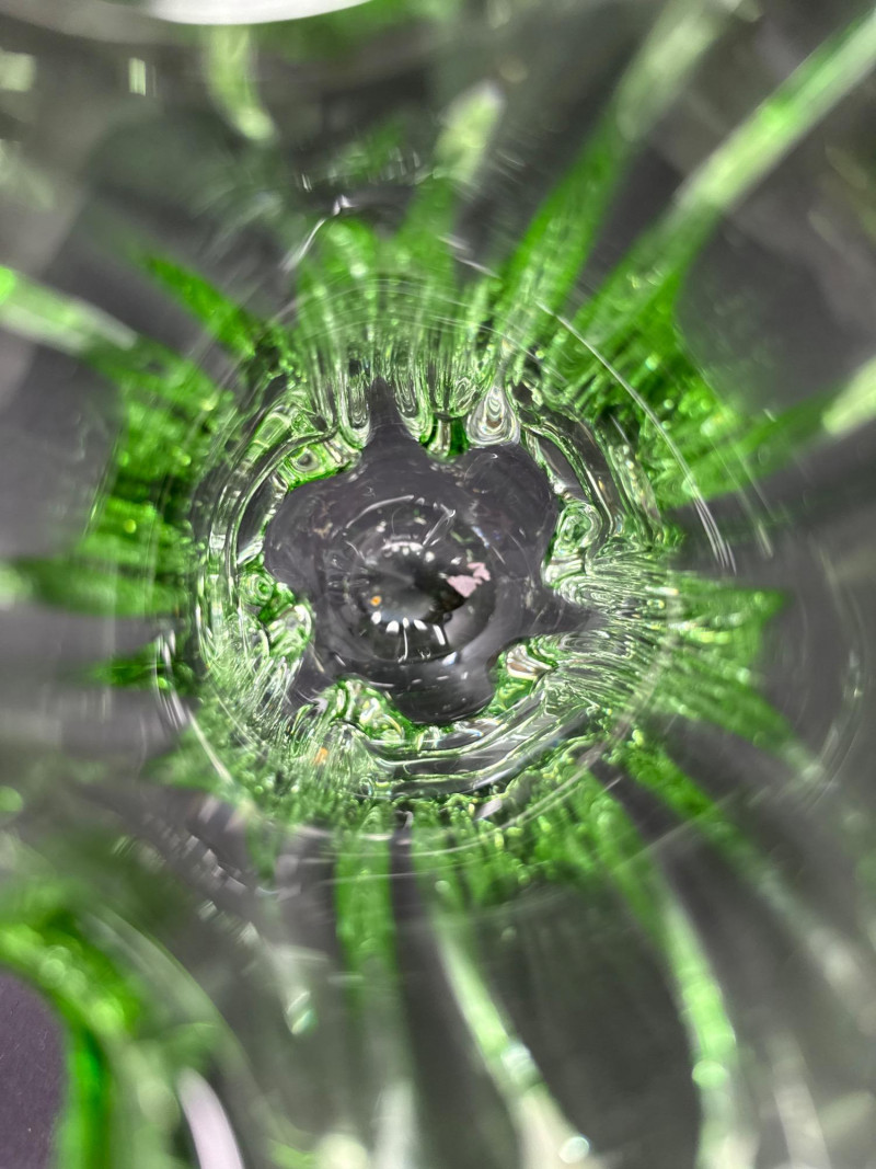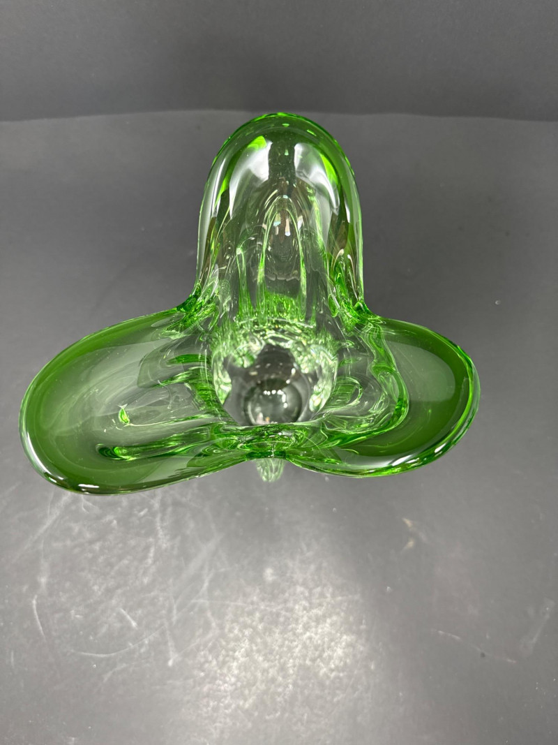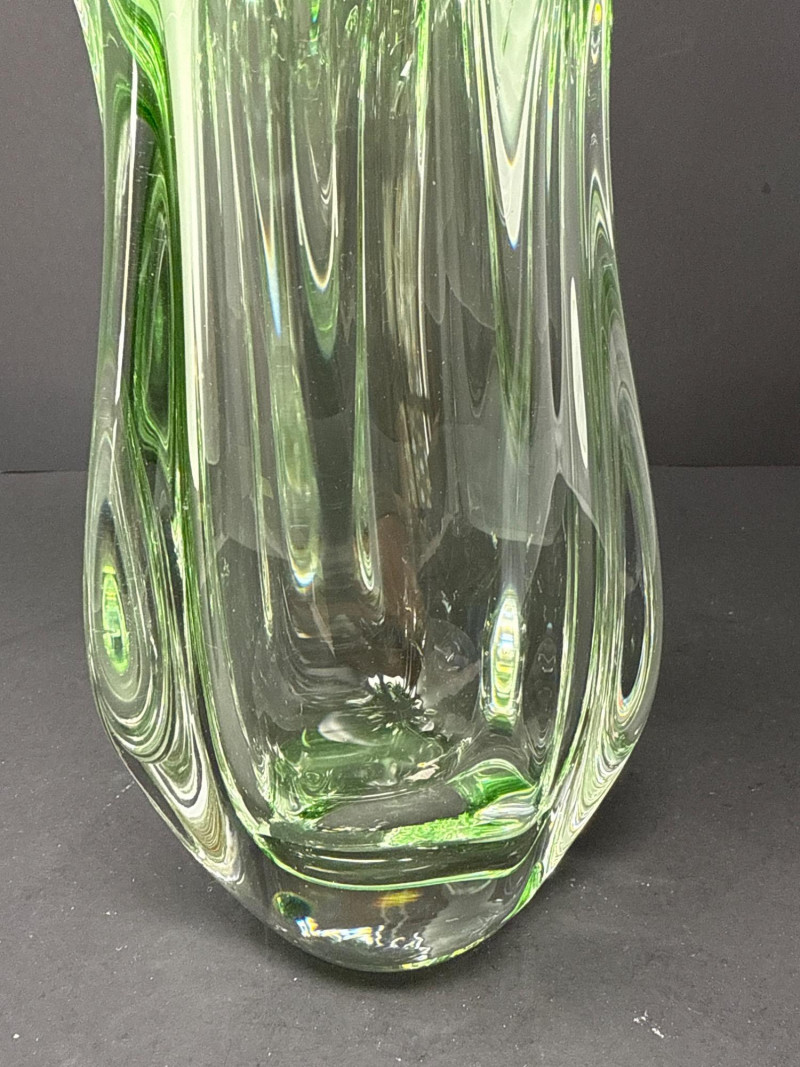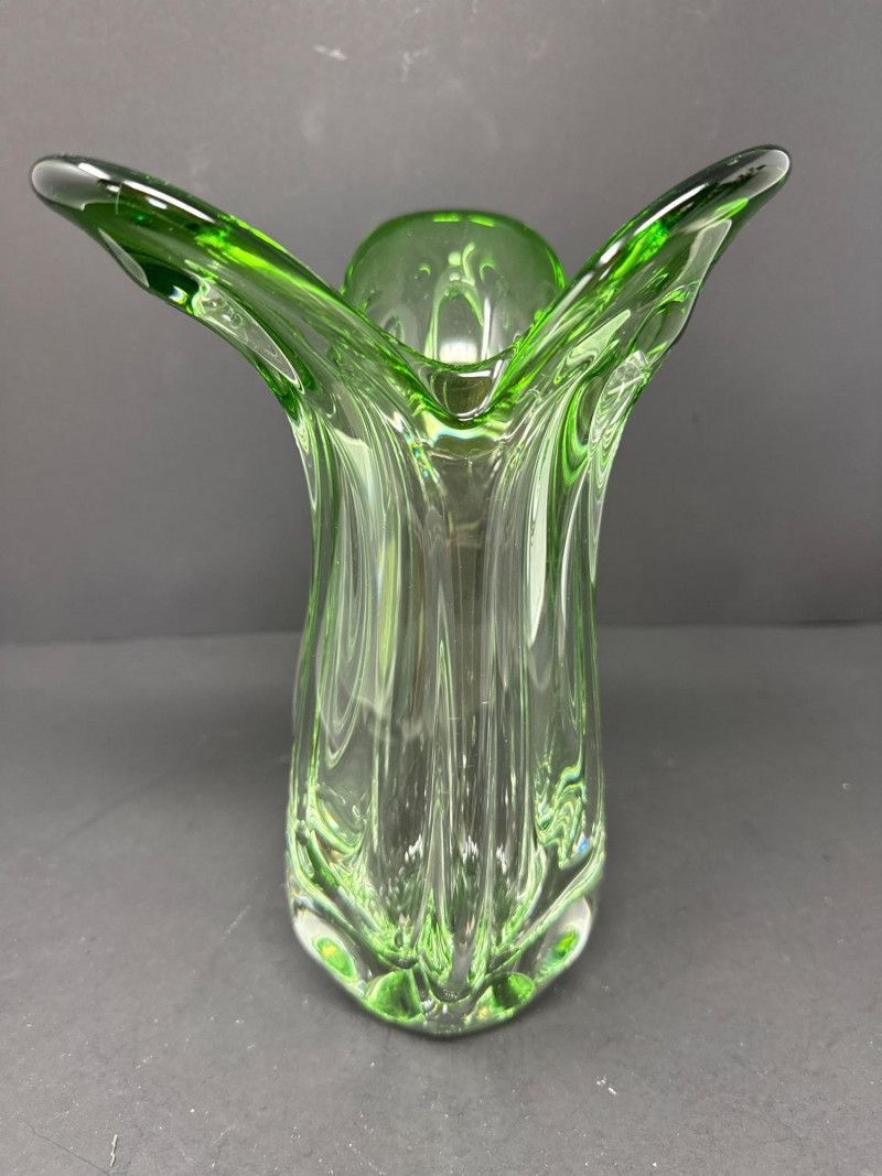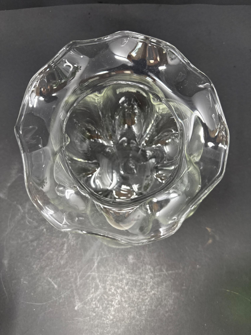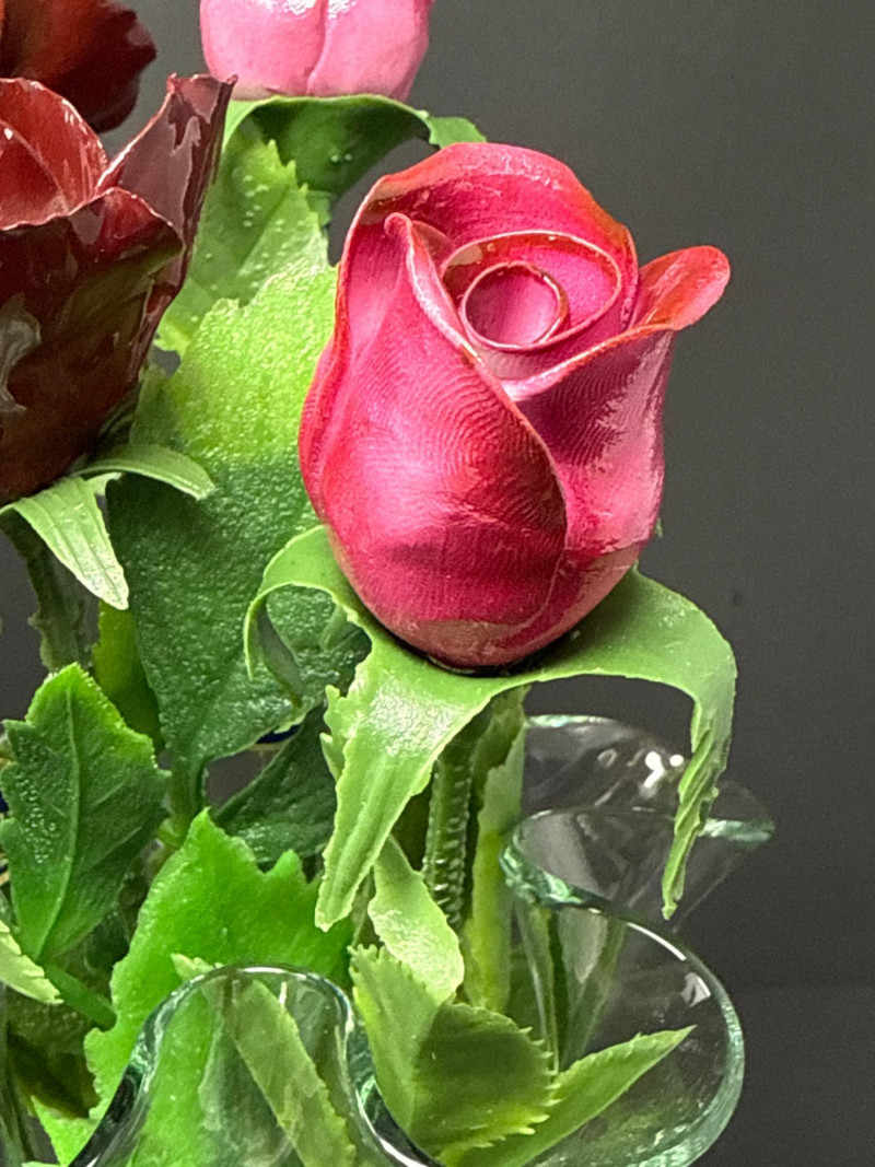 A charming mixed lot featuring decorative vases and ceramic floral accents, ideal for display or gifting. Contents & Brands: Heavy green glass vase – substantial and classic, with a smooth finish Fluted pumpkin-style vase – ribbed design, warm-toned glass Aynsley long-stem ceramic roses – delicate ceramic blooms with plastic stems. Fine ceramic, branded, known for quality craftsmanship Ofnah modern crystal vase – Refined with clean and simple design Two matching fluted flower vases – elegant shape with green-tint to glass Dimensions: Green glass vase: 9.75″ H × 6.5″ W Pumpkin-style vase: 8″ H × 6″ W Ofnah vase: 6″ H × 4.5″ W Other vases: dimensions not specified, but appear similarly sized Condition: