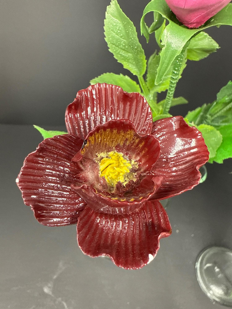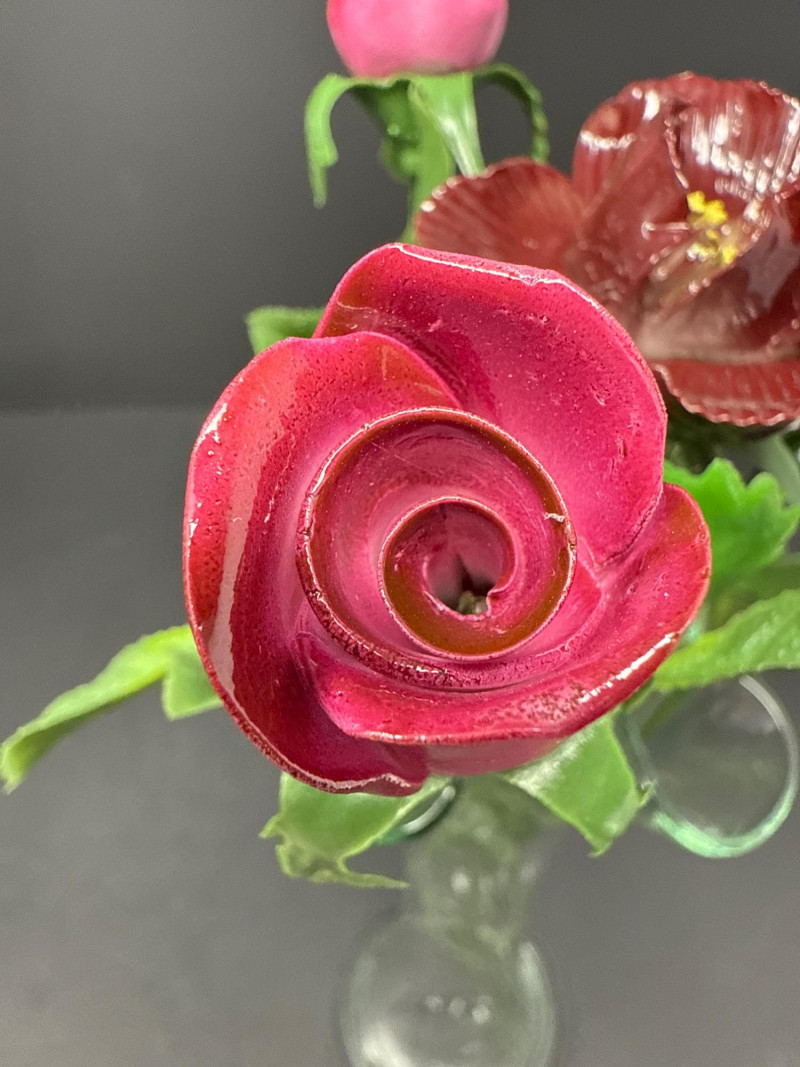 All items appear to be in good vintage condition with no noted chips or cracks. Ceramic flowers show typical wear consistent with age and handling.