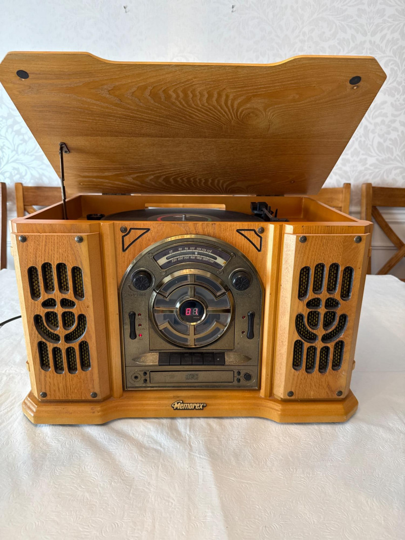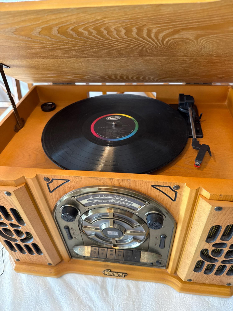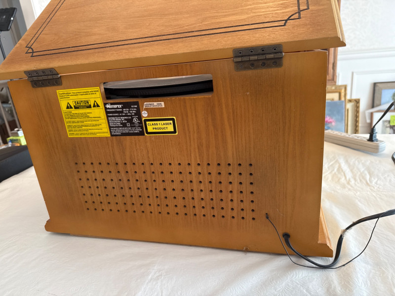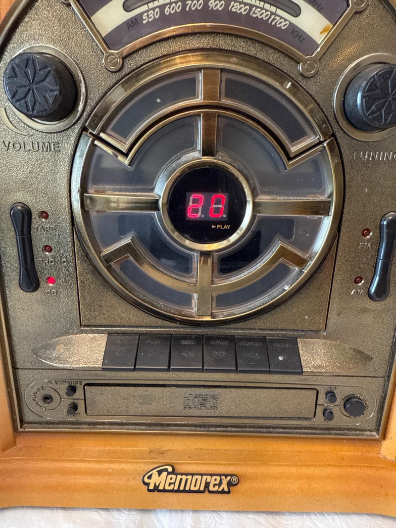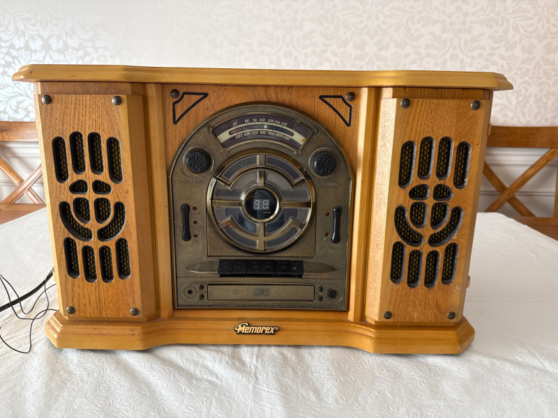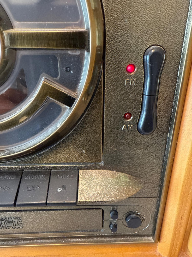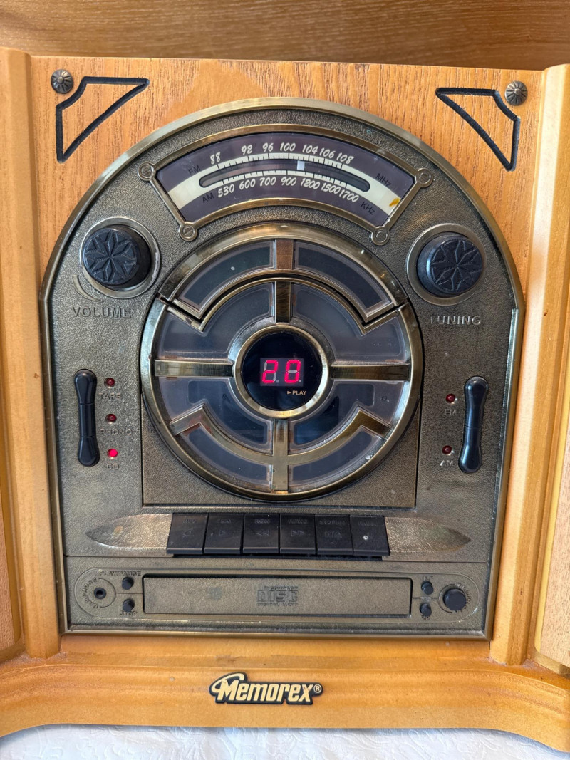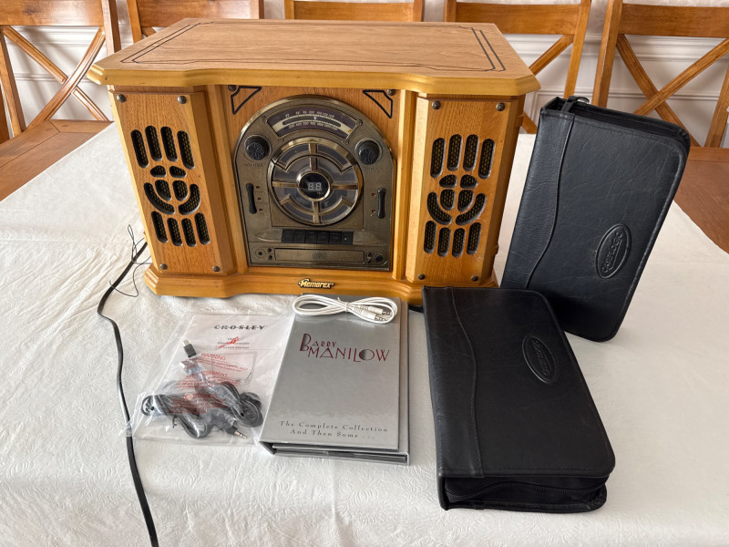 A charming blend of retro aesthetics and modern functionality, this Crosley stereo system evokes the golden age of home entertainment. Designed with a nostalgic flair, it features a wood-look cabinet and analog-style controls that recall mid-century audio consoles. Ideal for collectors, vintage enthusiasts, or anyone seeking a stylish accent piece with practical use. Brand Crosley – Renowned for its vintage-inspired electronics that combine classic design with contemporary technology. Features Multi-function stereo system with turntable, CD player, AM/FM radio, and auxiliary input Built-in speakers for full-range sound Classic rotary knobs and push-button controls Compact footprint suitable for tabletop or shelf display Contents Crosley stereo unit Assorted music CDs- Country, Pop, Folk, Western, Holiday, classical, classic oldies and more Condition Appears to be in good pre-owned condition with light surface wear consistent with age and use Was tested and sounded great Dimensions Length: 21.5 inches Width: 14 inches Height: 13 inches