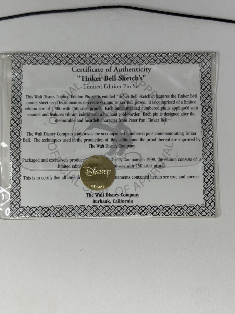 Framed Tinker Bell Model Sheet Print – Peter Pan 1953 Animation Art A charming piece of Disney history! This framed print showcases a Tinker Bell model sheet from Walt Disney’s Peter Pan (1953). The artwork features a variety of expressive poses and character studies in both sketch and color renderings, capturing the iconic fairy’s movement and personality.