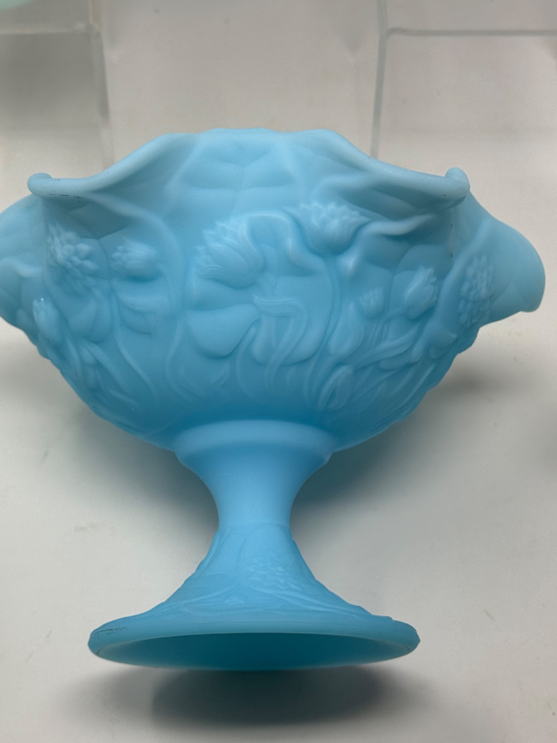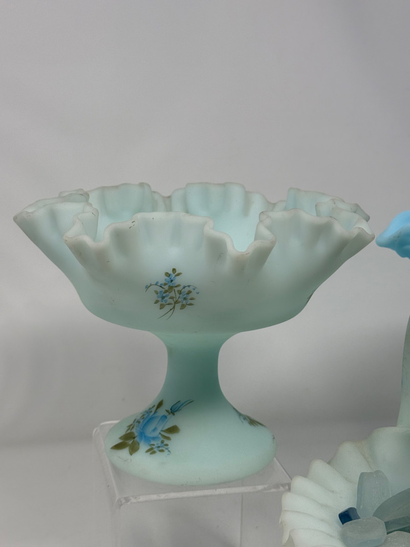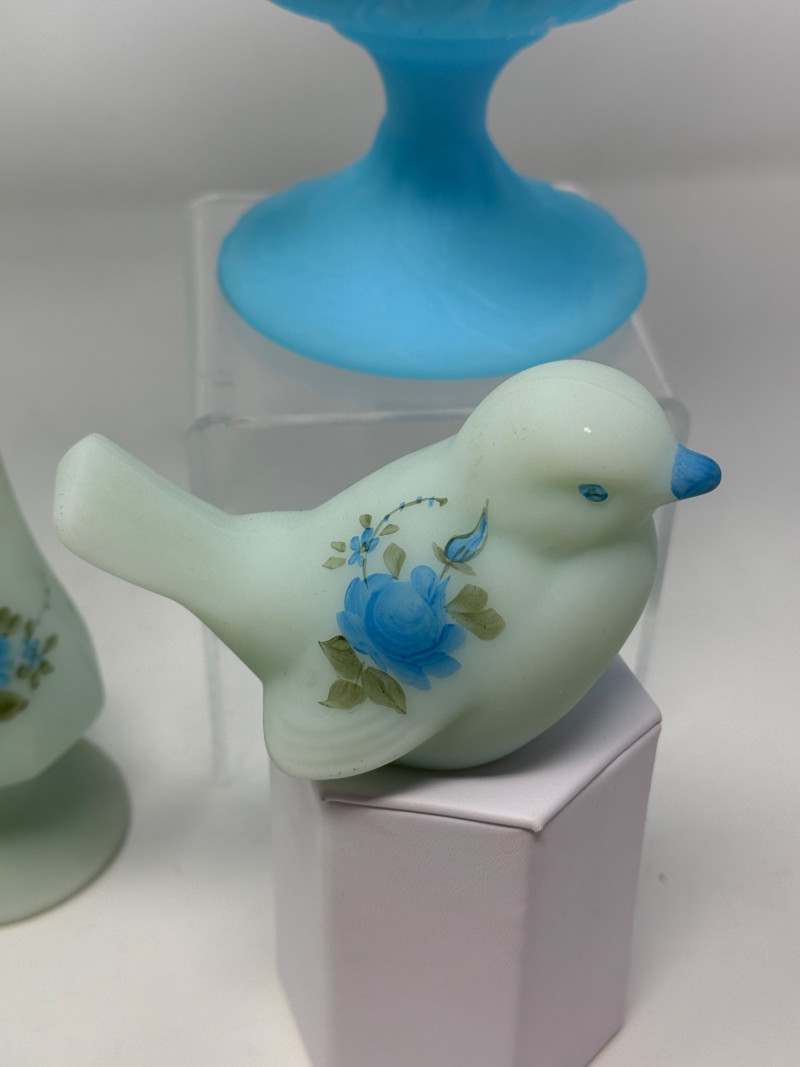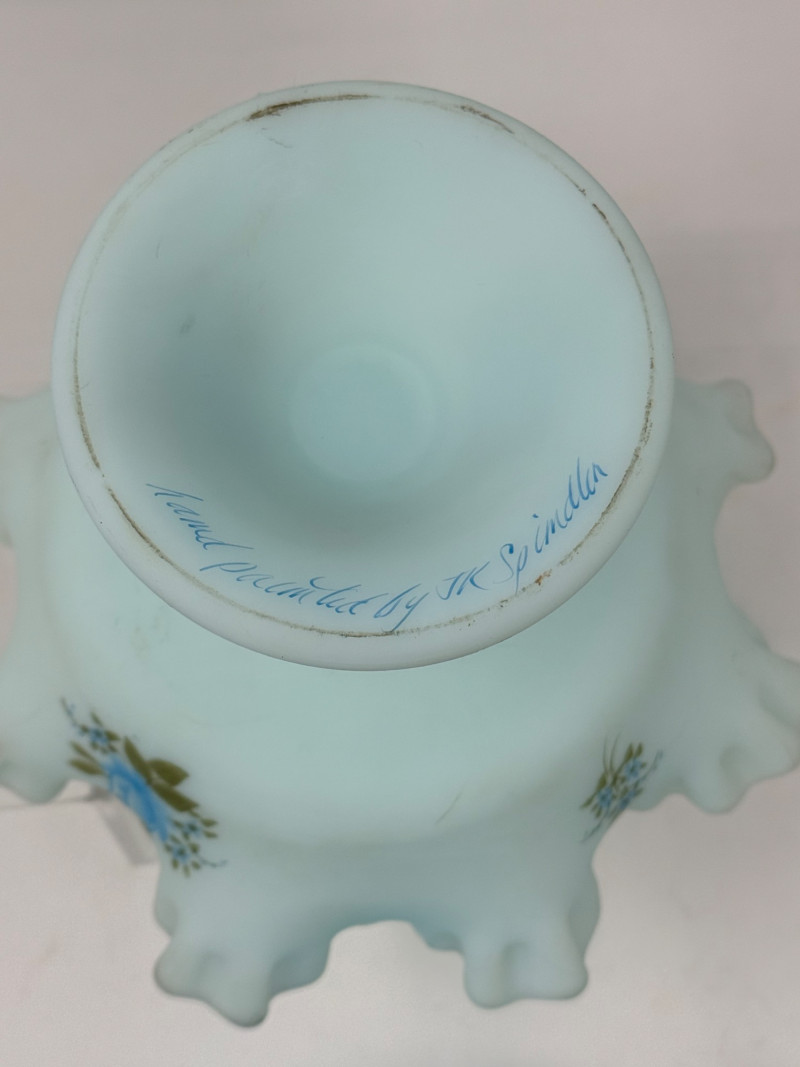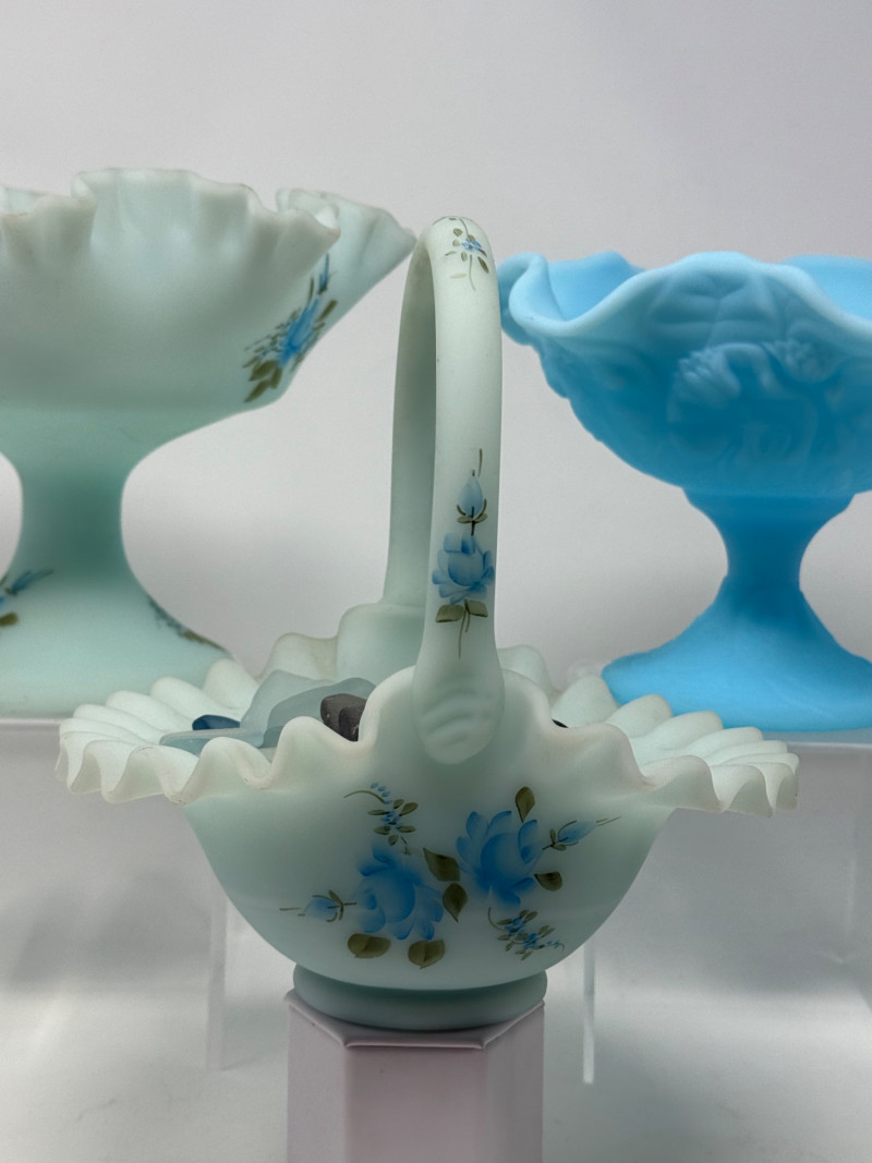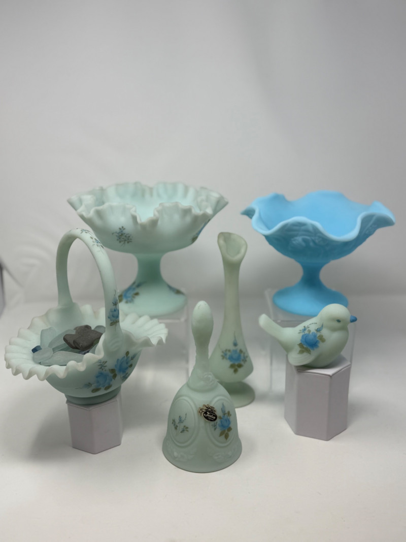 Lot # 122 - 6 Vintage Fenton Glass Blue Roses on Blue Satin Hand Painted
