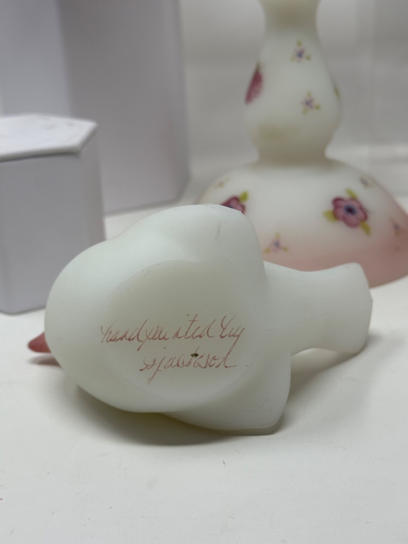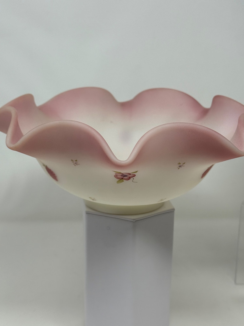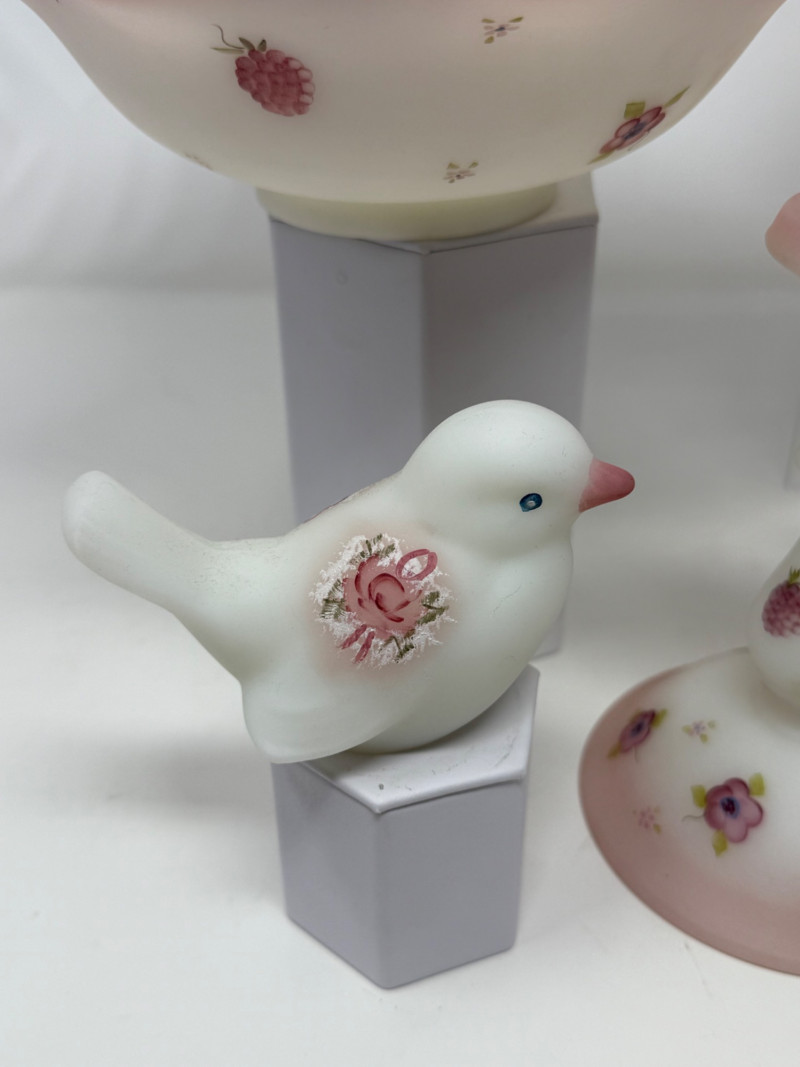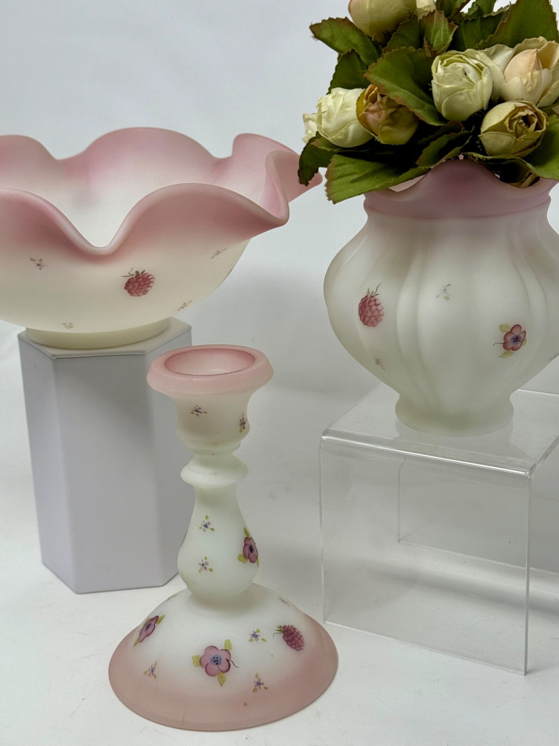 Lot # 14 - Fenton Berries And Blossoms Burmese Satin Hand Painted Glass