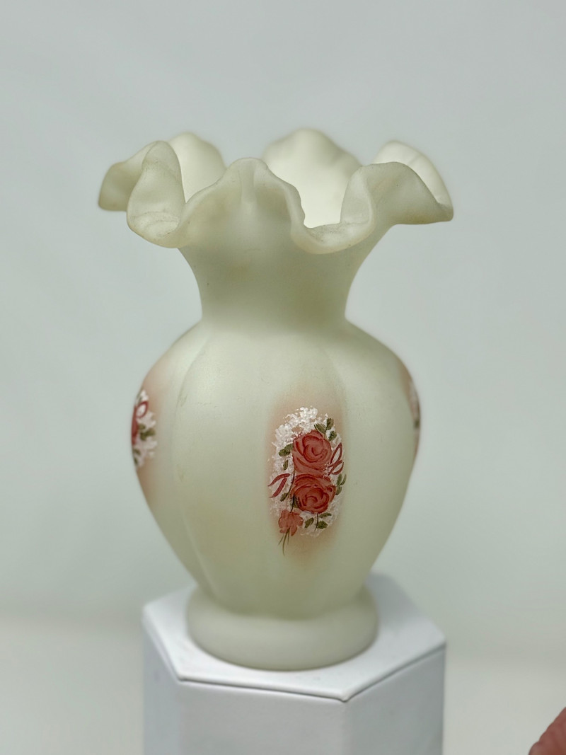 Lot # 16 - Vintage Fenton Art Glass Satin Berry Hand Painted and Signed