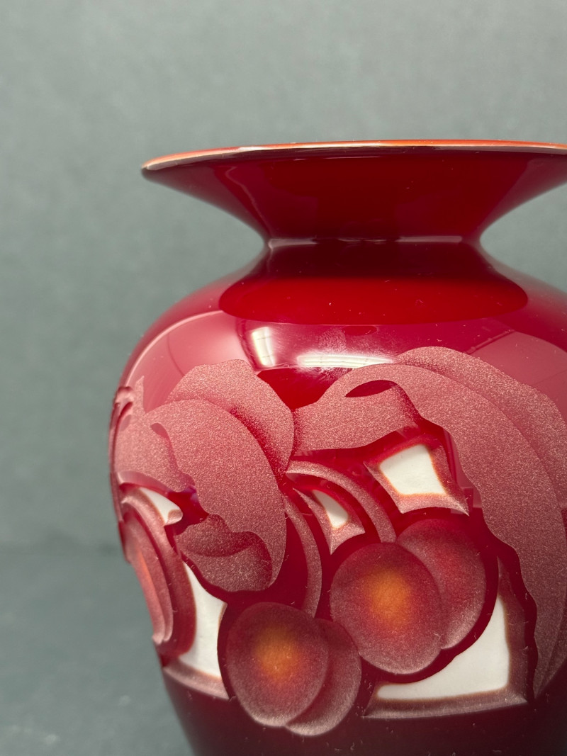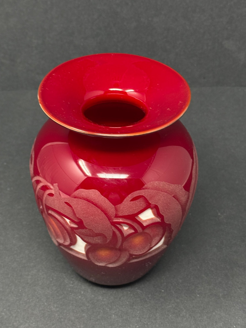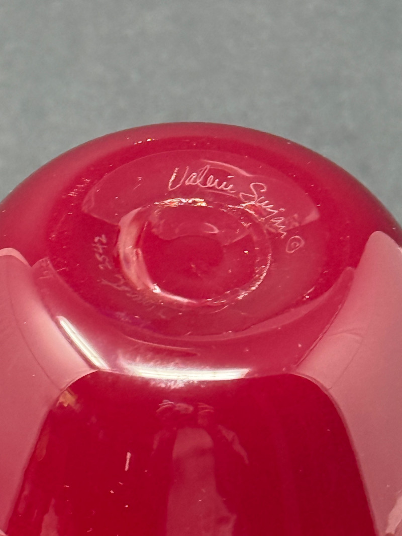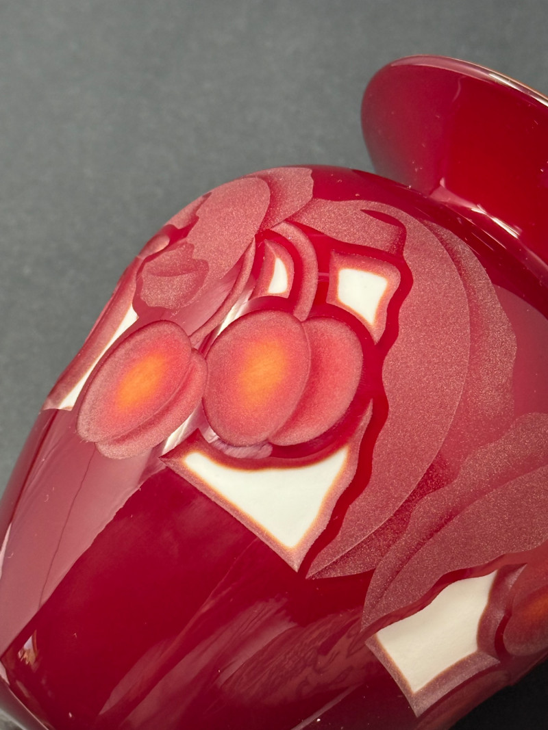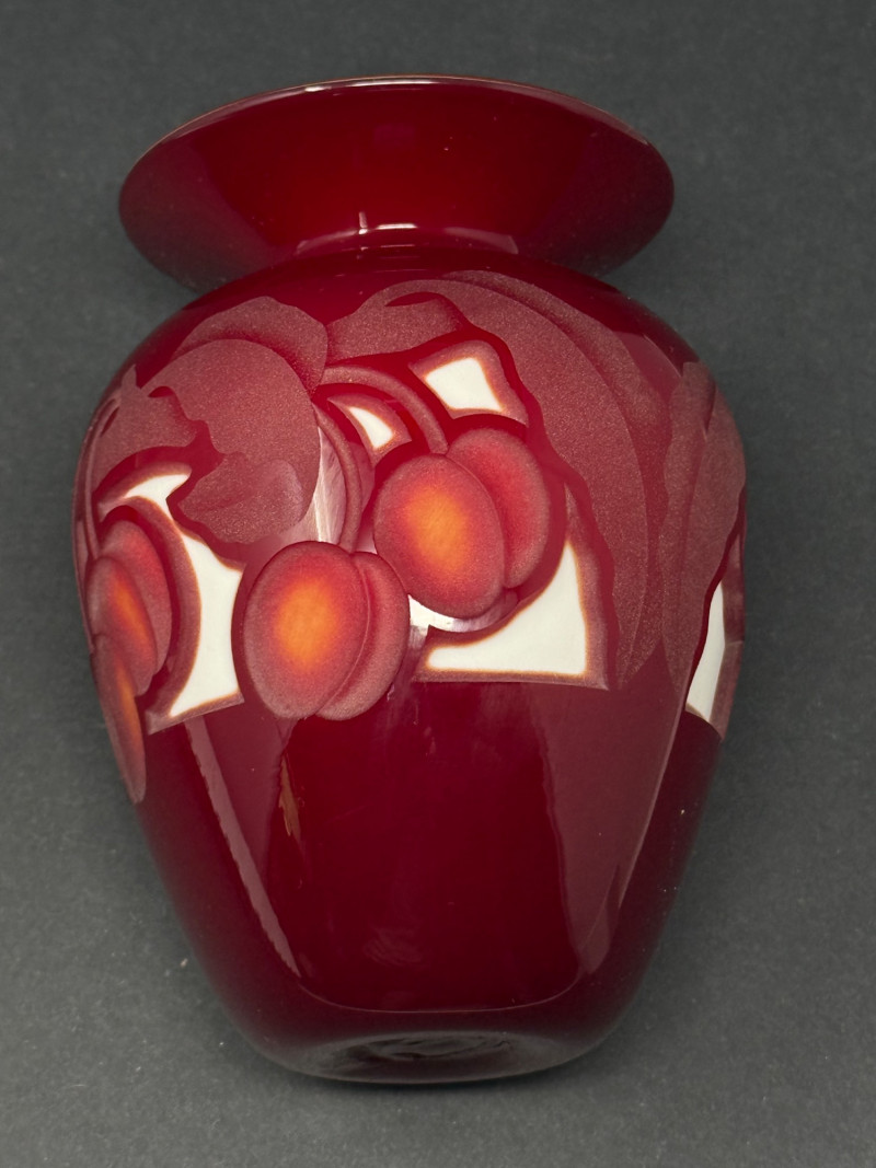 Lot # 5 - Valerie Surjan Signed Cameo Art Glass Vase –1993 Ruby Red with Peaches