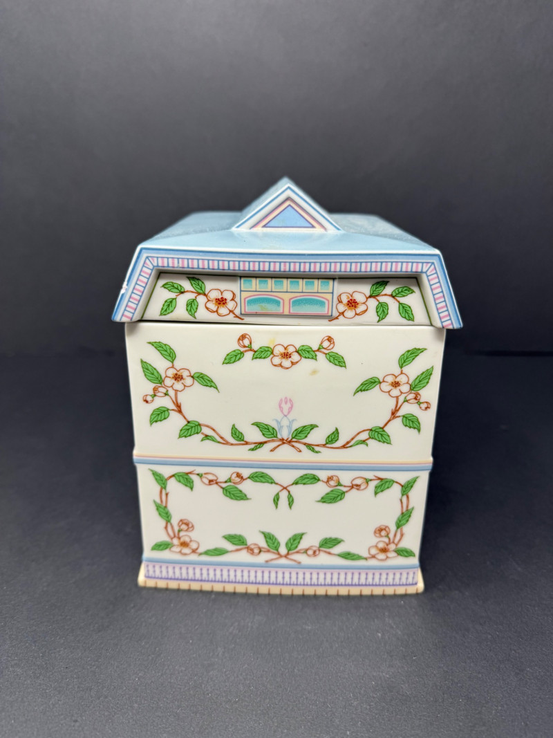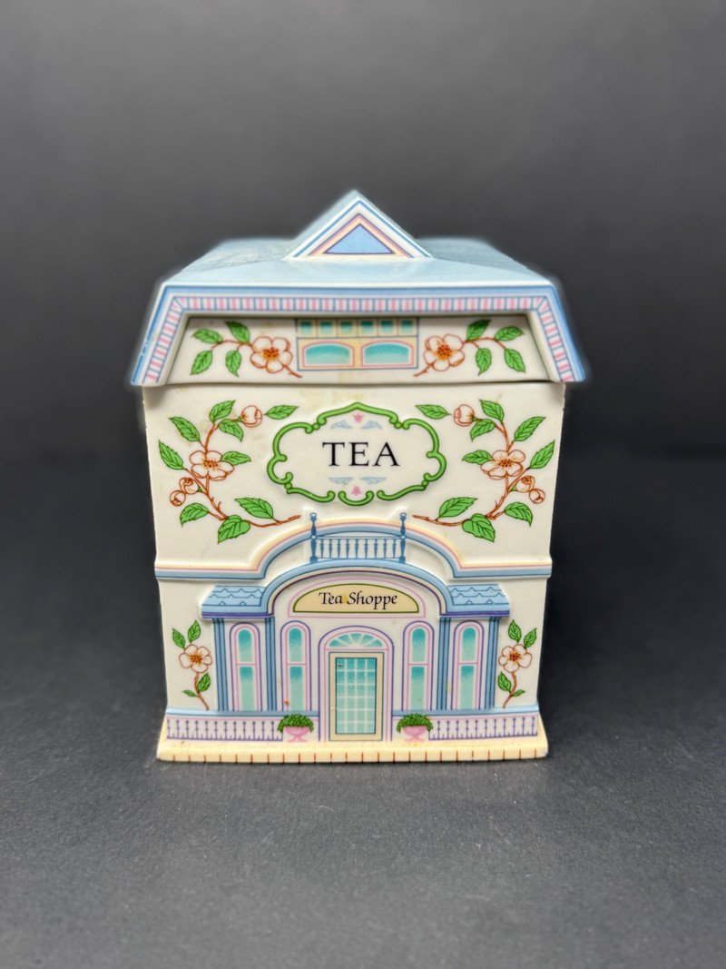 Lenox Village “Tea Shoppe” Ceramic Canister – 1990s House-Shaped Tea Container – Rare & Collectible This Lenox “Tea Shoppe” ceramic canister from the beloved Lenox Village Collection (1990s) is a charming and highly sought-after piece. Designed in the shape of a pastel storefront with floral details, a "Tea" banner, and a removable roof lid, it's both functional and decorative. These vintage Lenox Village buildings have become increasingly rare, especially in such well-preserved condition. Brand: Lenox Collection: Lenox Village Year: Circa 1990s Design: “Tea Shoppe” house with floral accents and rooftop lid Material: Glazed ceramic Size: Approx. 6.25" tall x 4.5" wide x 3.75" deep Condition: Excellent vintage condition – no chips, cracks, or staining Why it's special: A perfect addition to any tea lover’s corner, vintage kitchen, or Lenox collection.